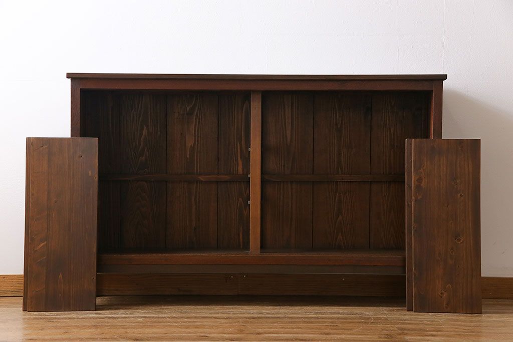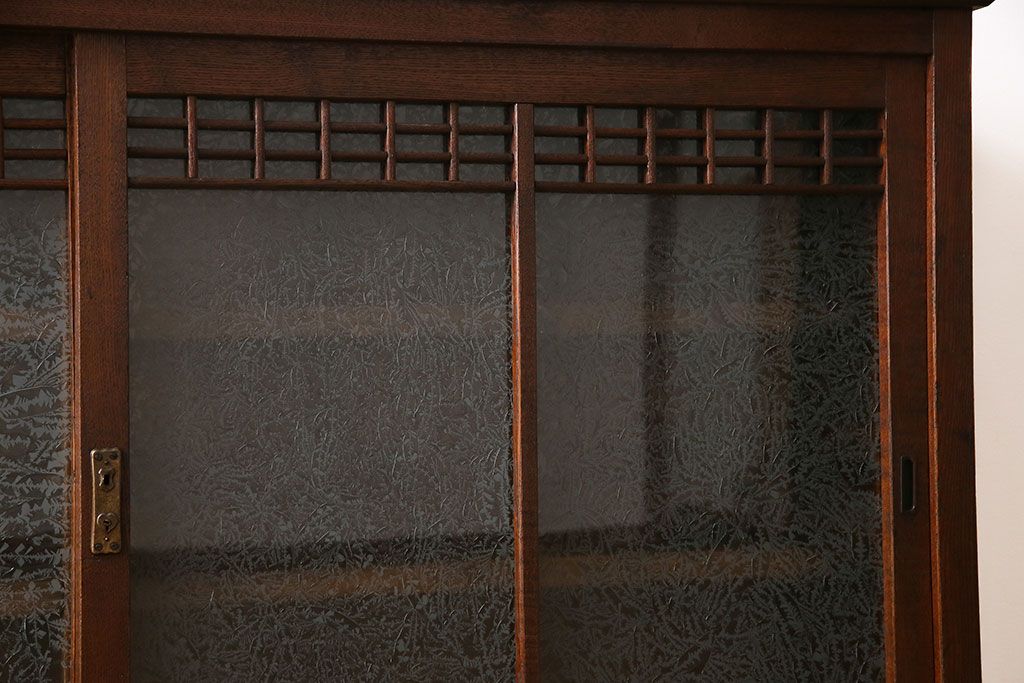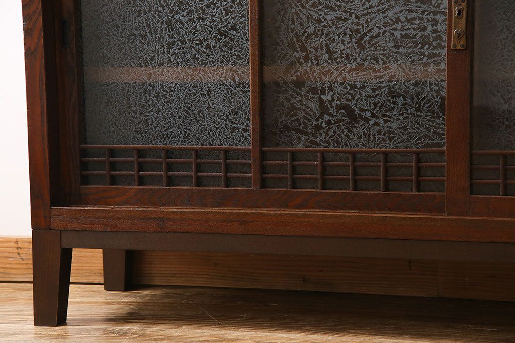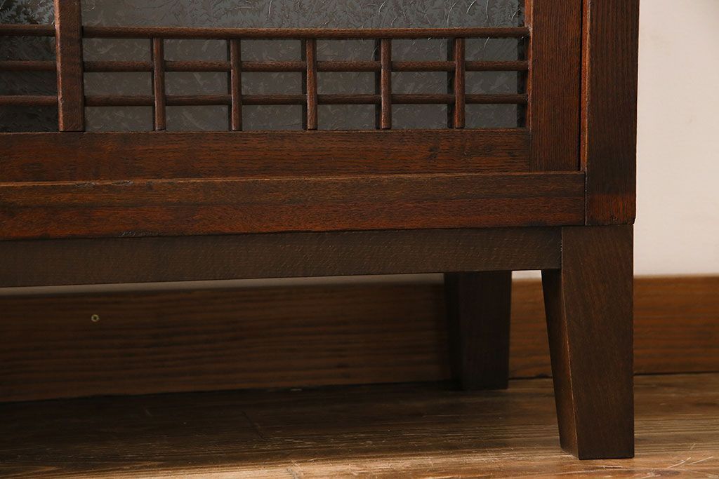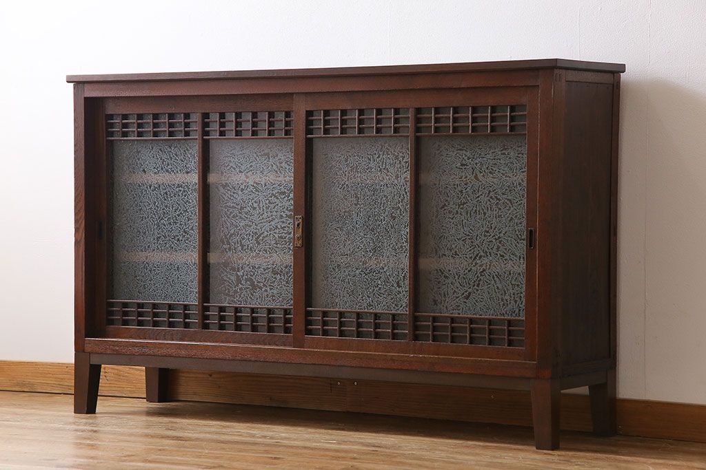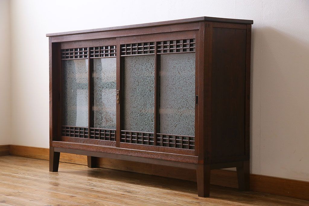 アンティーク家具 大正ロマン 引き戸の桟が和の雰囲気を醸し出すリメイクサイドボード(戸棚、収納棚)