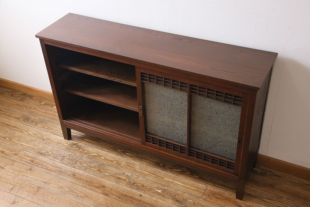 ラフジュ工房> キャビネット・戸棚> テレビ台・ローボード > アンティーク家具 大正ロマン 引き戸の桟が和の雰囲気を醸し出すリメイクサイドボード(戸棚、収納棚)