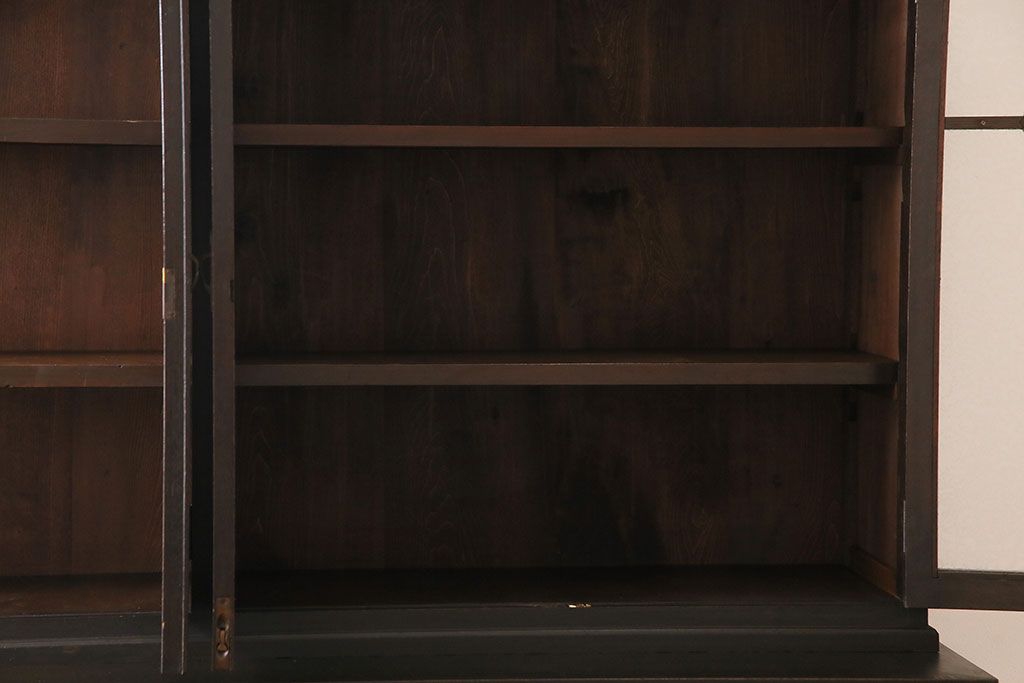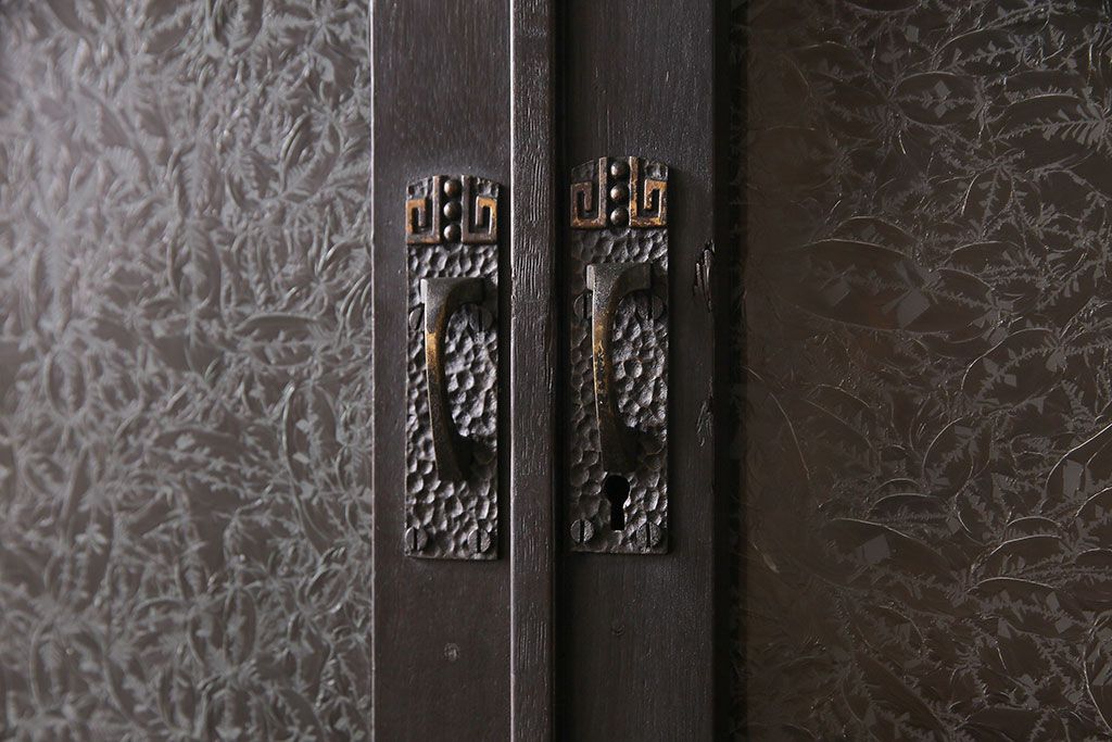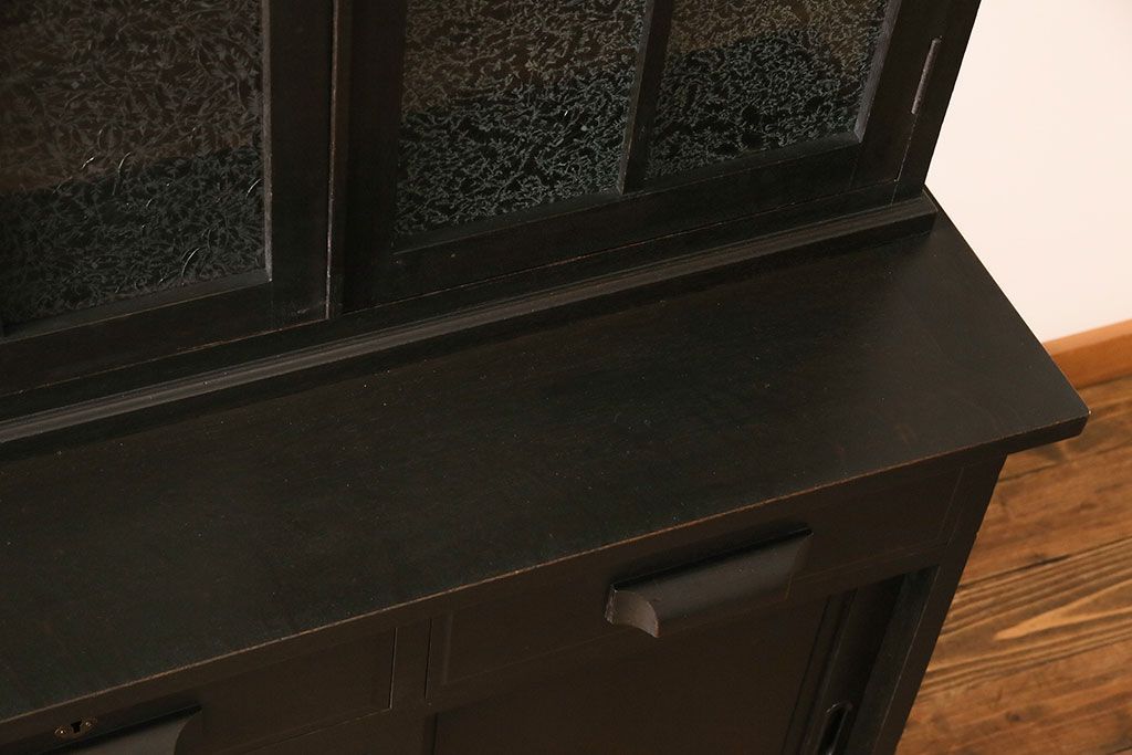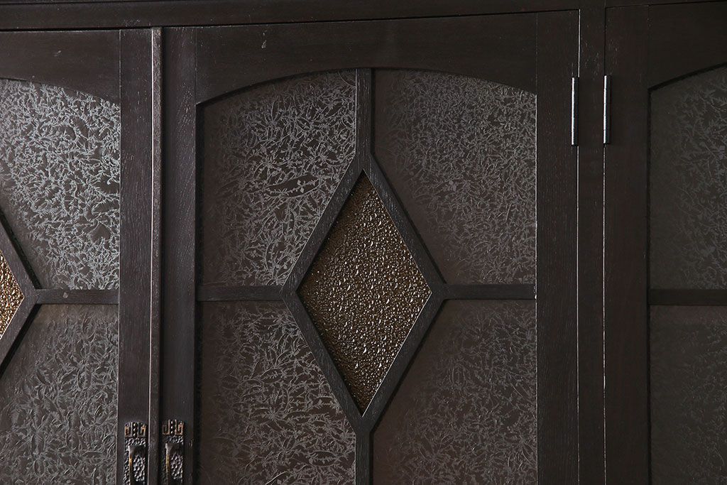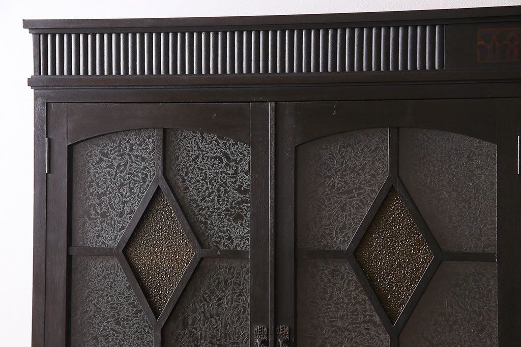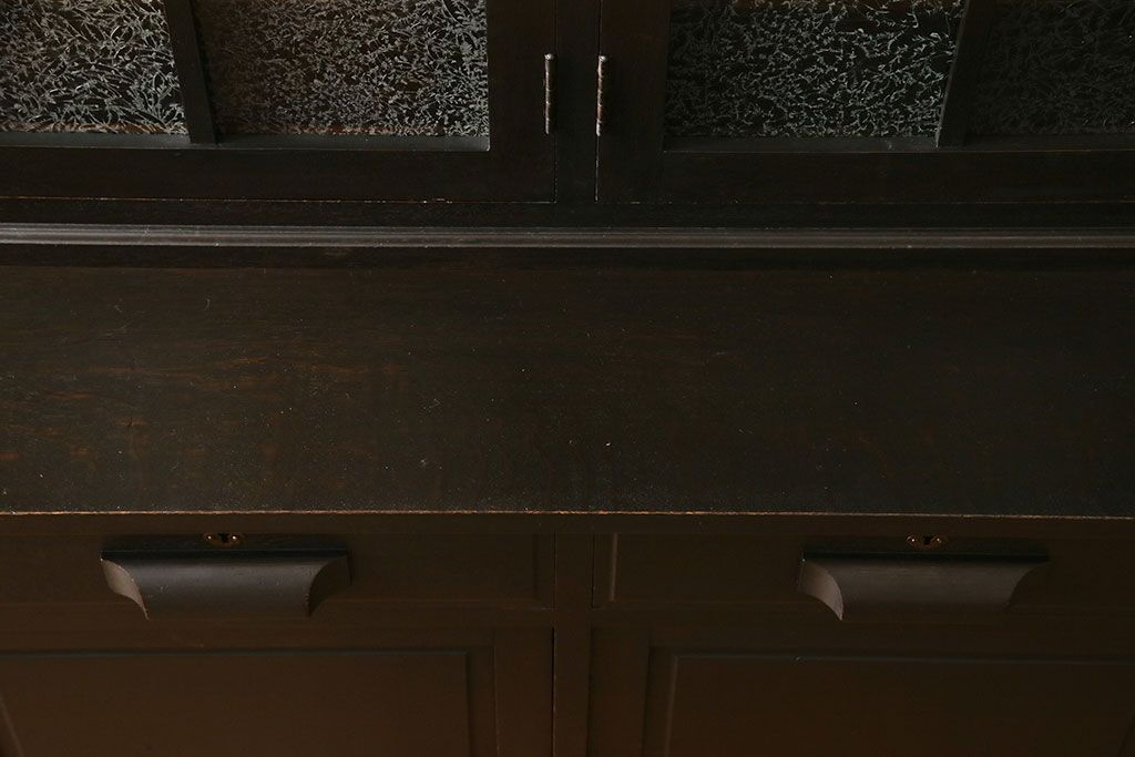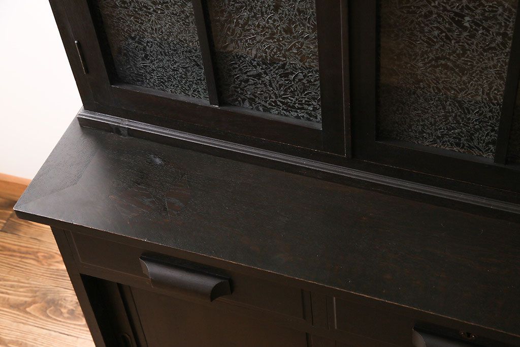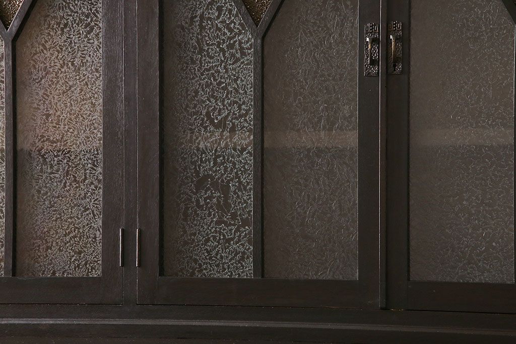 ラフジュ工房> キャビネット・戸棚> 食器棚・カップボード > レトロ家具 和製アンティーク ナラ材 当時物色ガラス入り!レトロモダンな大型食器棚(キャビネット、カップボード、収納棚)