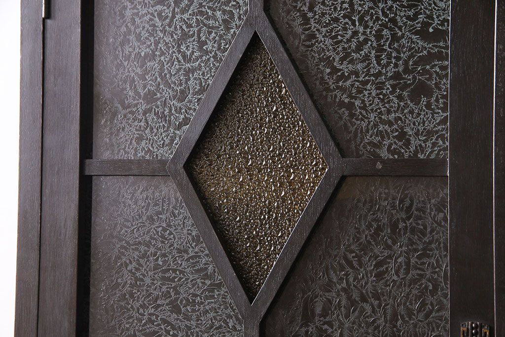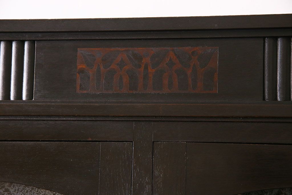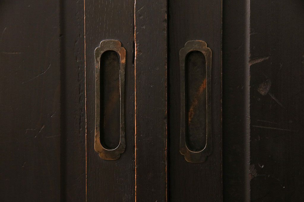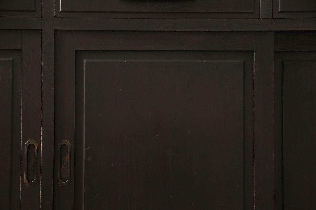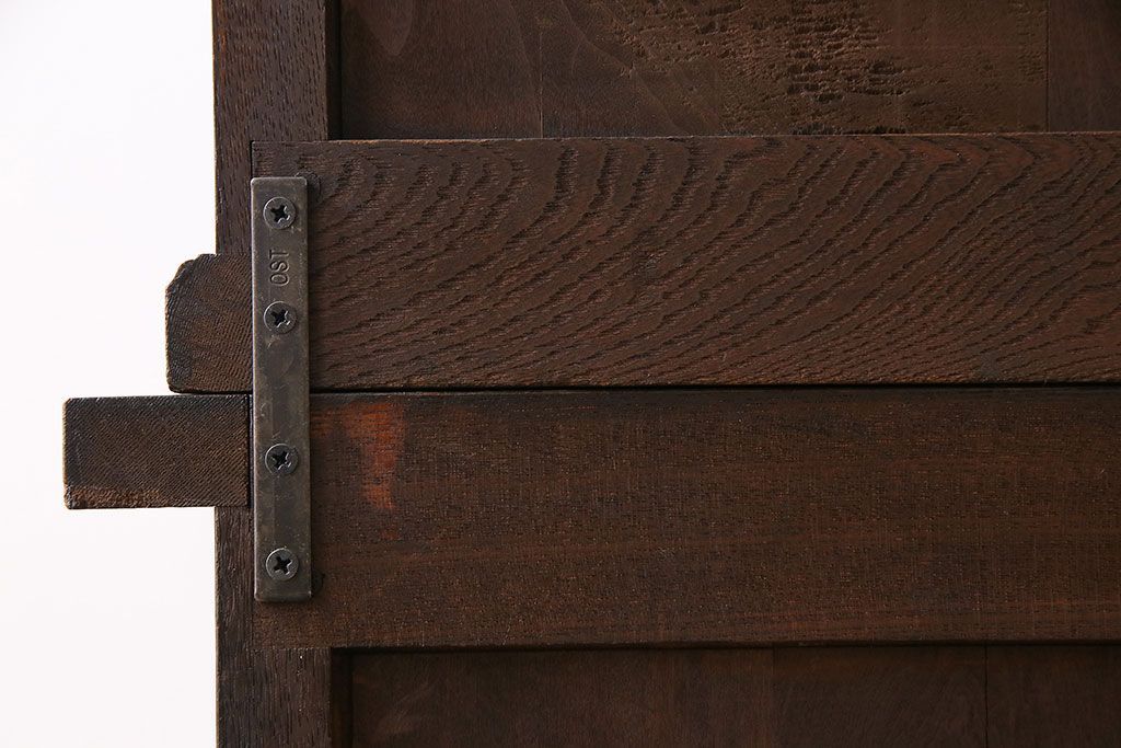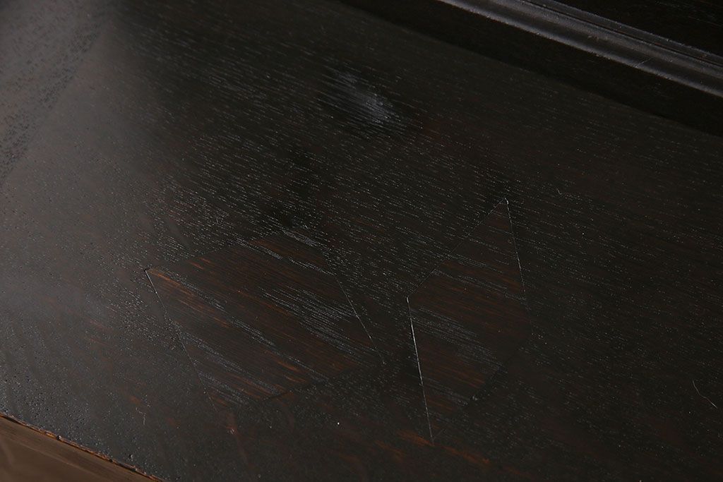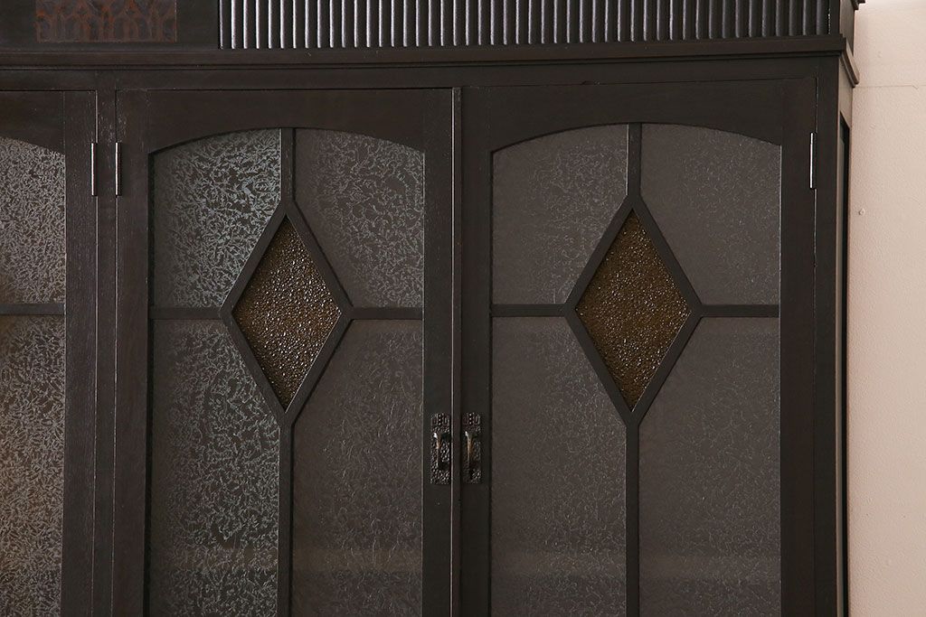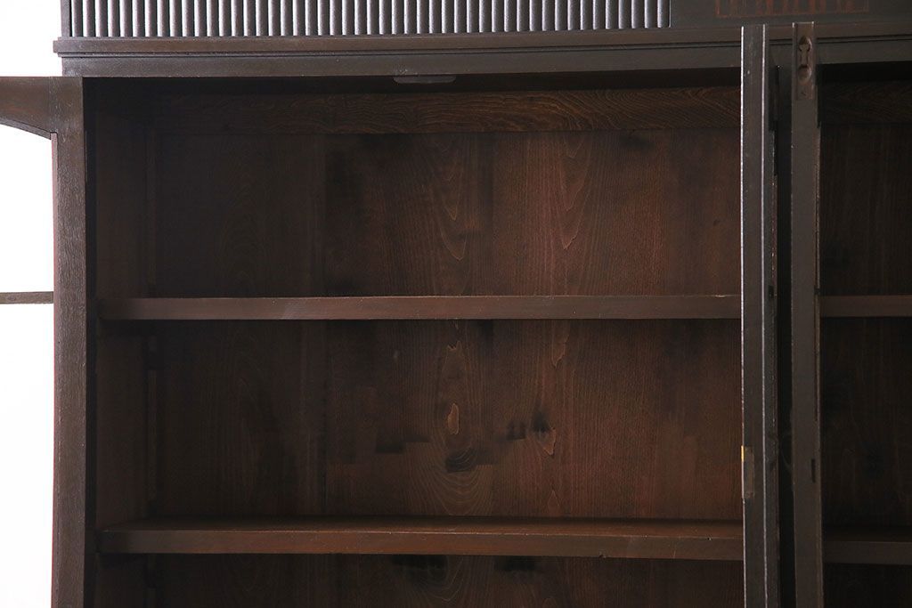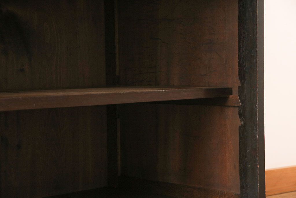 ラフジュ工房> キャビネット・戸棚> 食器棚・カップボード > レトロ家具 和製アンティーク ナラ材 当時物色ガラス入り!レトロモダンな大型食器棚(キャビネット、カップボード、収納棚)