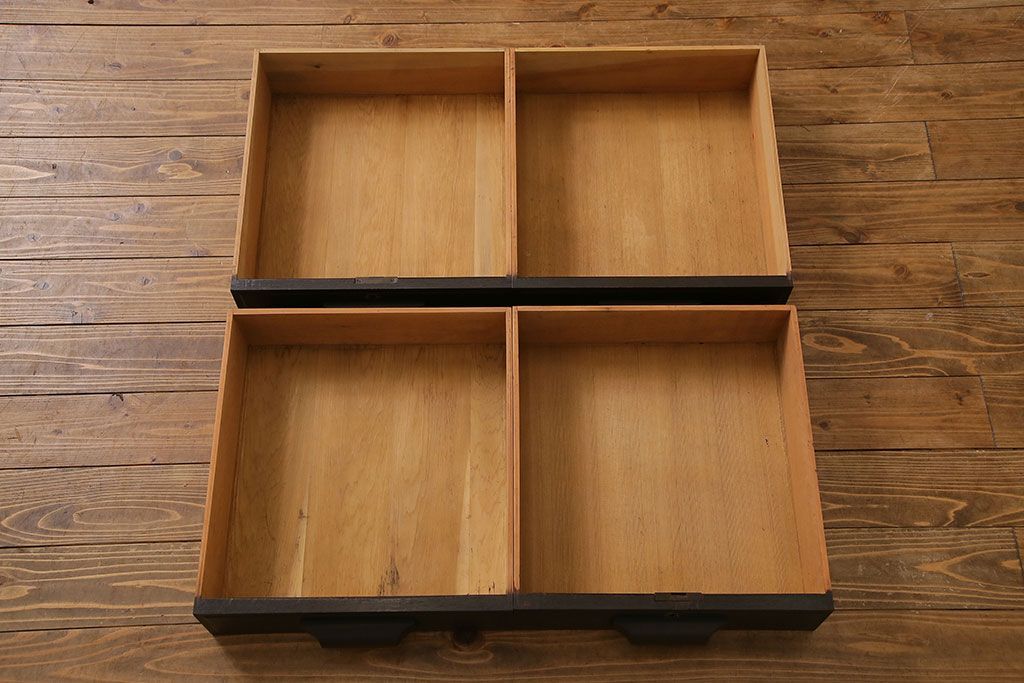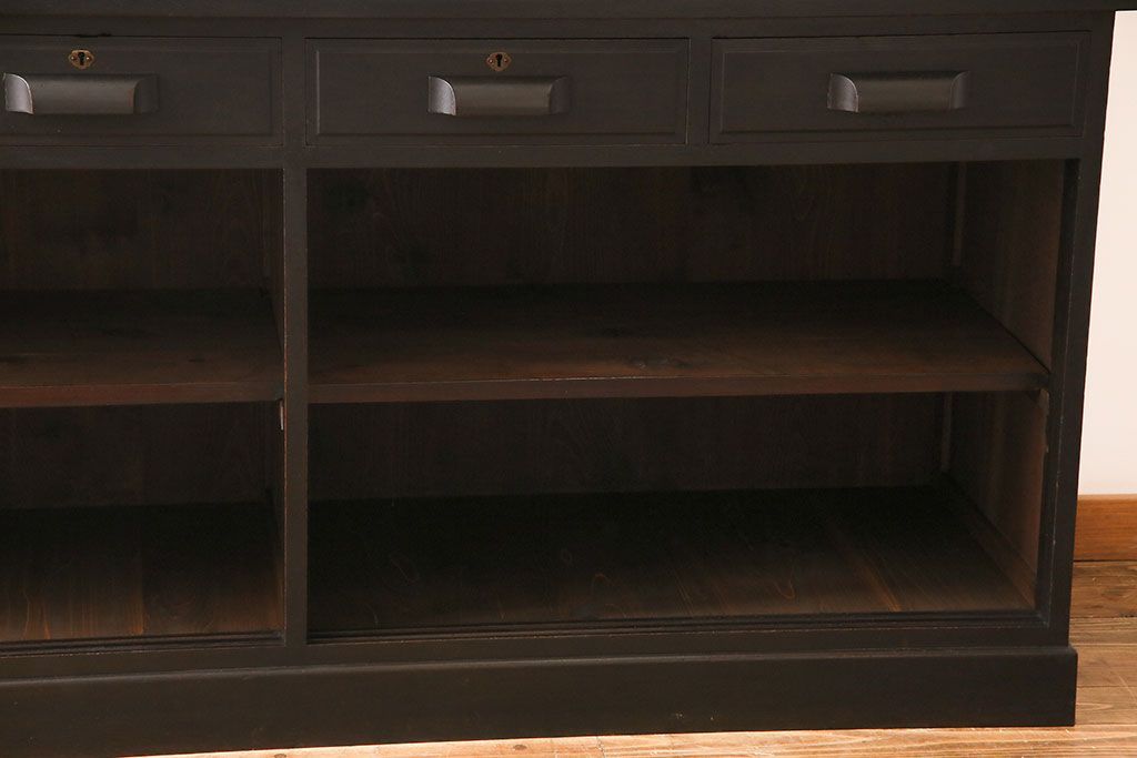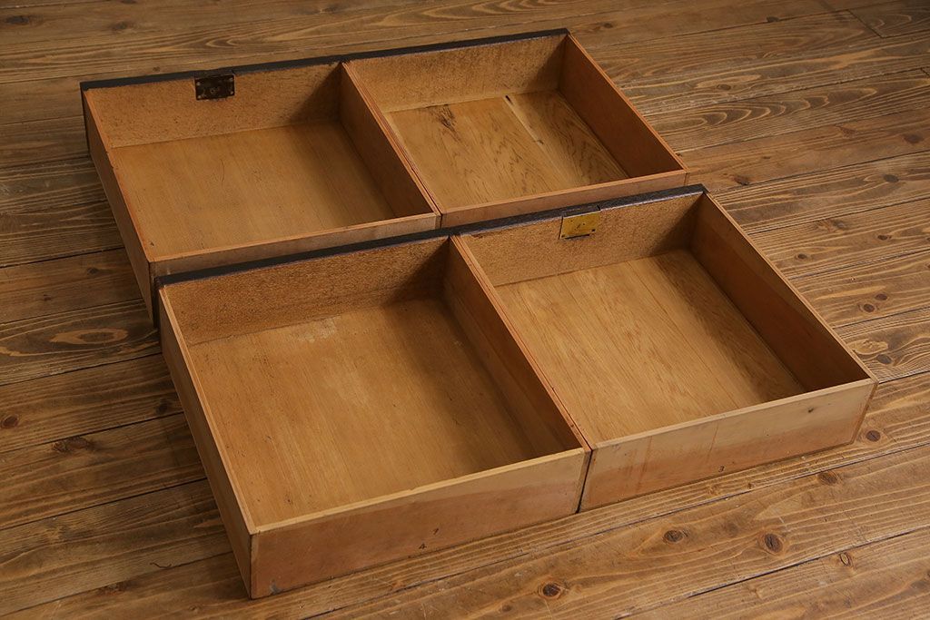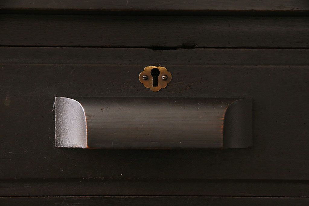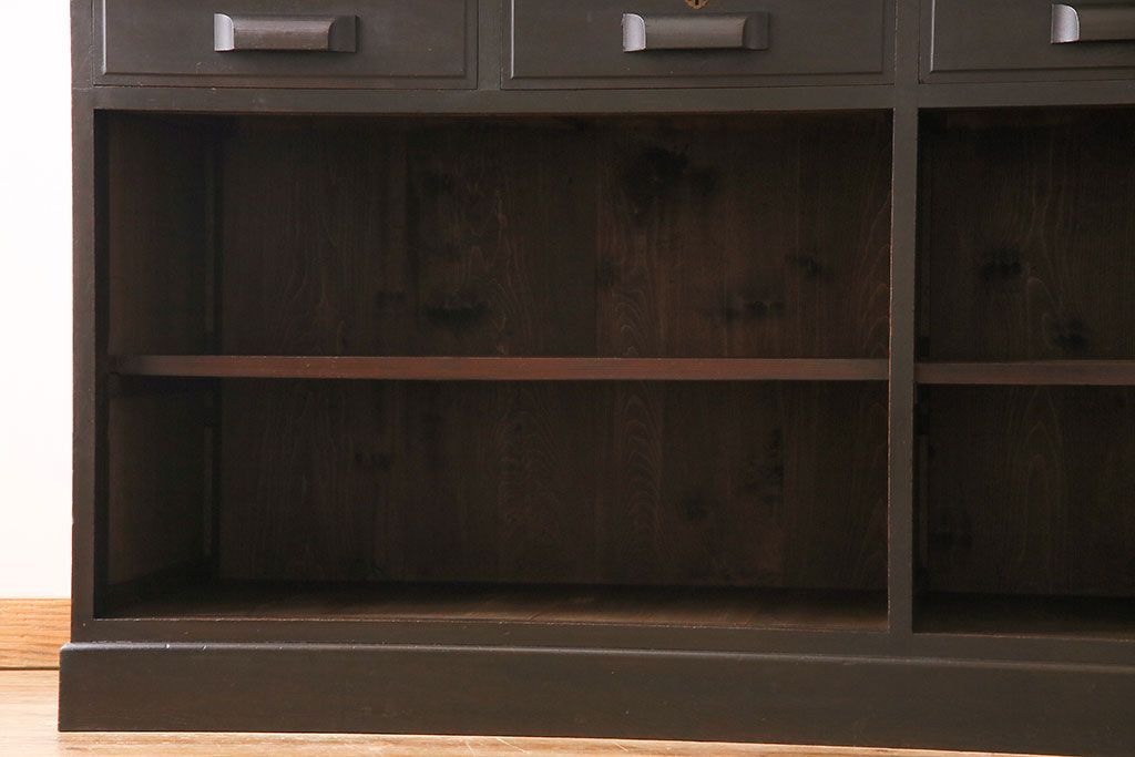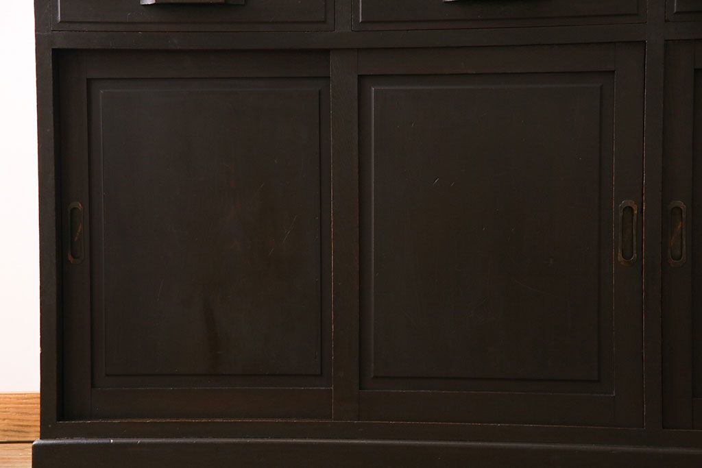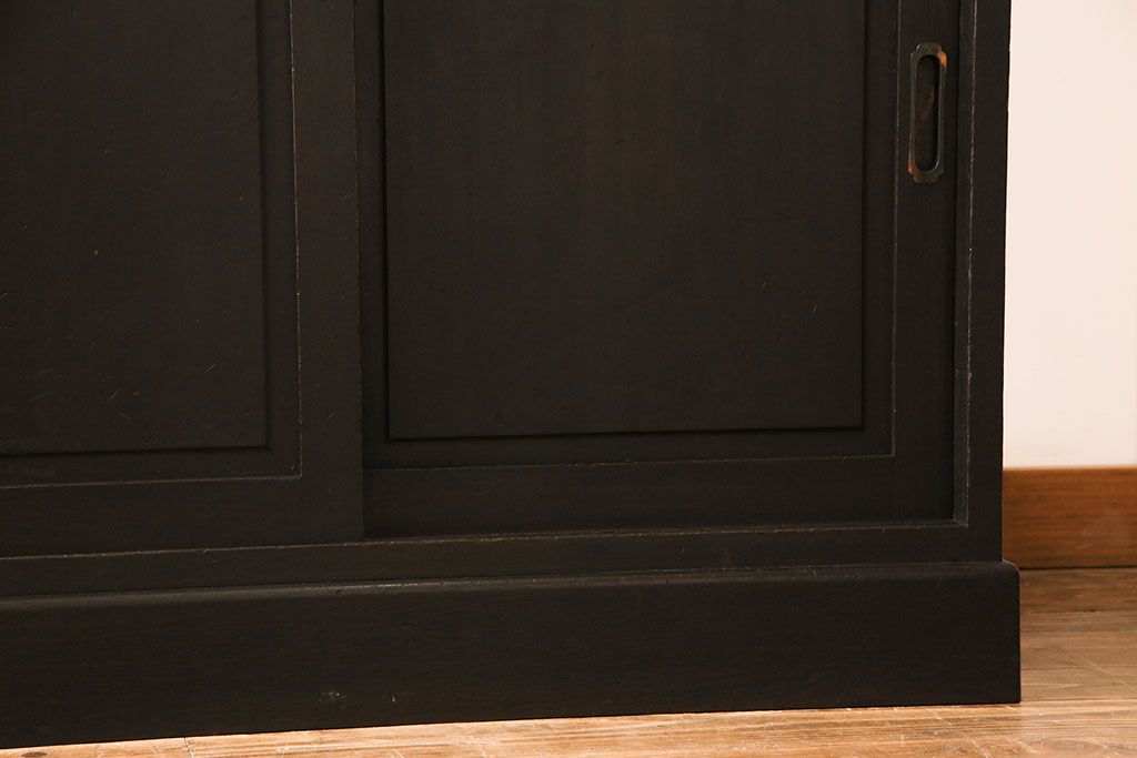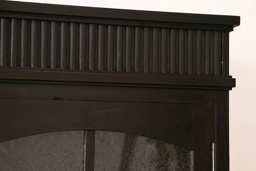 ラフジュ工房> キャビネット・戸棚> 食器棚・カップボード > レトロ家具 和製アンティーク ナラ材 当時物色ガラス入り!レトロモダンな大型食器棚(キャビネット、カップボード、収納棚)