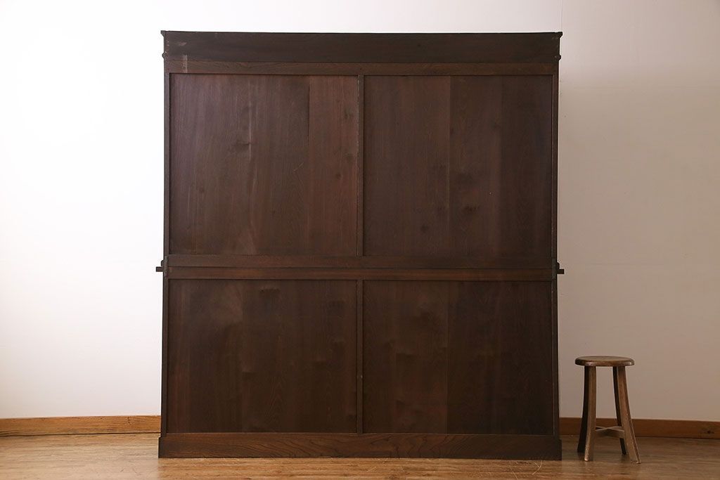 レトロ家具 和製アンティーク ナラ材 当時物色ガラス入り!レトロモダンな大型食器棚(キャビネット、カップボード、収納棚)