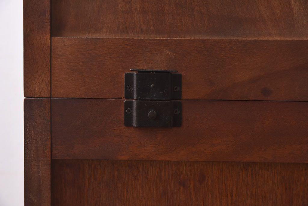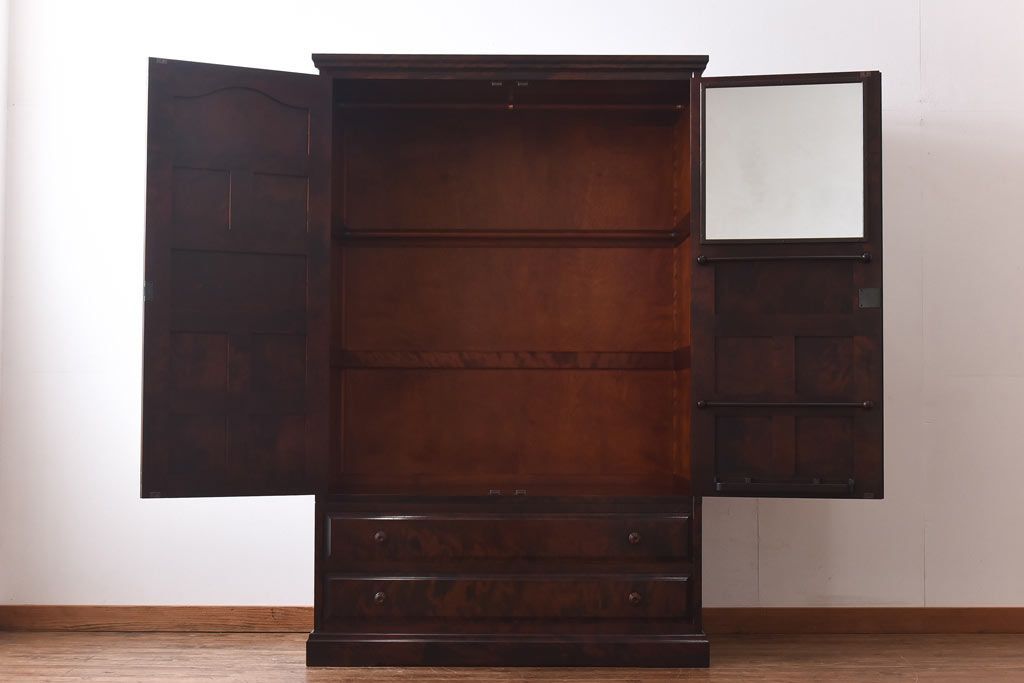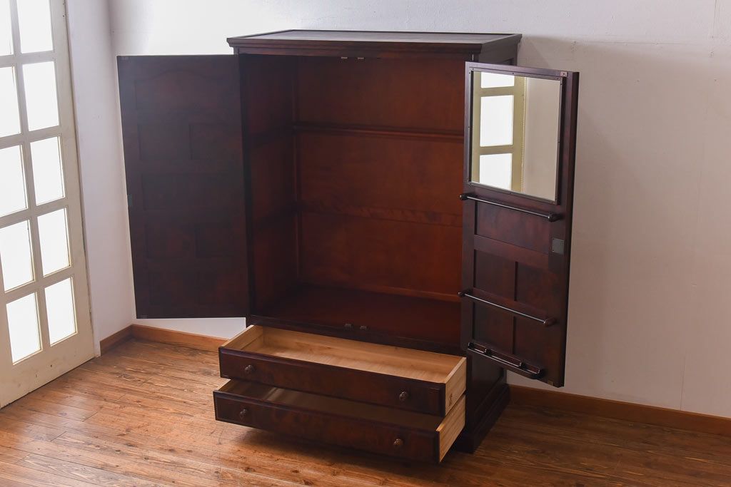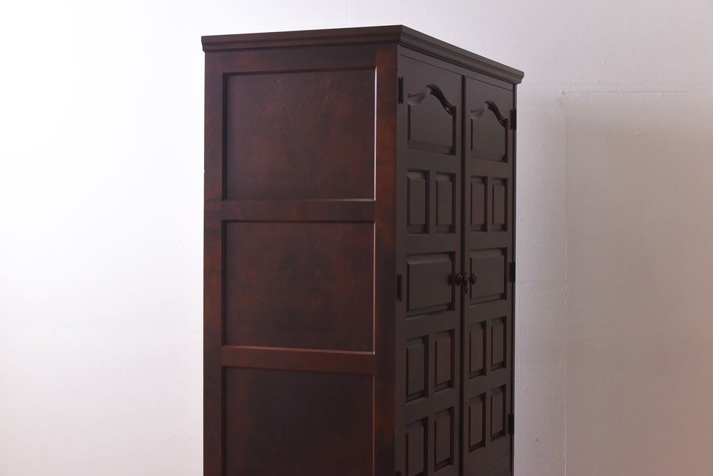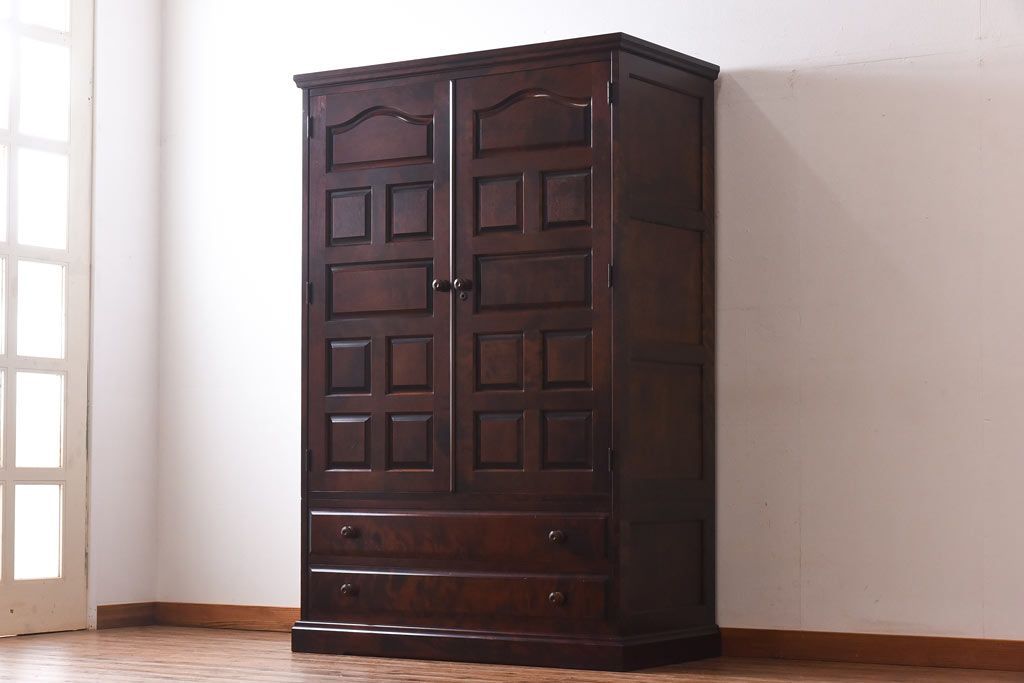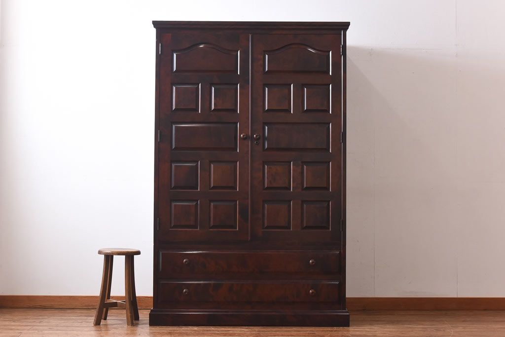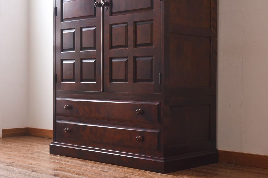 中古 北海道民芸家具 シックな色合いの2段重ねワードローブ(洋服タンス、洋服箪笥)(定価約80万円)(1)です。