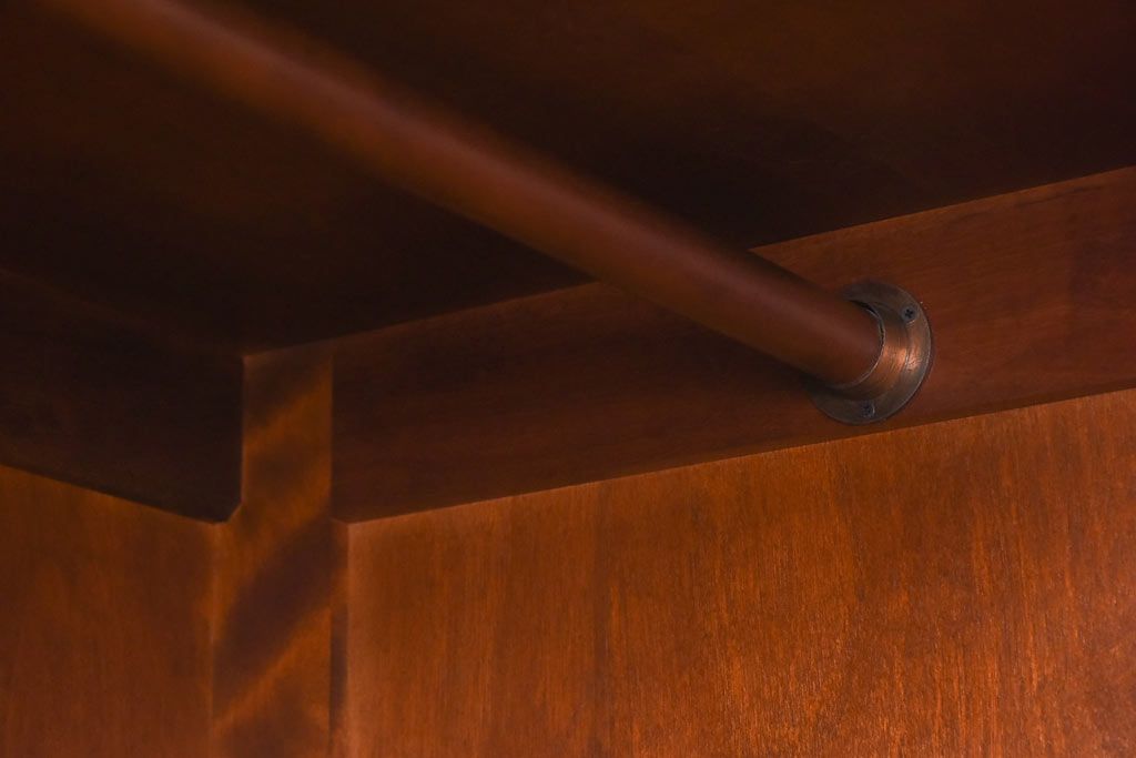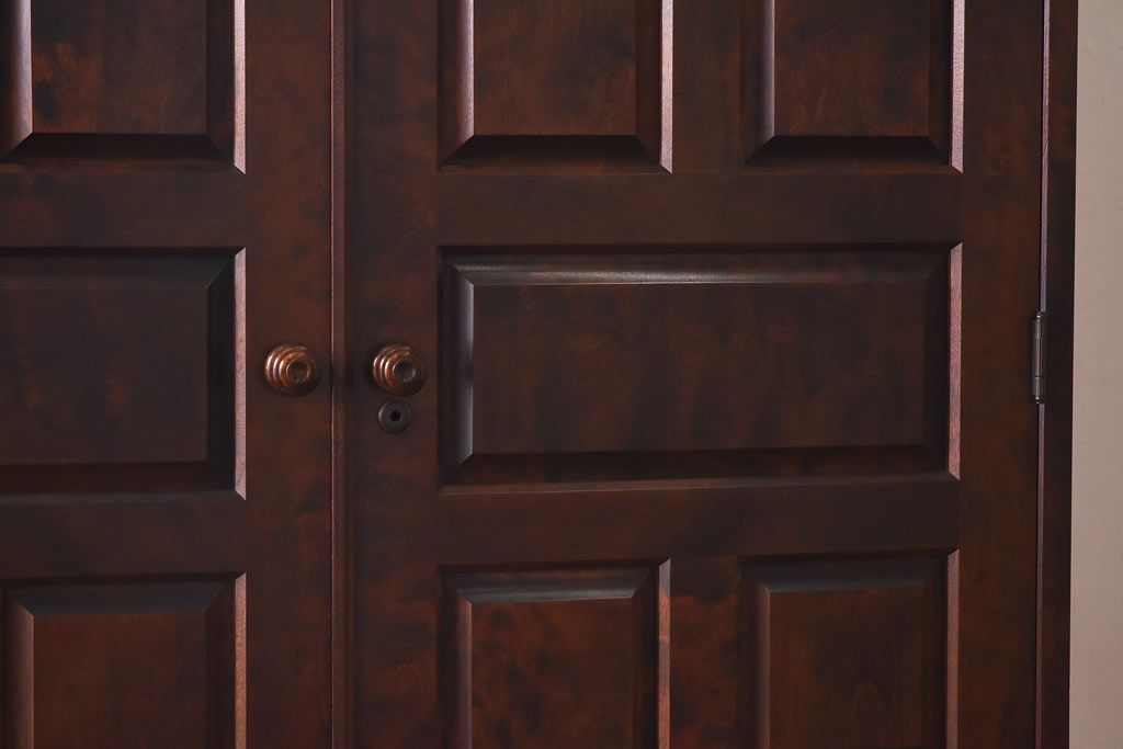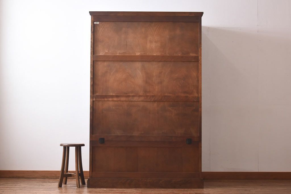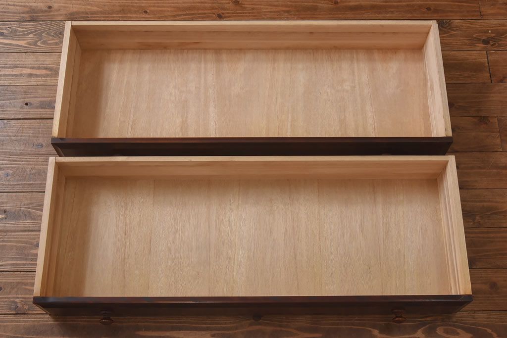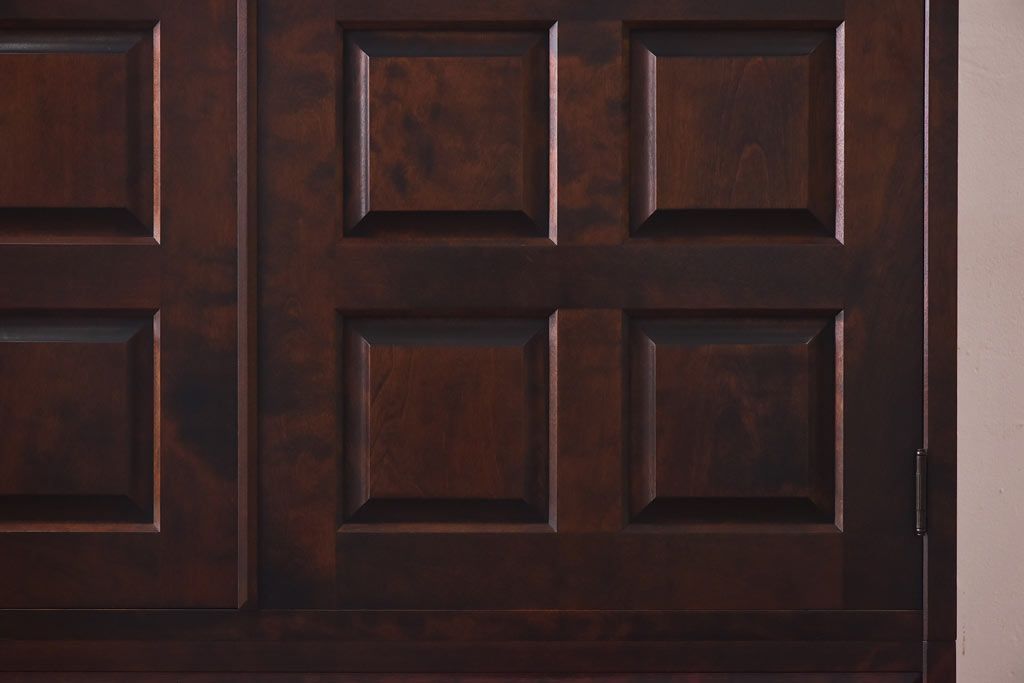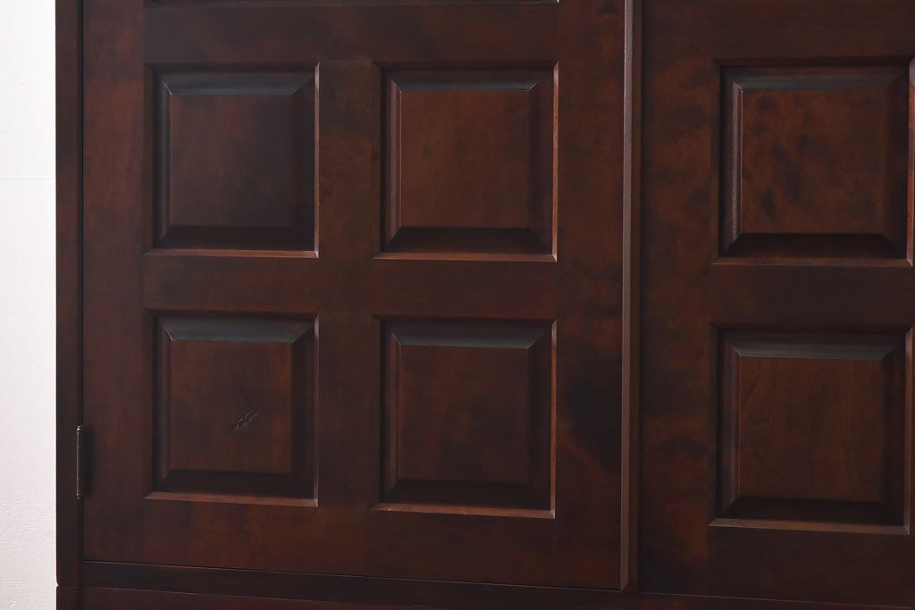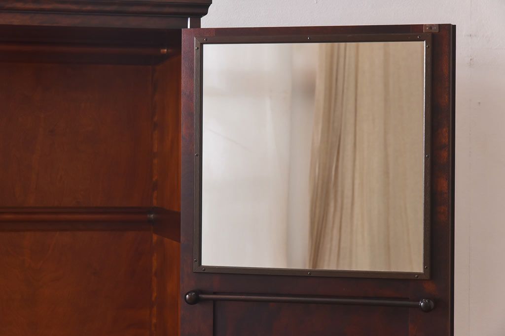 中古 北海道民芸家具 シックな色合いの2段重ねワードローブ(洋服タンス、洋服箪笥)(定価約80万円)(1)