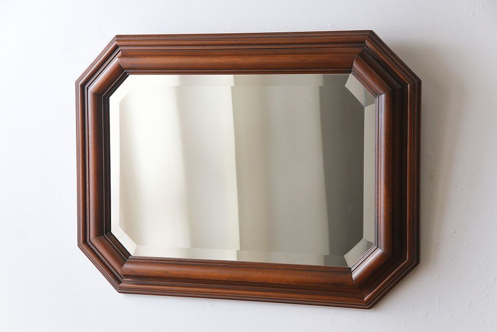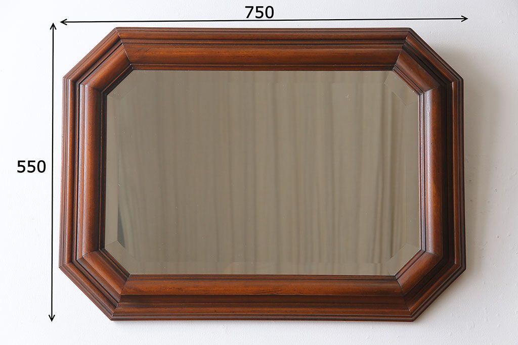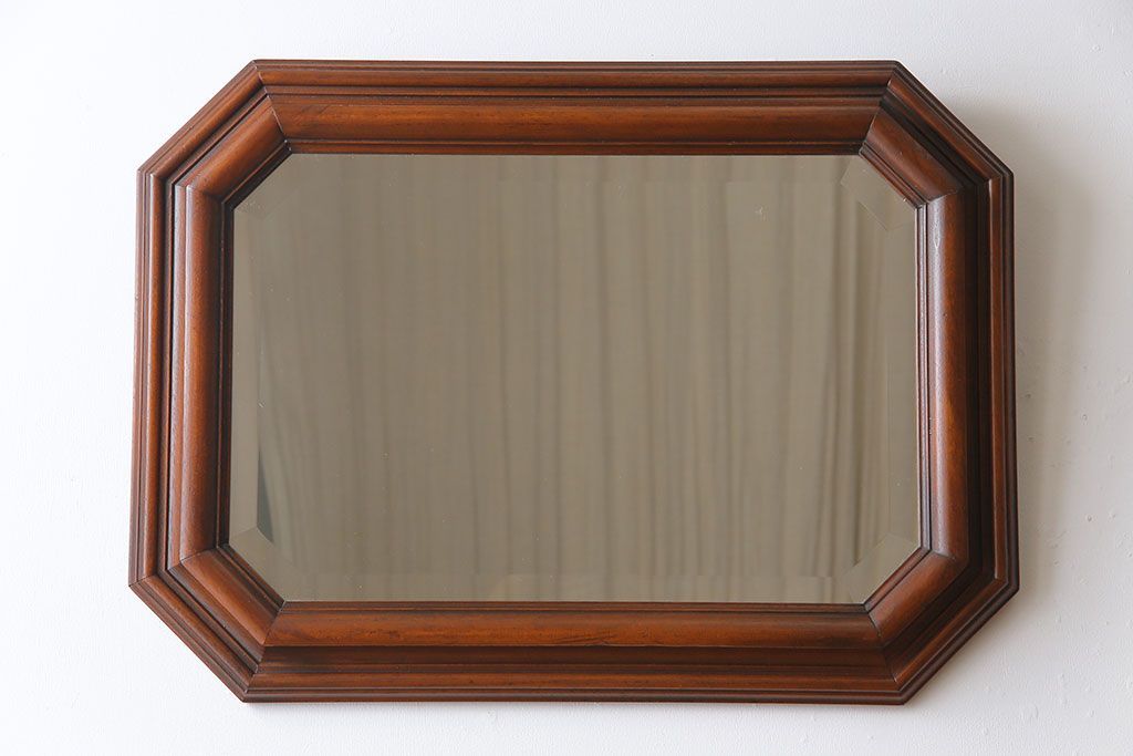 ラフジュ工房> 鏡 > アンティーク雑貨 中古 輸入品 上品な木のフレームが魅力的なオクタゴナルミラー(ウォールミラー、壁掛け鏡)