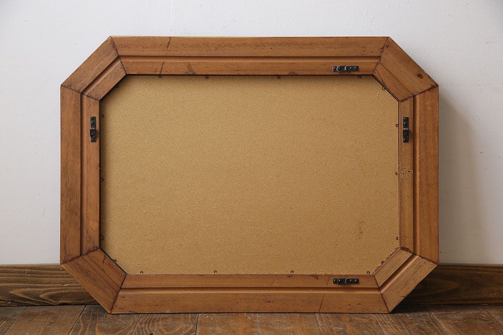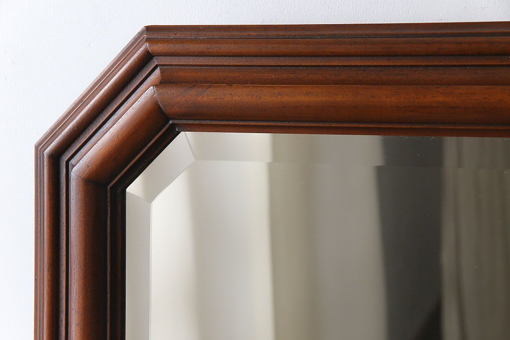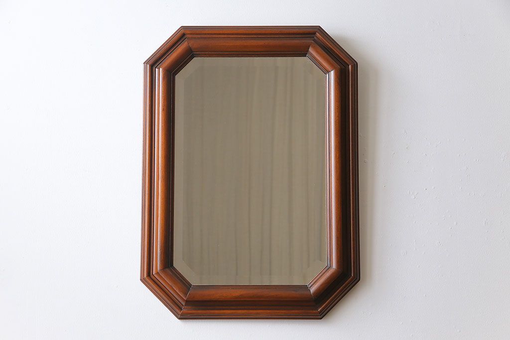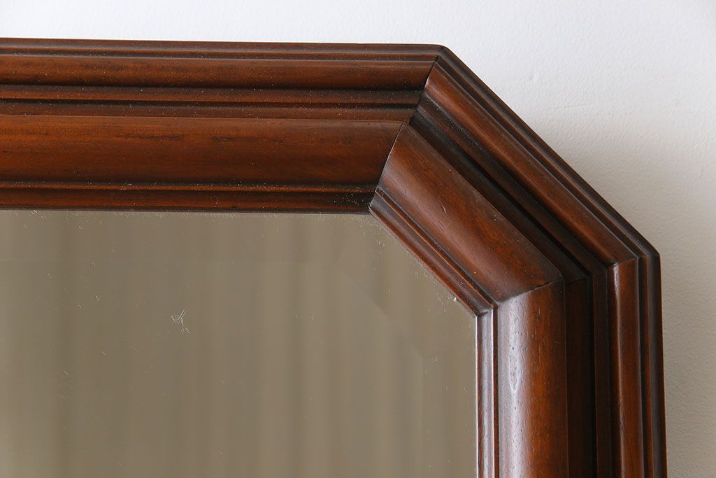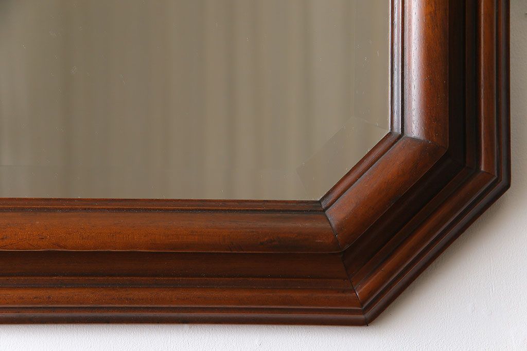 アンティーク雑貨 中古 輸入品 上品な木のフレームが魅力的なオクタゴナルミラー(ウォールミラー、壁掛け鏡)