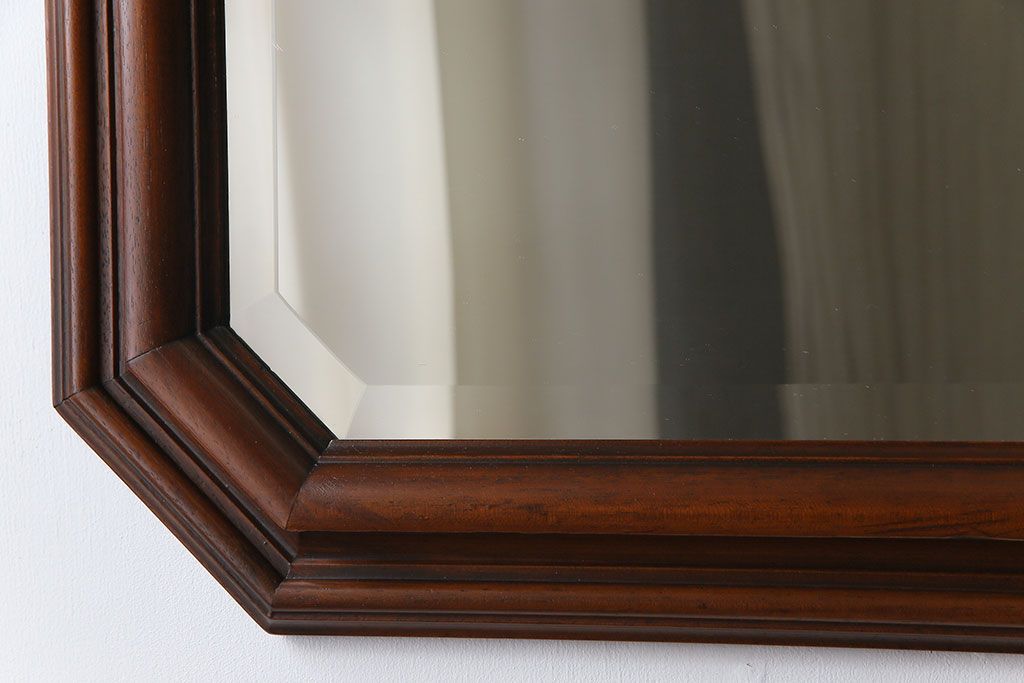 ラフジュ工房> 鏡> 壁掛け鏡 > アンティーク雑貨 中古 輸入品 上品な木のフレームが魅力的なオクタゴナルミラー(ウォールミラー、壁掛け鏡)