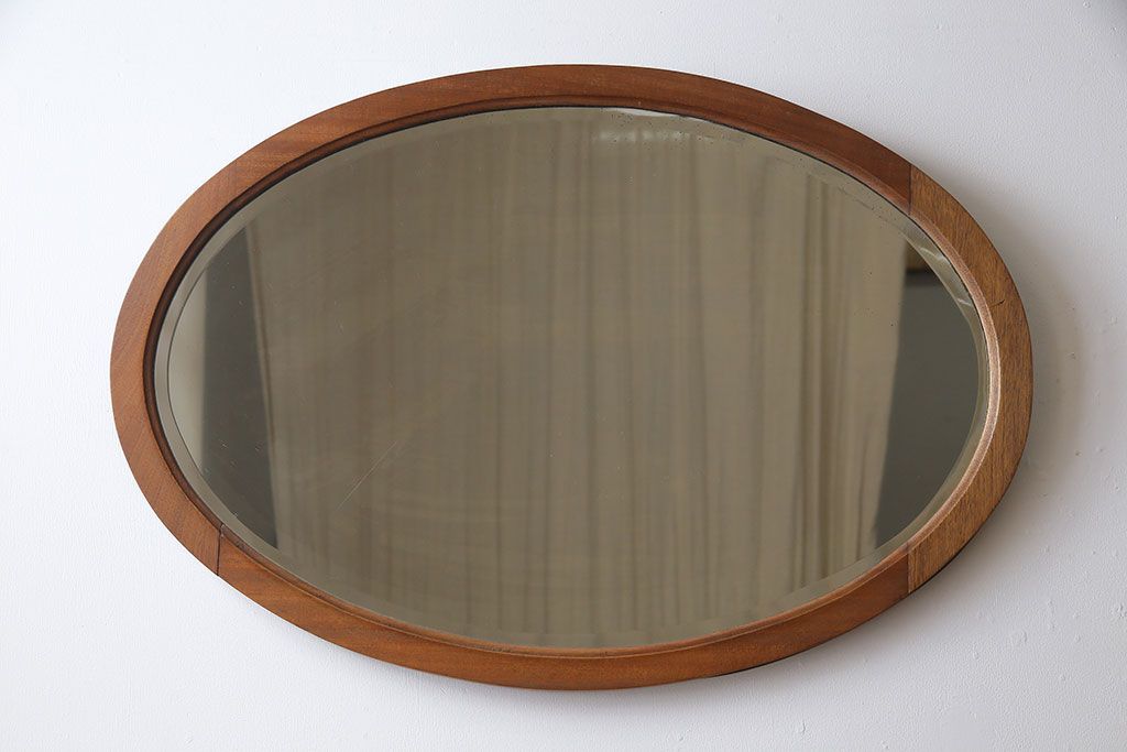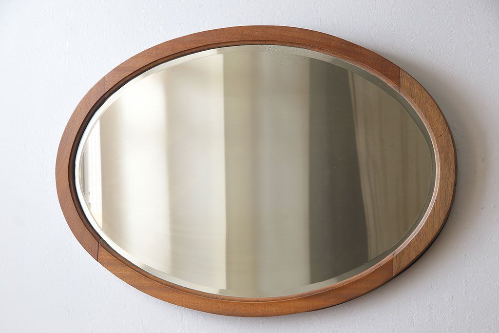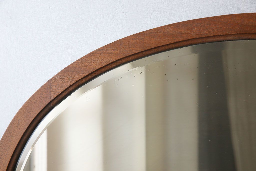 ラフジュ工房> 鏡 > アンティーク雑貨 イギリスアンティーク マホガニー材 温かみのある木の風合いが魅力のオーバルミラー(ウォールミラー、壁掛け鏡)