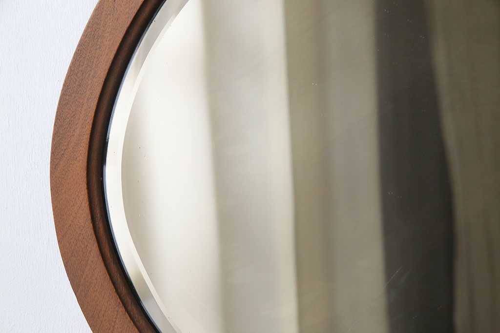 アンティーク雑貨 イギリスアンティーク マホガニー材 温かみのある木の風合いが魅力のオーバルミラー(ウォールミラー、壁掛け鏡)