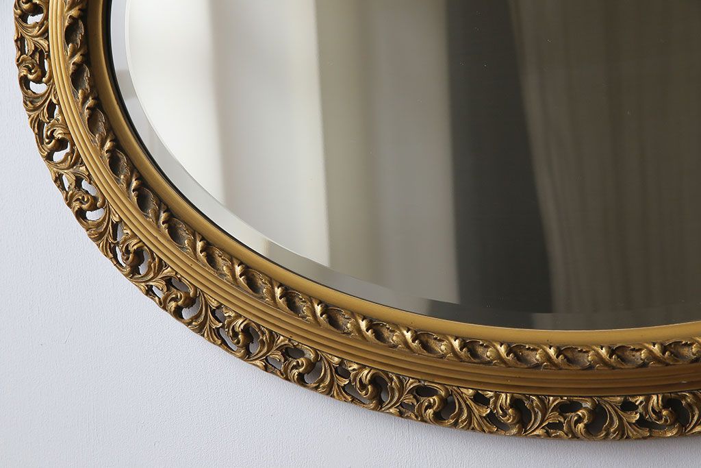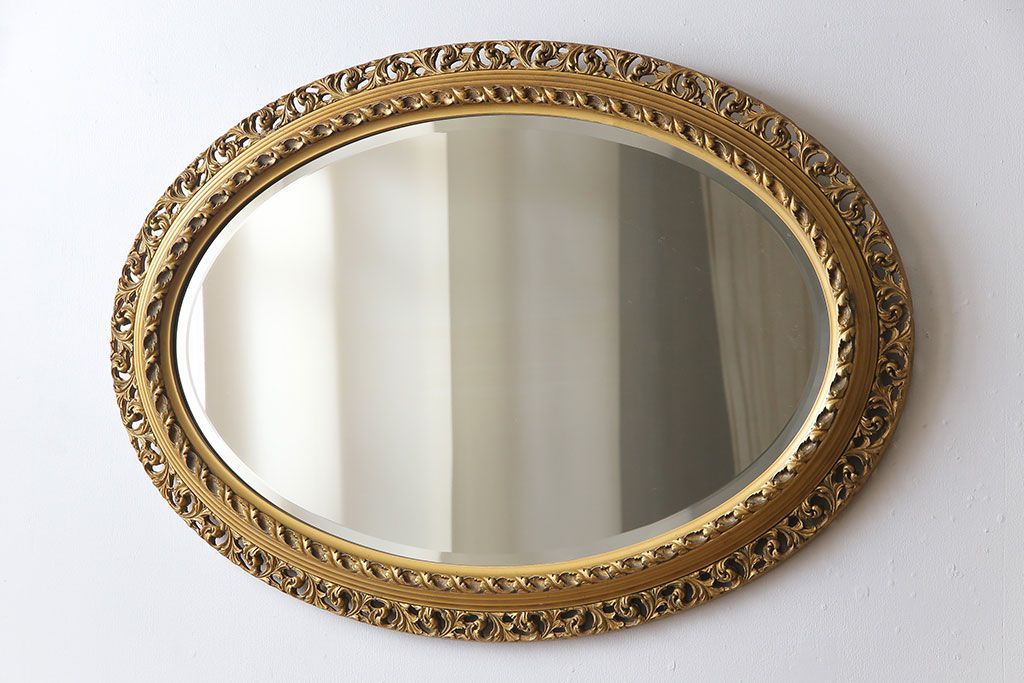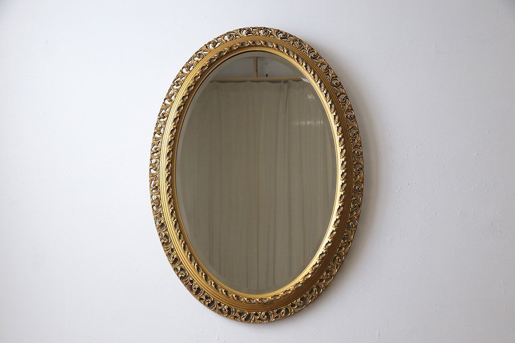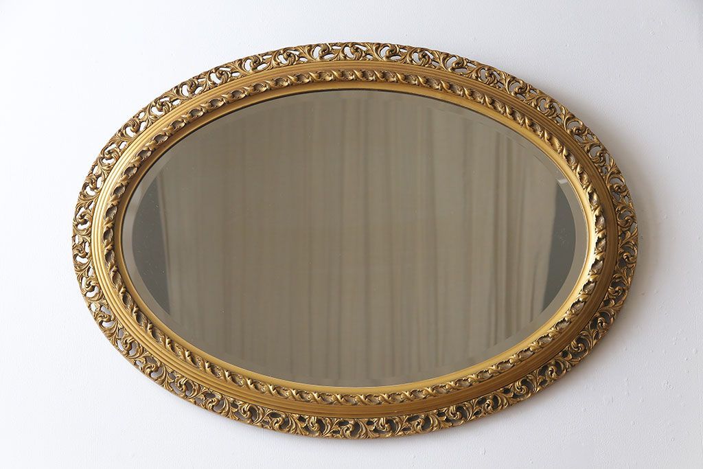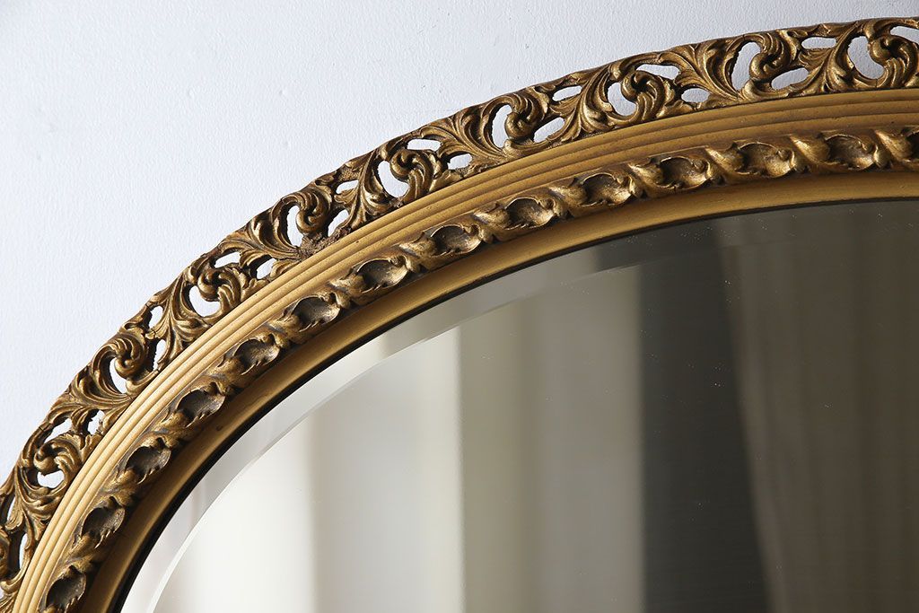 ラフジュ工房> 鏡 > アンティーク雑貨 フランスヴィンテージ 上品なデザインが目を惹くオーバルミラー(ウォールミラー、壁掛け鏡、ビンテージ)