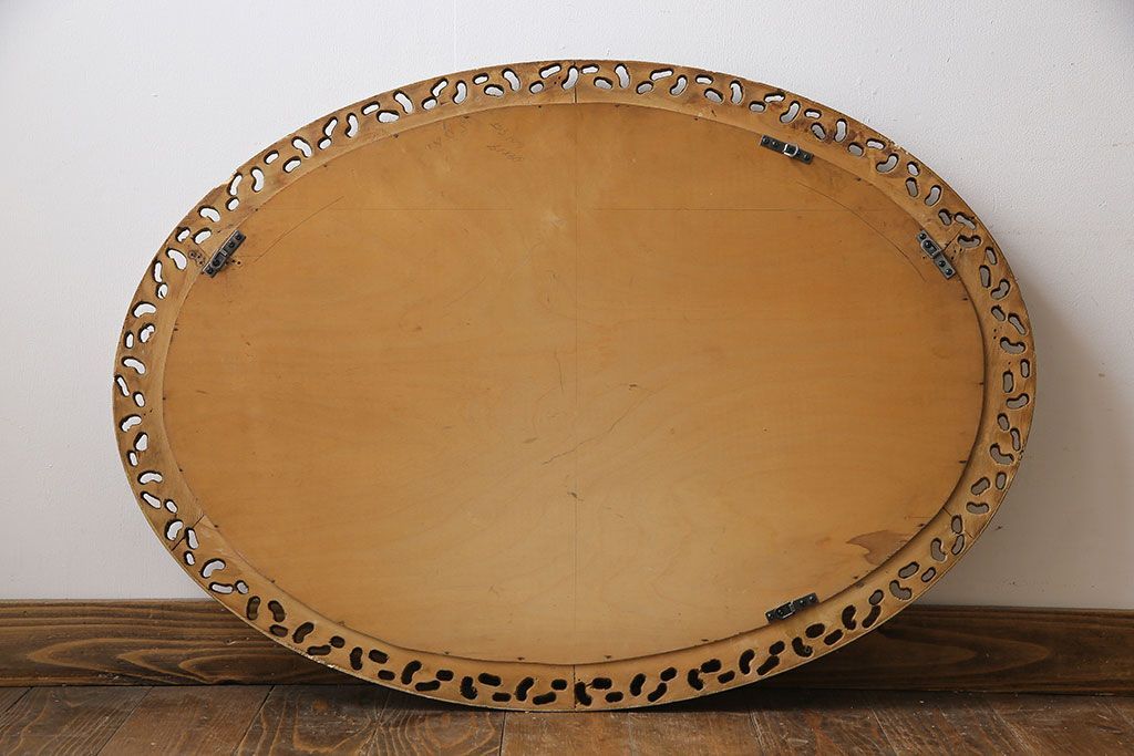 アンティーク雑貨 フランスヴィンテージ 上品なデザインが目を惹くオーバルミラー(ウォールミラー、壁掛け鏡、ビンテージ)