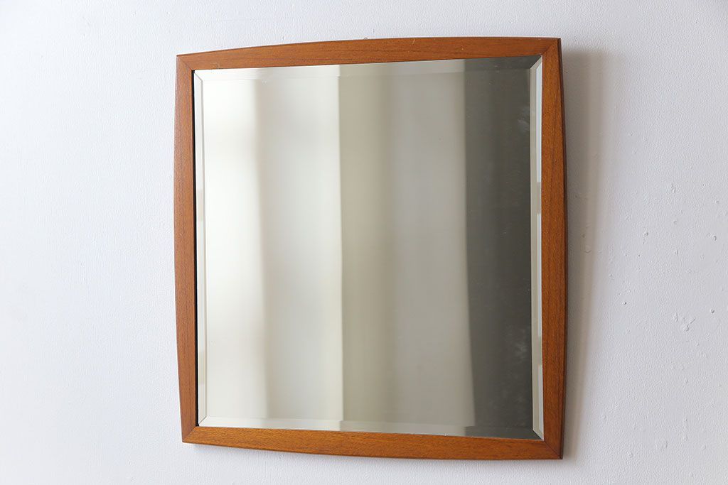 ラフジュ工房> 鏡> 壁掛け鏡 > アンティーク雑貨 【O様ご成約済み】北欧ヴィンテージ シンプルなフレームのスクエアミラー(ウォールミラー、壁掛け鏡、ビンテージ)