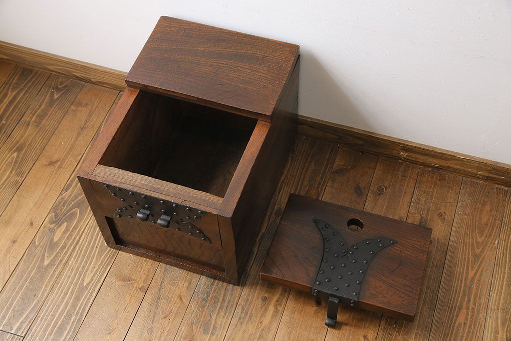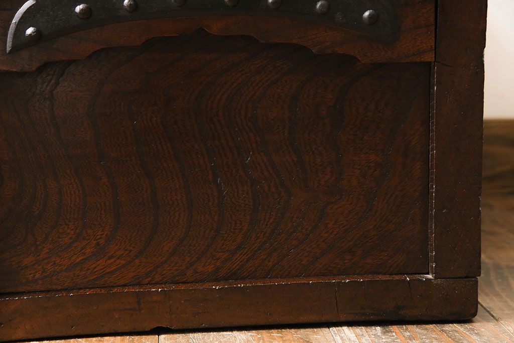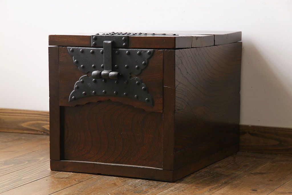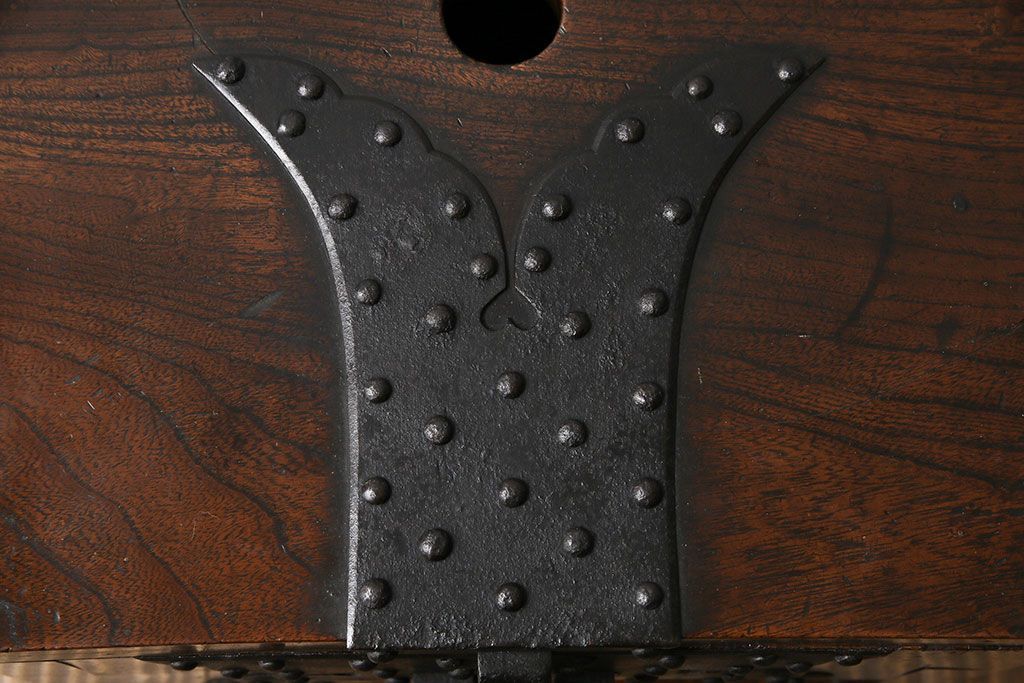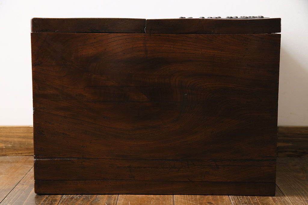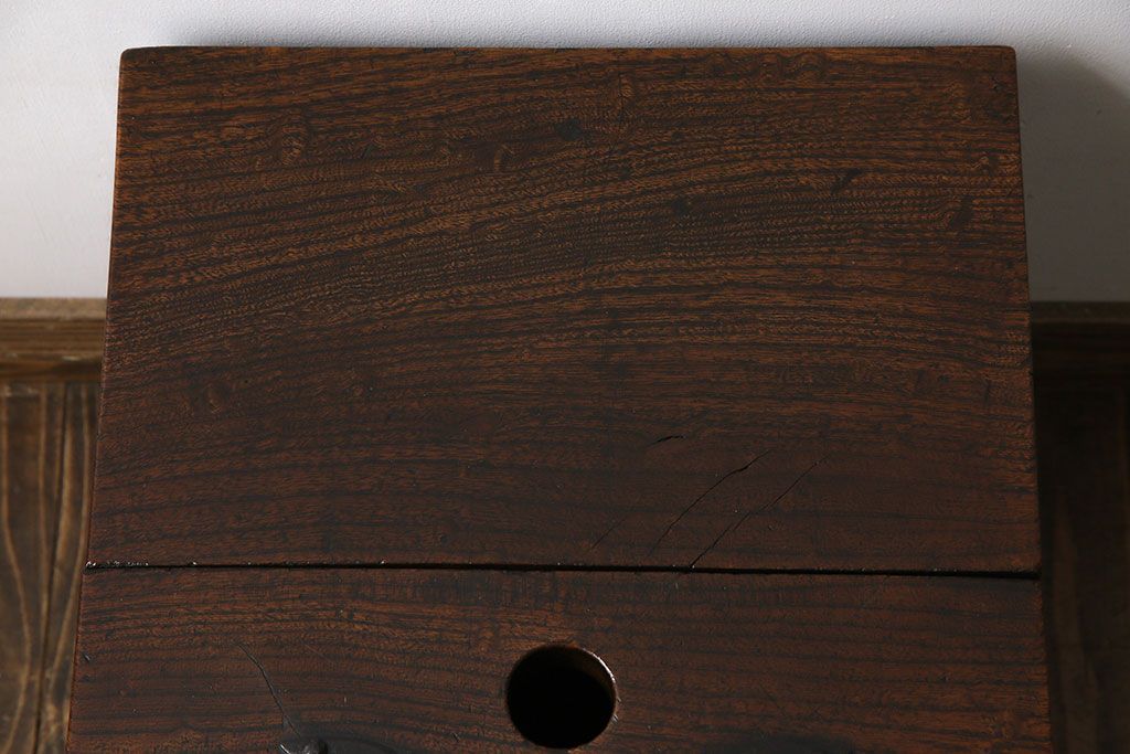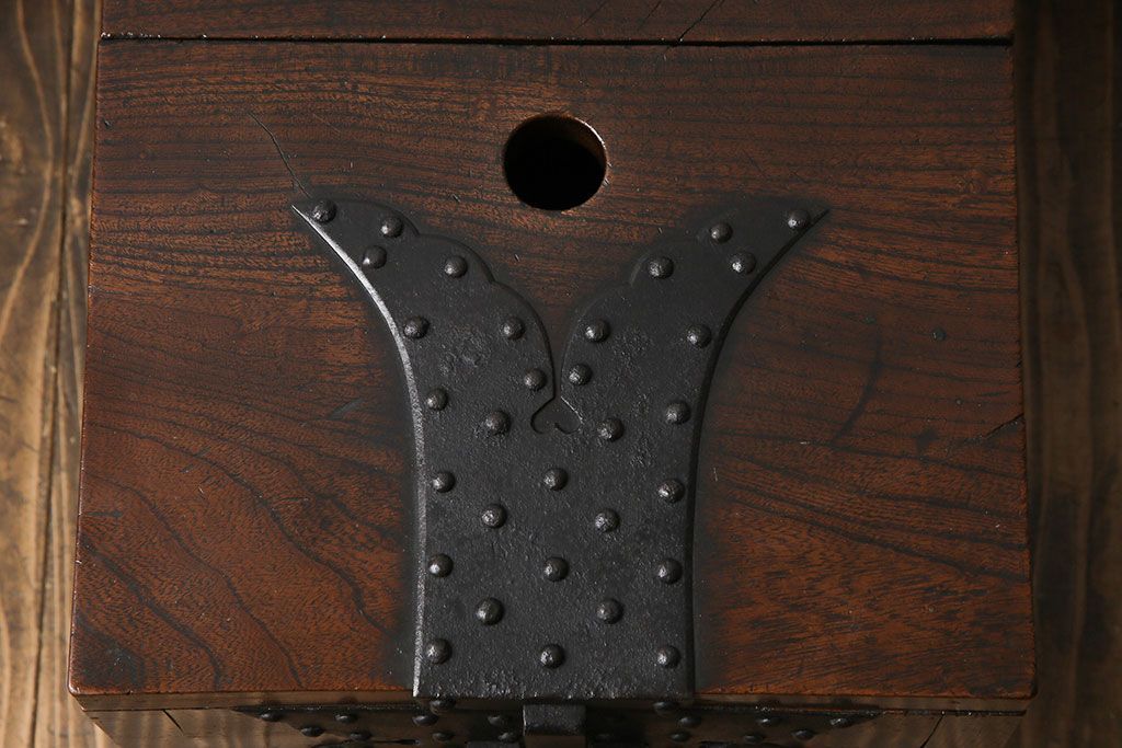 ラフジュ工房> 骨董・美術品 > アンティーク雑貨 古民具・骨董 総ケヤキ材 大振り 厚めの材と杢目が魅力的な銭箱(銭函)