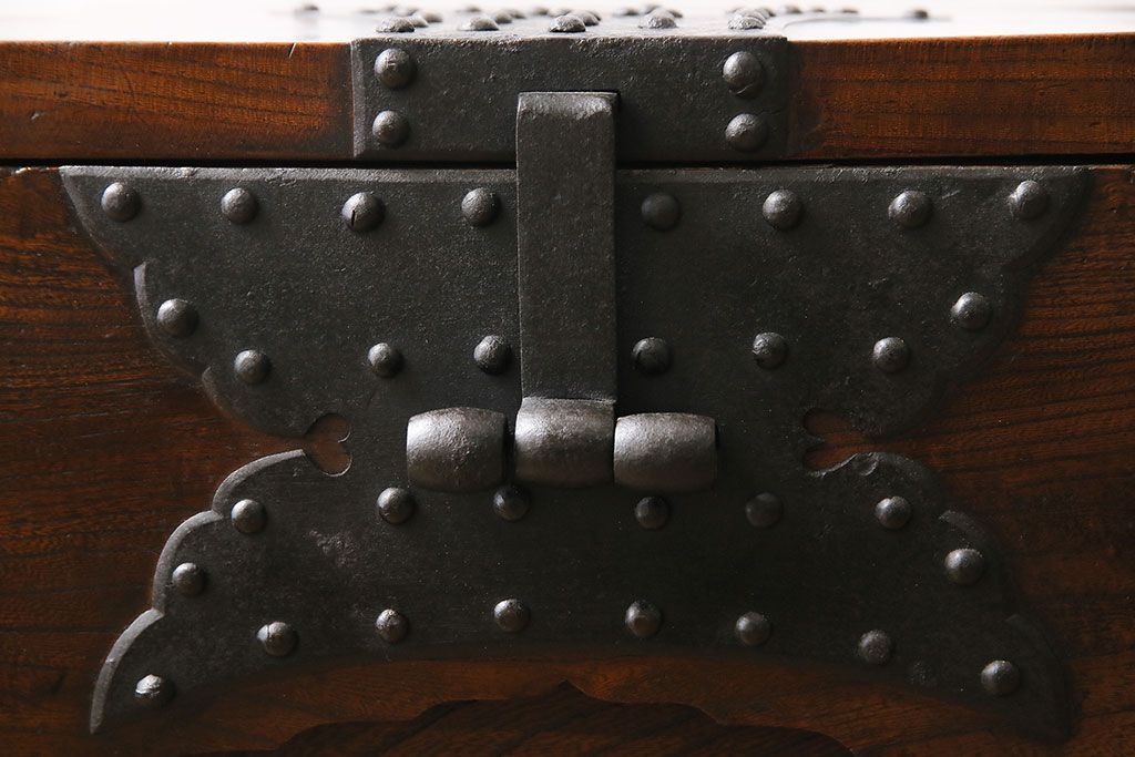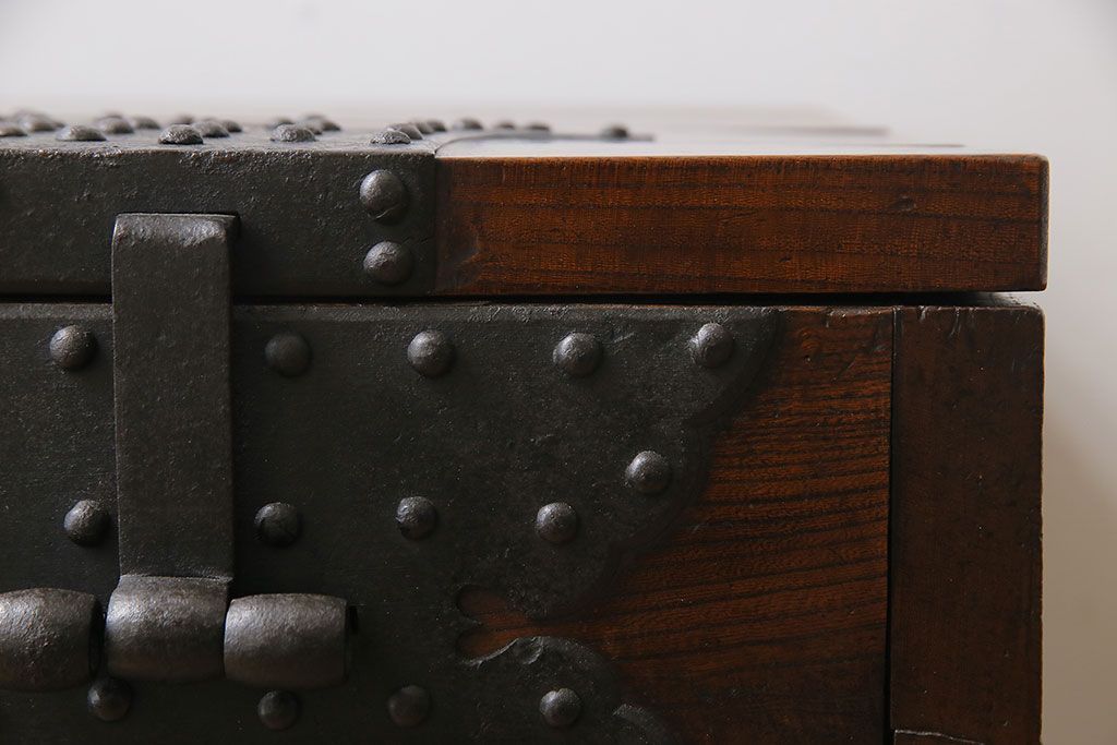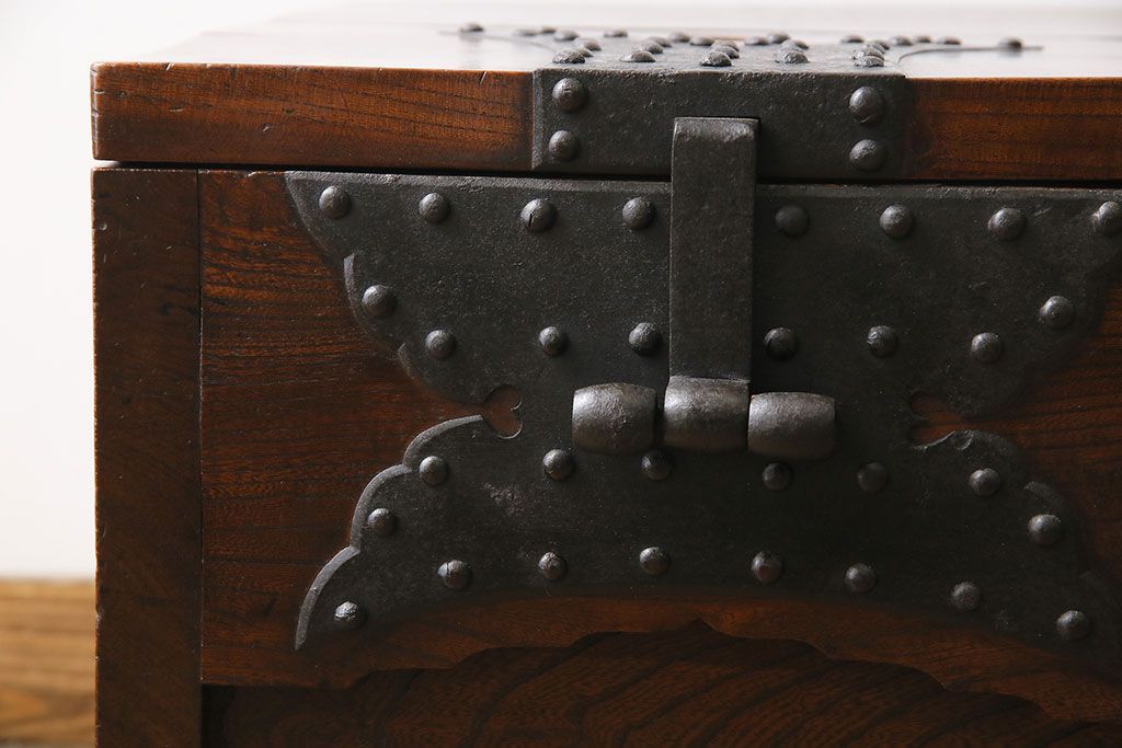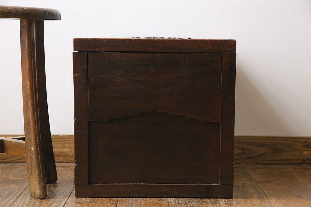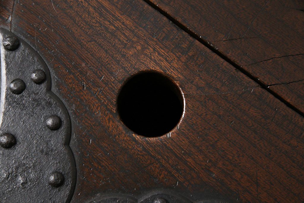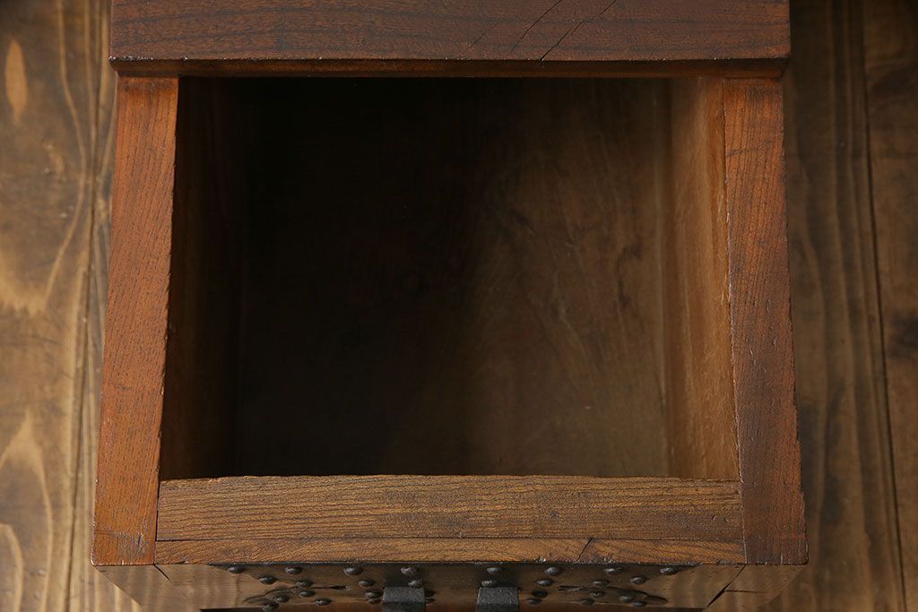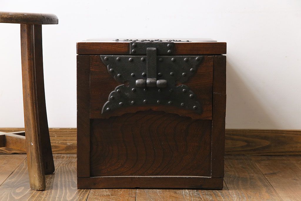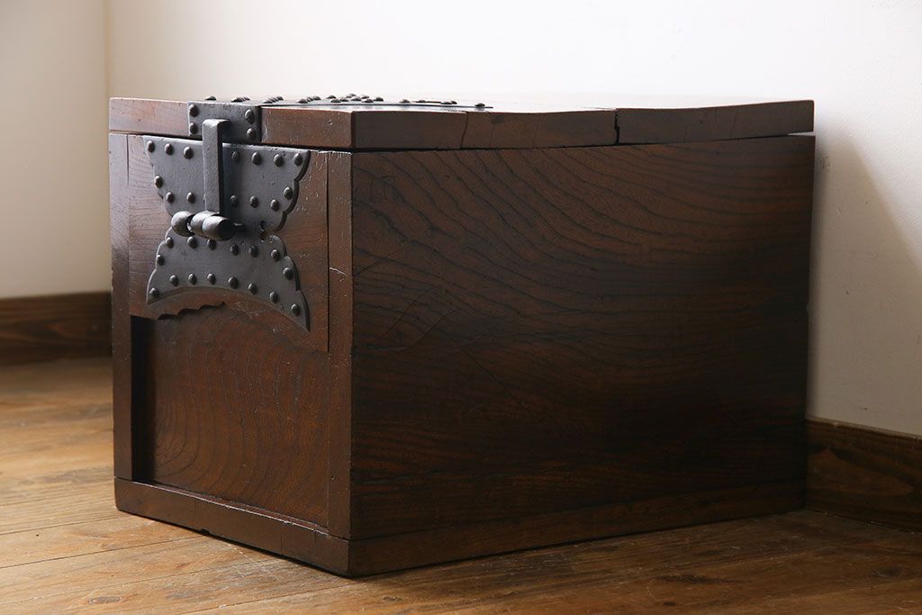 ラフジュ工房> 骨董・美術品 > アンティーク雑貨 古民具・骨董 総ケヤキ材 大振り 厚めの材と杢目が魅力的な銭箱(銭函)