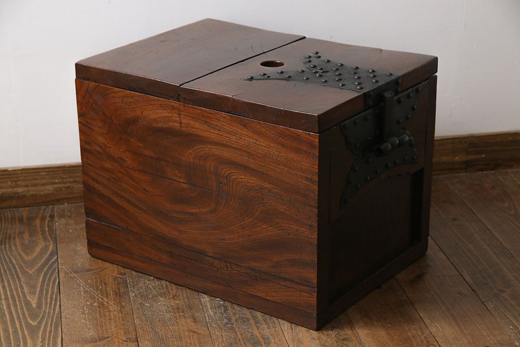 アンティーク雑貨 古民具・骨董 総ケヤキ材 大振り 厚めの材と杢目が魅力的な銭箱(銭函)