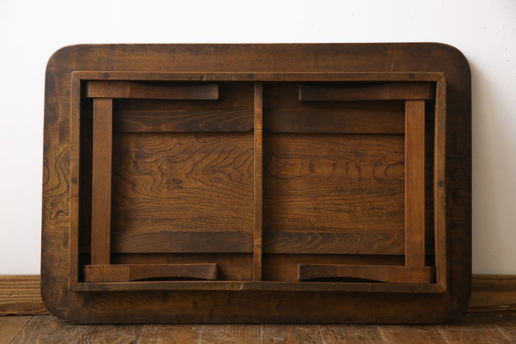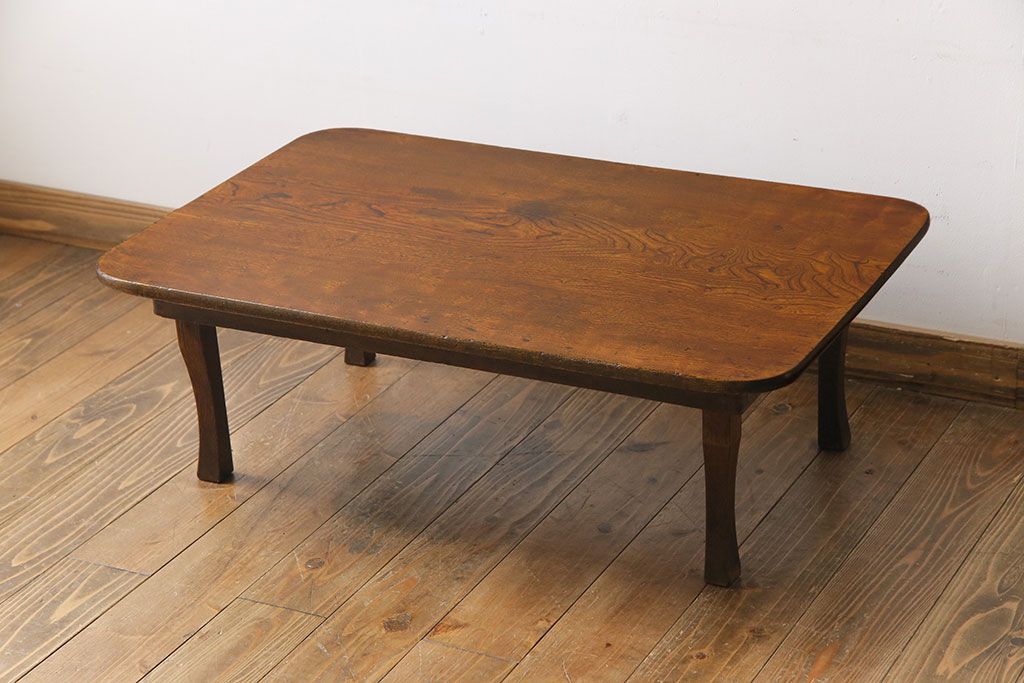 レトロ家具 昭和レトロ 栓材一枚板 懐かしさ漂う味わい深い風合いのちゃぶ台(座卓、折りたたみ机、ローテーブル)
