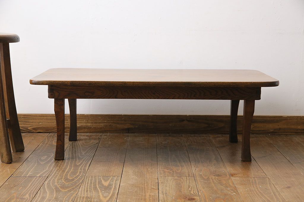 テーブル> 座卓 > レトロ家具 昭和レトロ 栓材一枚板 懐かしさ漂う味わい深い風合いのちゃぶ台(座卓、折りたたみ机、ローテーブル)