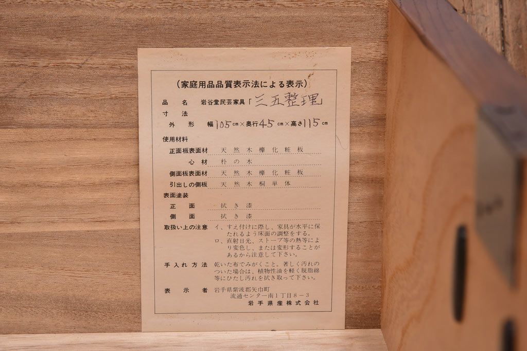 ラフジュ工房> 和箪笥 > 中古 岩谷堂箪笥 迫力のある木目が魅力の整理箪笥(和タンス、衣装箪笥、チェスト)