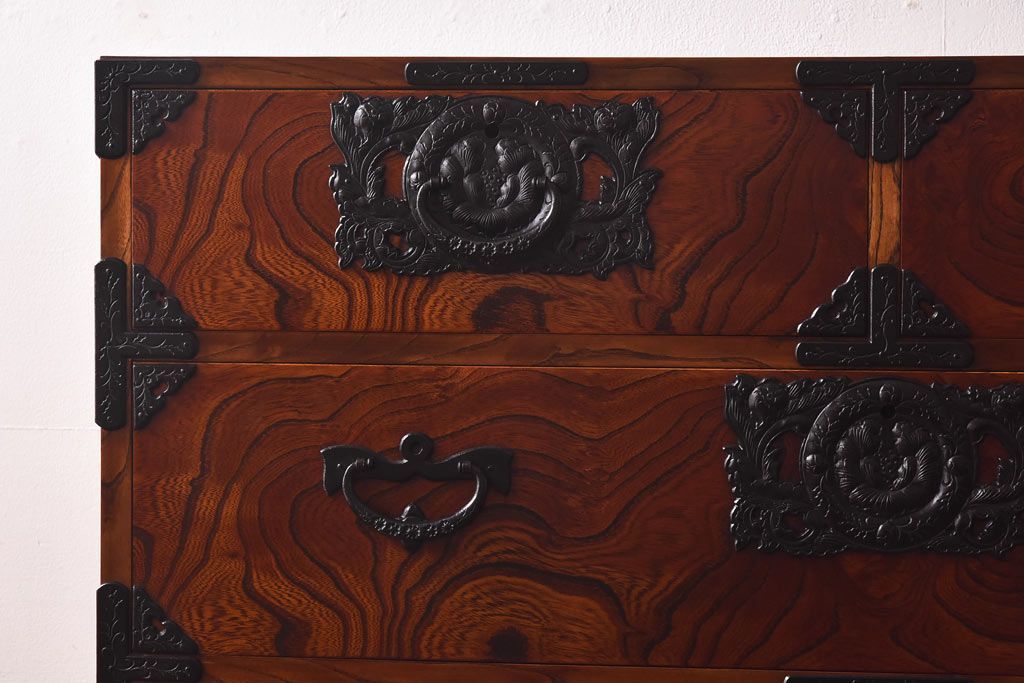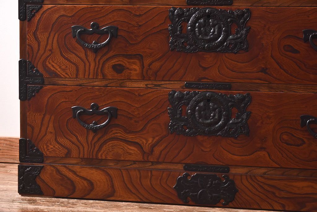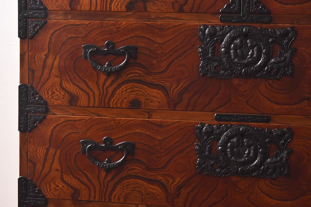 中古 岩谷堂箪笥 迫力のある木目が魅力の整理箪笥(和タンス、衣装箪笥、チェスト)