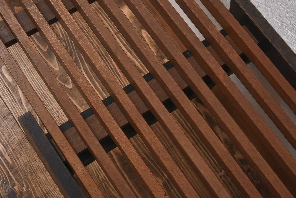 縁台を思わせるラダー型の木製座面と、