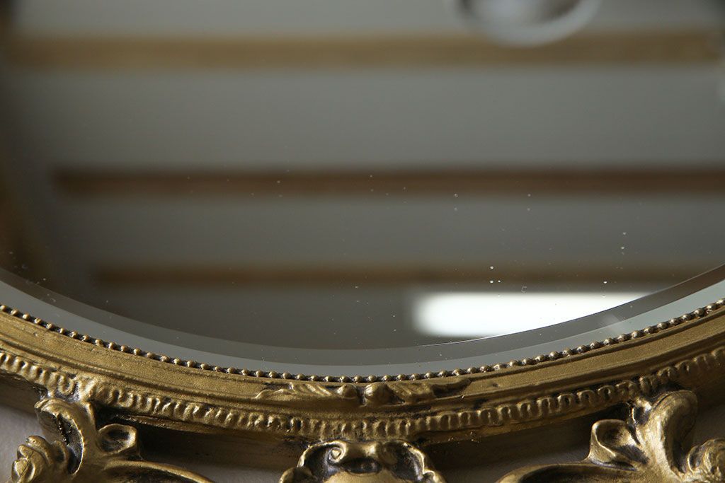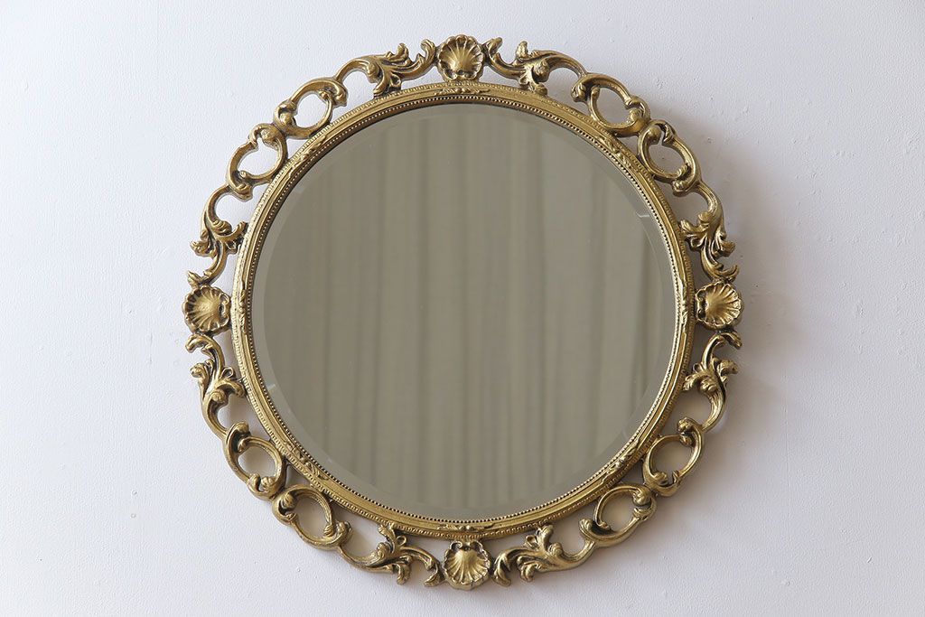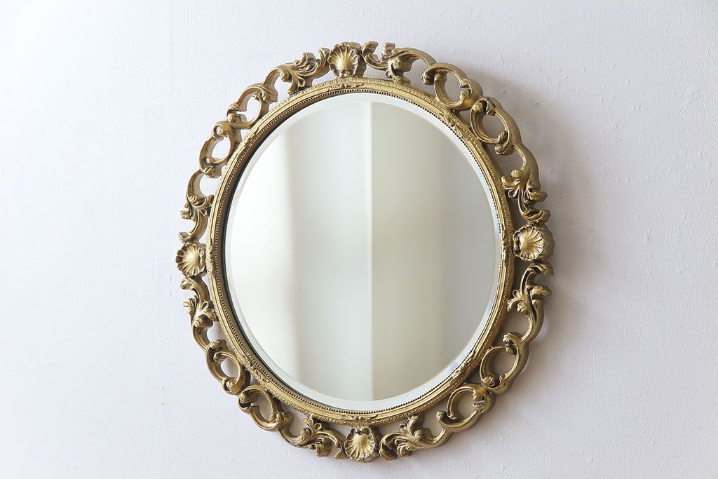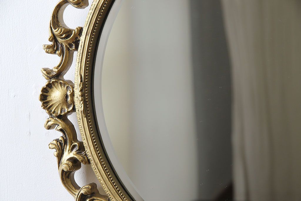 アンティーク雑貨 イギリスビンテージ 気品漂うデザインの丸型ウォールミラー(鏡)