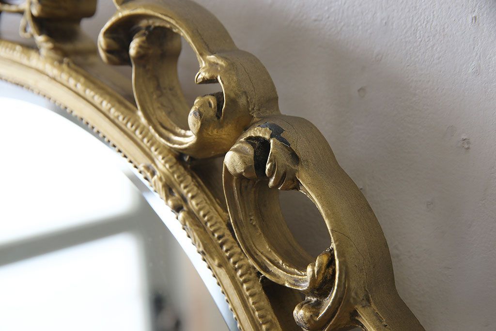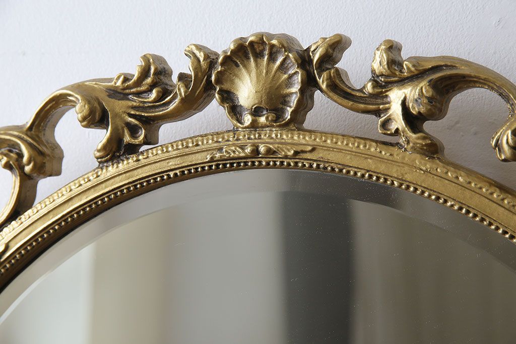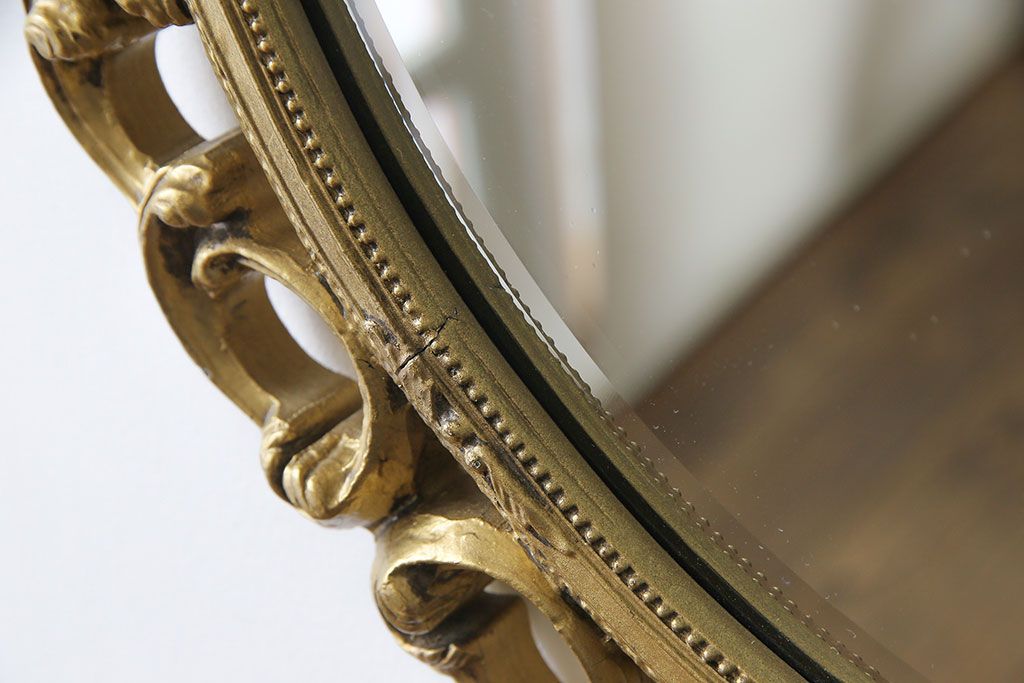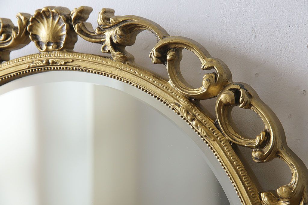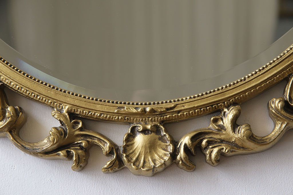 アンティーク雑貨 イギリスビンテージ 気品漂うデザインの丸型ウォールミラー(鏡)