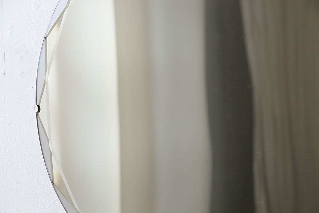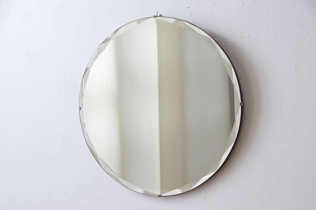 アンティーク雑貨 イギリスビンテージ シンプルで上品なカットのウォールミラー(鏡)