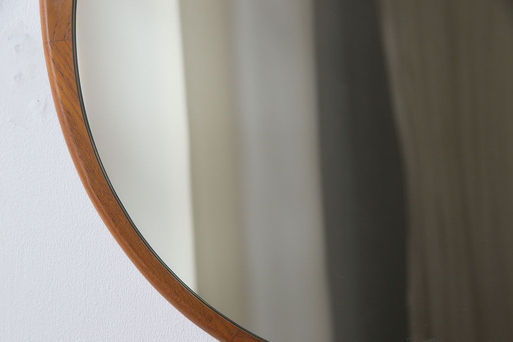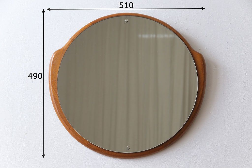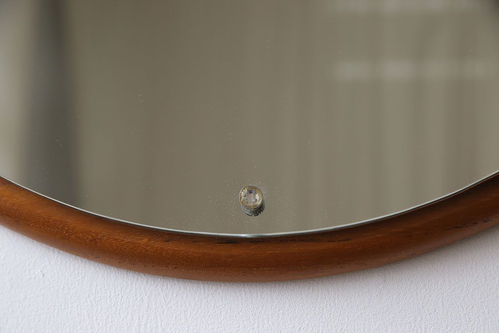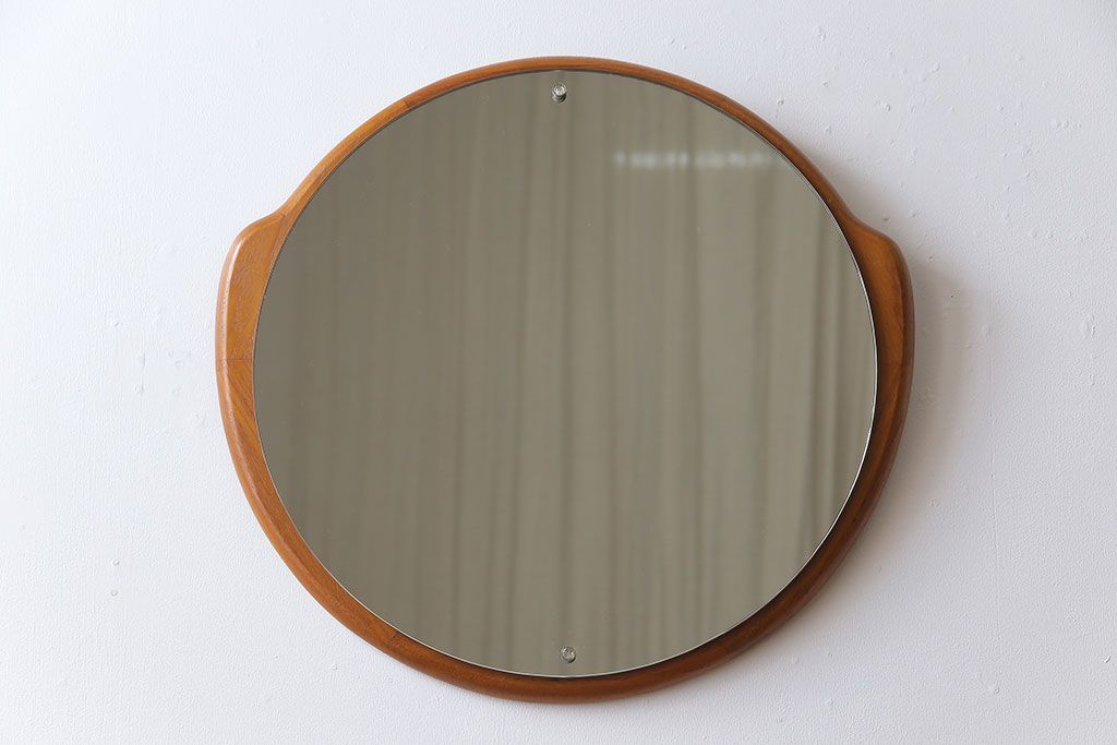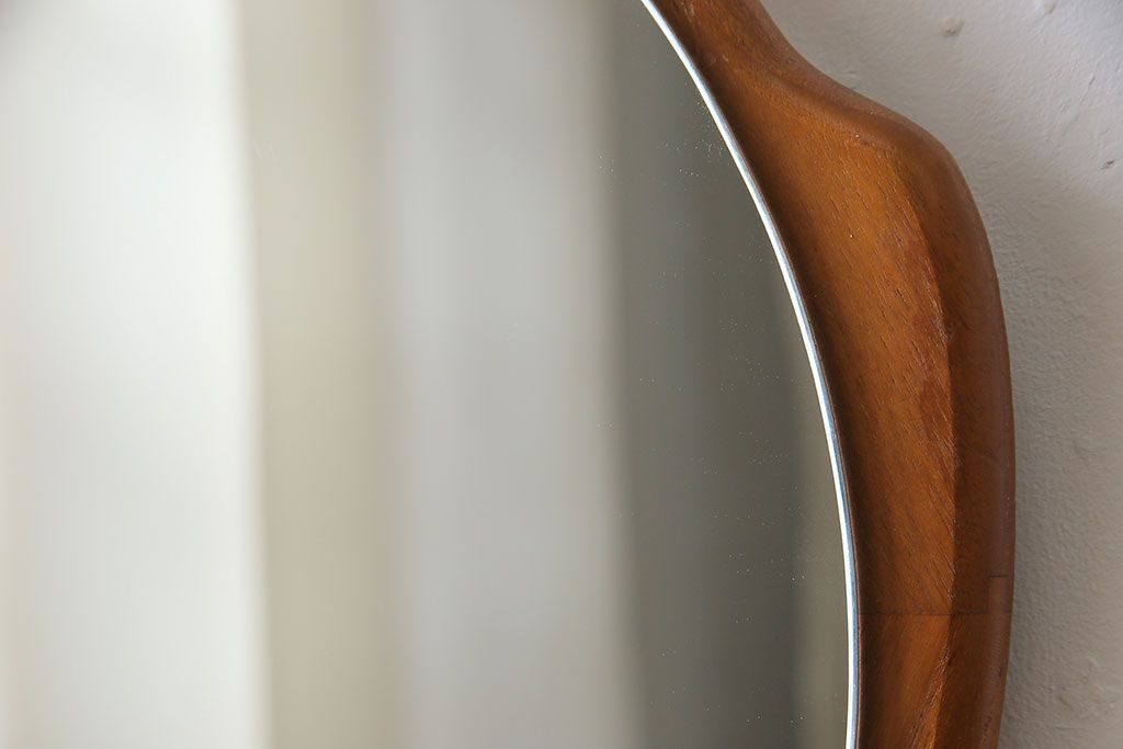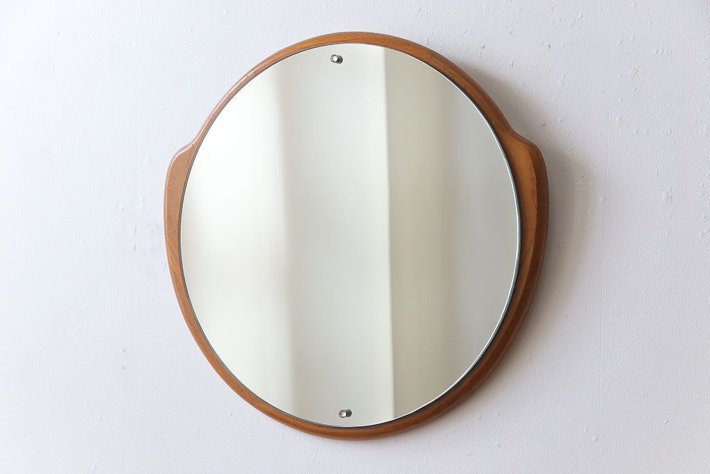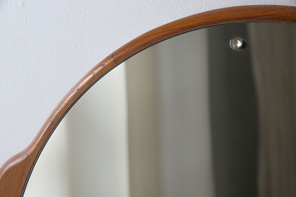 アンティーク雑貨 北欧ビンテージ 木枠の形が愛らしいウォールミラー(鏡)