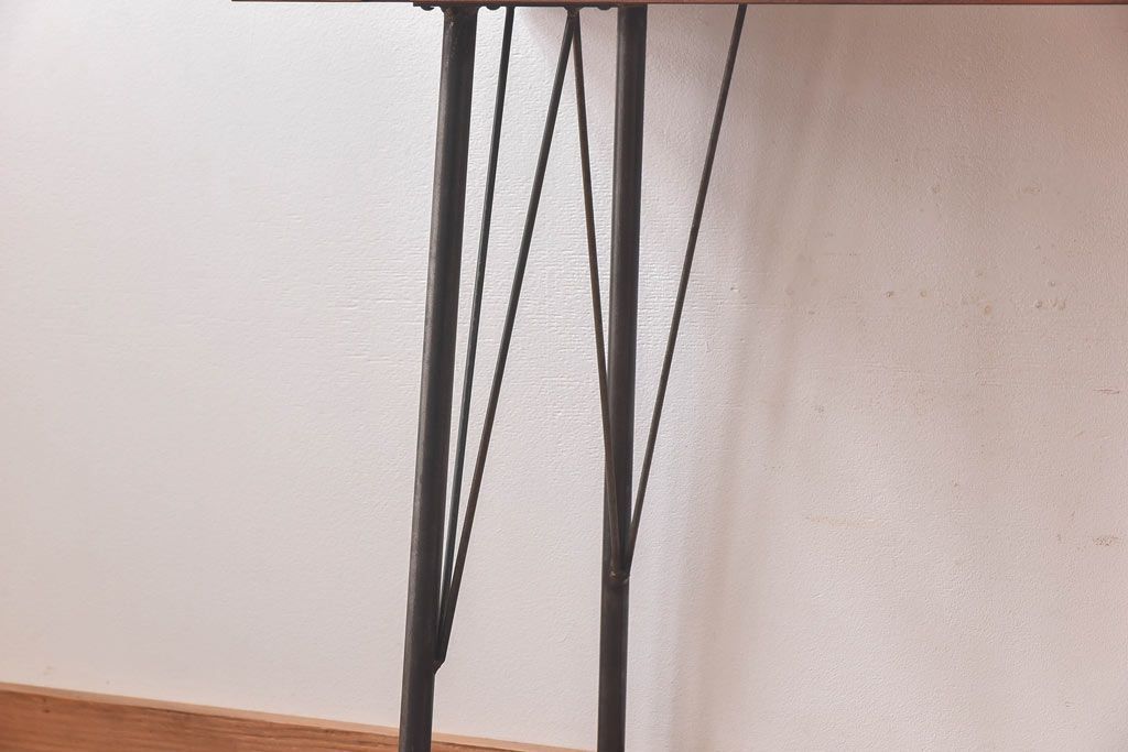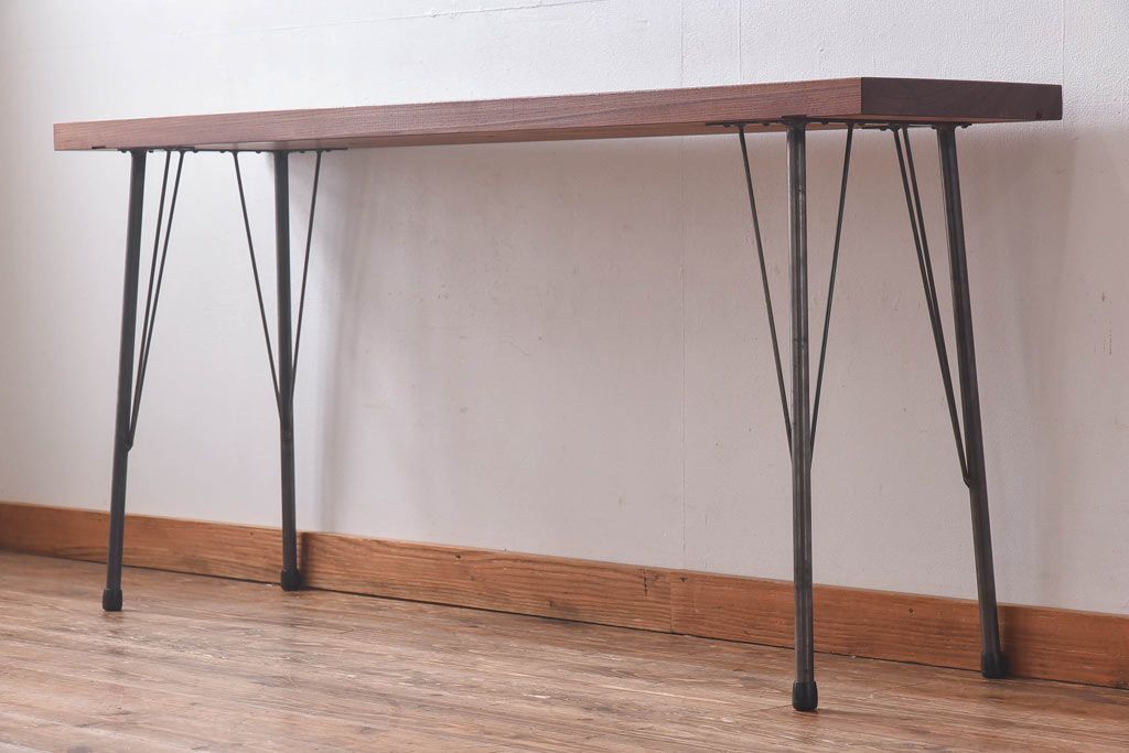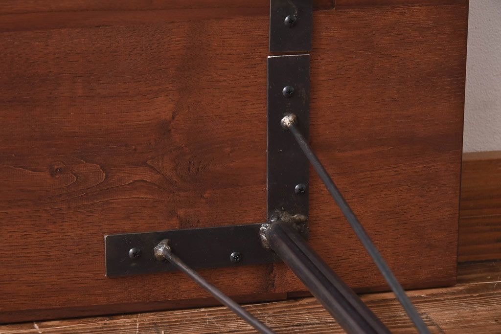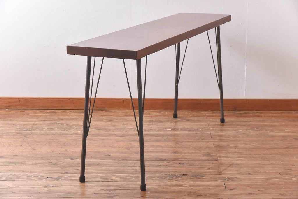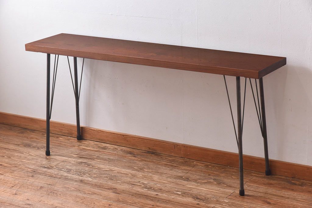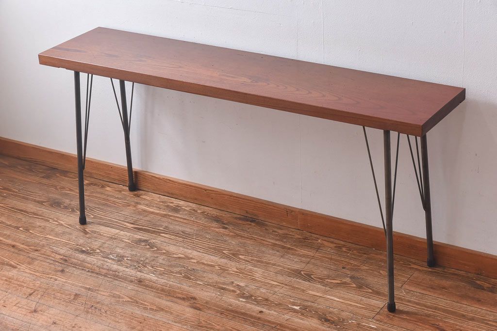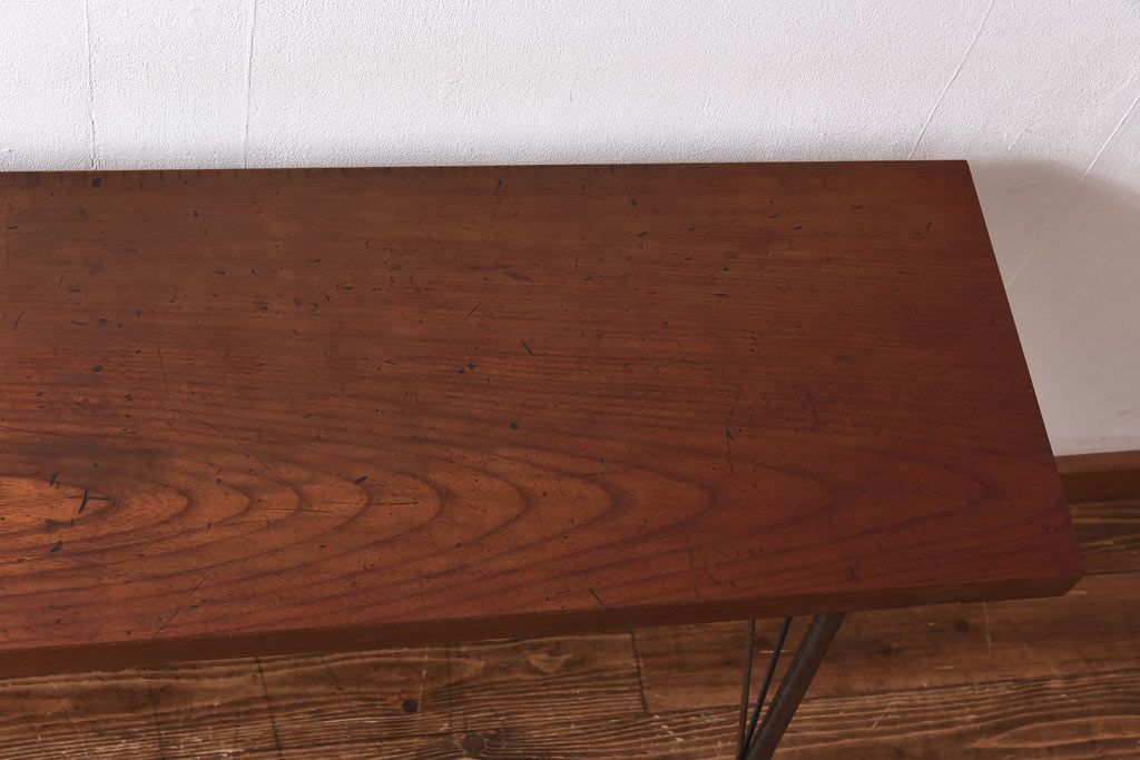 ラフジュ工房> テーブル> コンソールテーブル > リメイク ケヤキ材一枚板 厚みのある古材を使用した鉄脚サイドテーブル(作業台、飾り台、カフェテーブル)