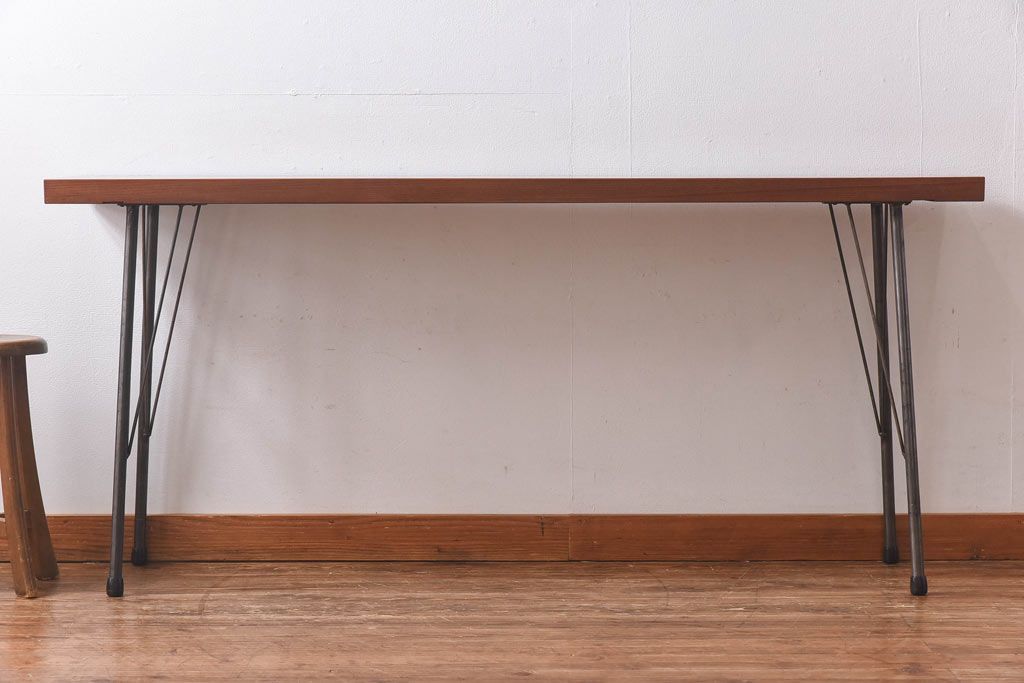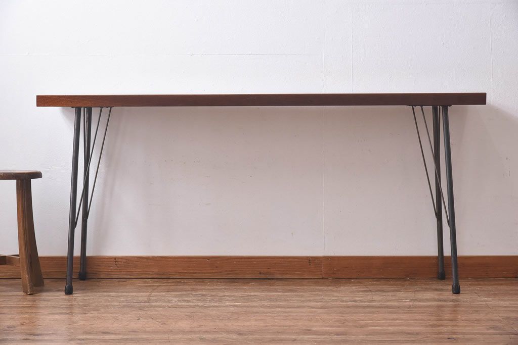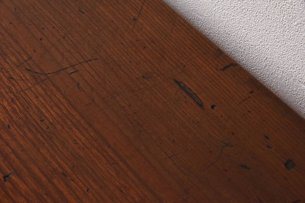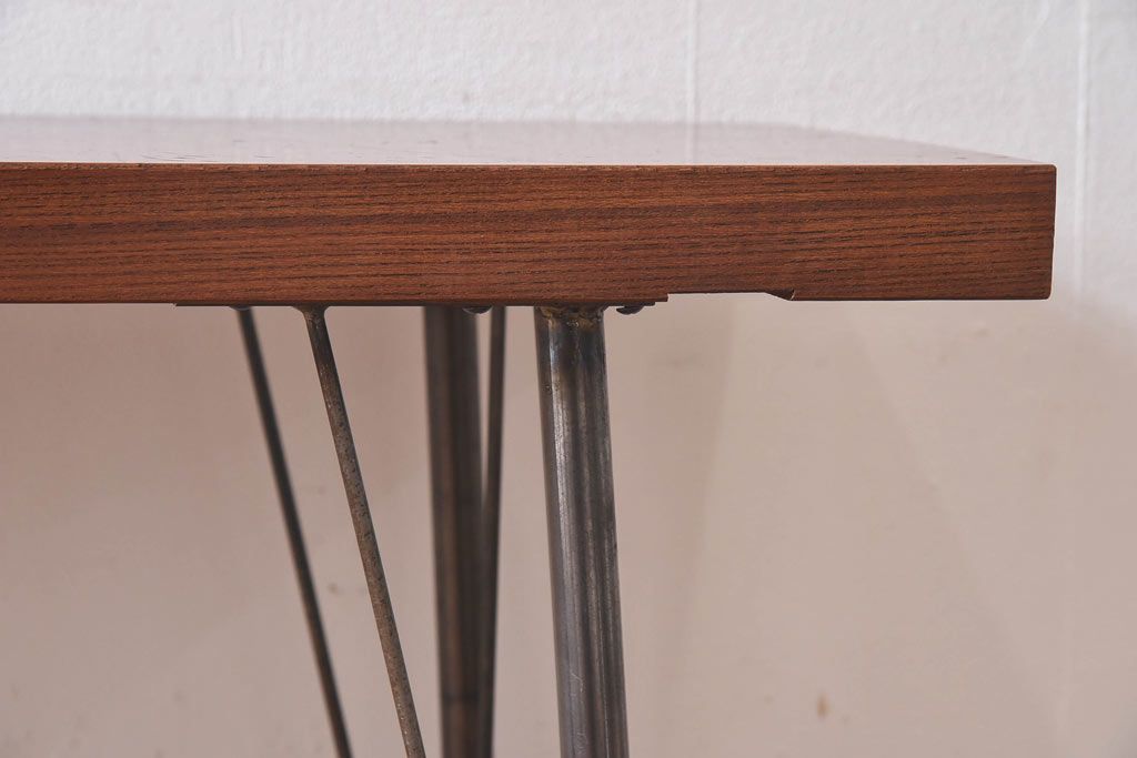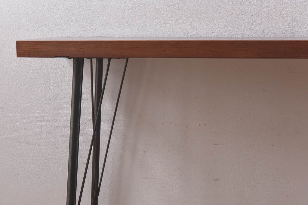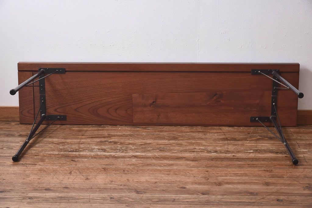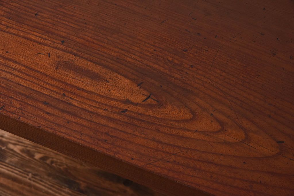 ラフジュ工房> テーブル> コンソールテーブル > リメイク ケヤキ材一枚板 厚みのある古材を使用した鉄脚サイドテーブル(作業台、飾り台、カフェテーブル)