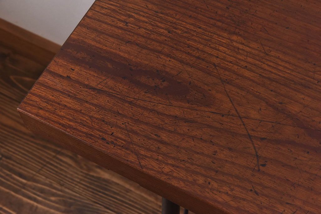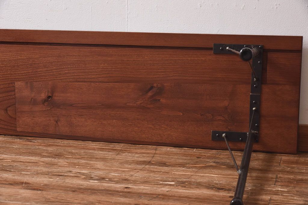 リメイク ケヤキ材一枚板 厚みのある古材を使用した鉄脚サイドテーブル(作業台、飾り台、カフェテーブル)