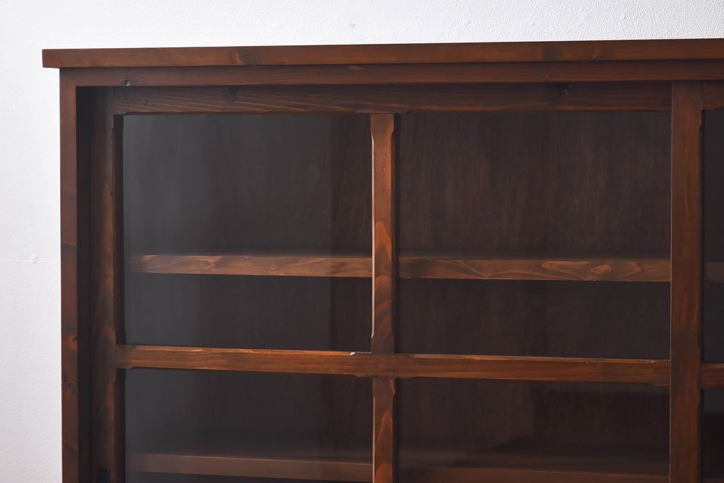 ラフジュ工房オリジナル 古い建具を活かしたガラス戸棚(食器棚、収納棚、陳列棚、キッチンボード)