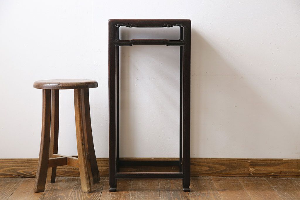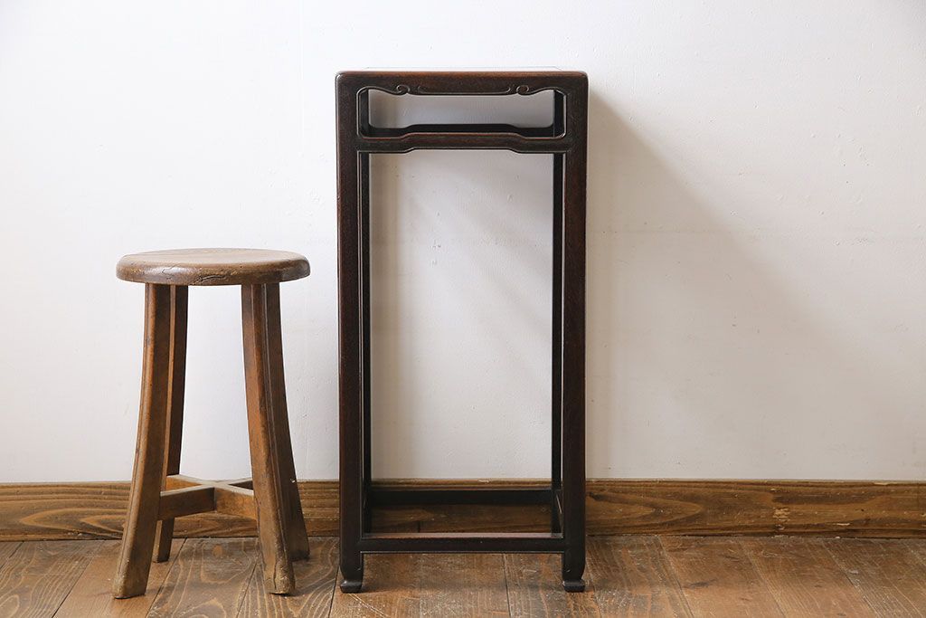 民芸家具 > アンティーク雑貨 上手物 紫檀材 赤みがかった色合いが味わい深い高卓花台(香炉台、飾り台、サイドテーブル)