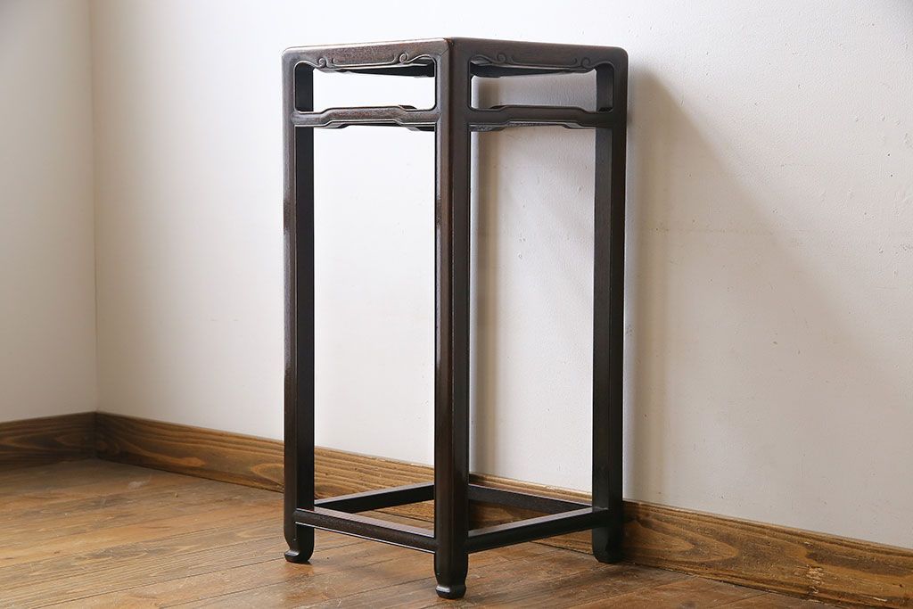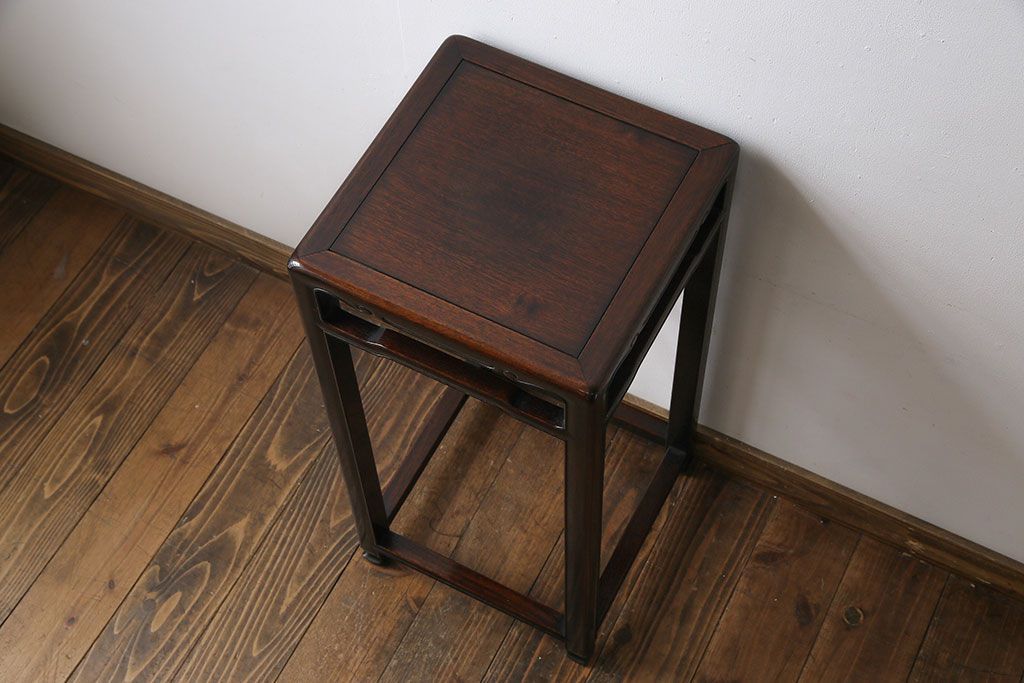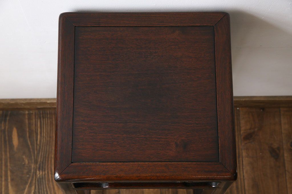 テーブル> サイドテーブル > アンティーク雑貨 上手物 紫檀材 赤みがかった色合いが味わい深い高卓花台(香炉台、飾り台、サイドテーブル)