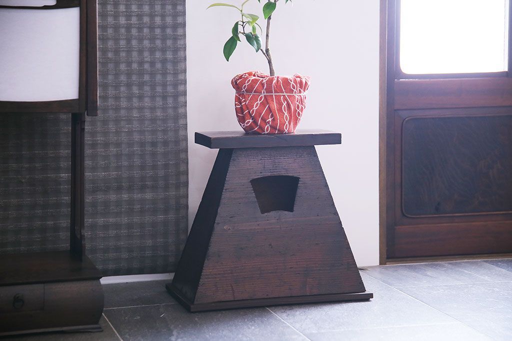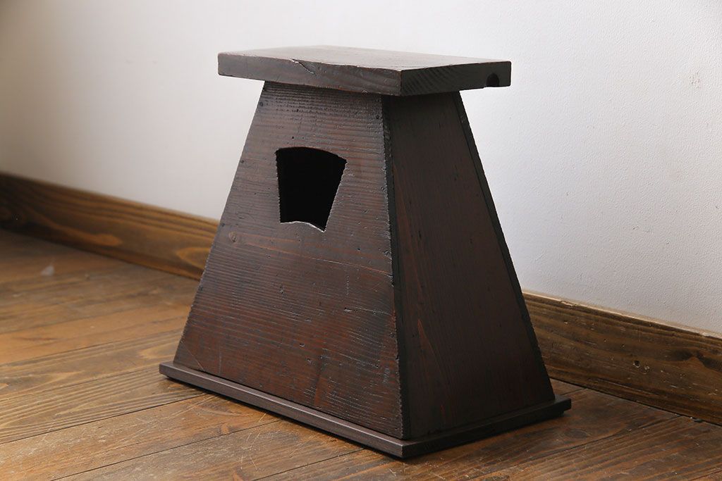 アンティーク雑貨 和製アンティーク ヒノキ材 古い木が味わい深いシンプルな踏み台(花台)