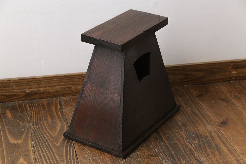 和製アンティーク ヒノキ材 古い木が味わい深いシンプルな踏み台(花台)です。