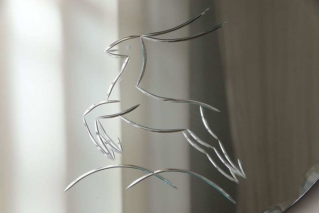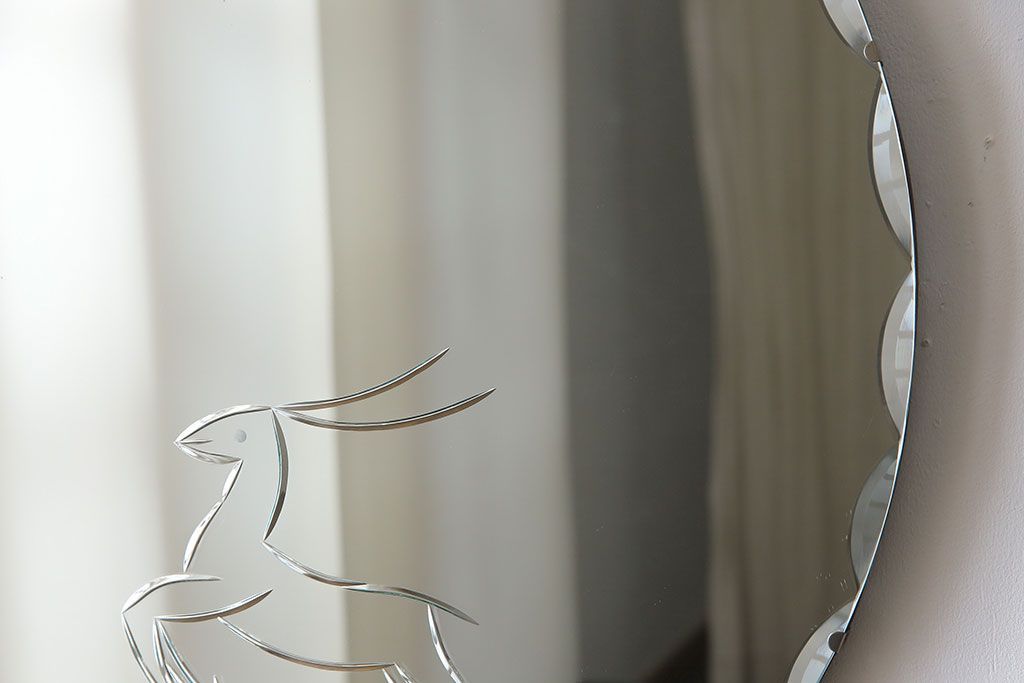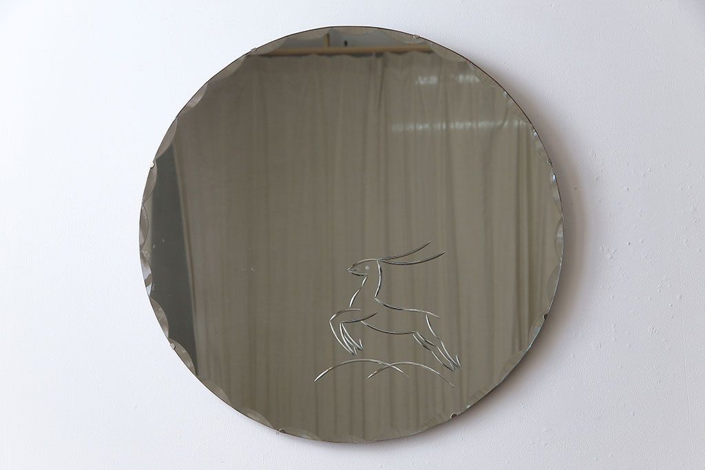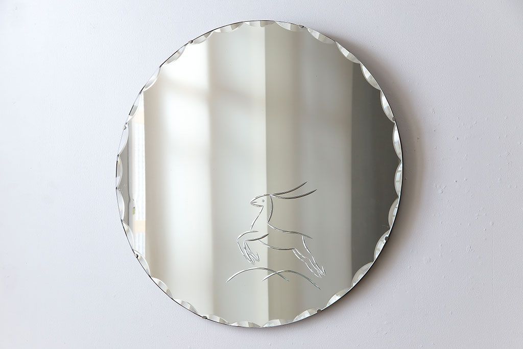 アンティーク雑貨 海外ビンテージ 動物モチーフのカットが愛らしいウォールミラー(鏡)