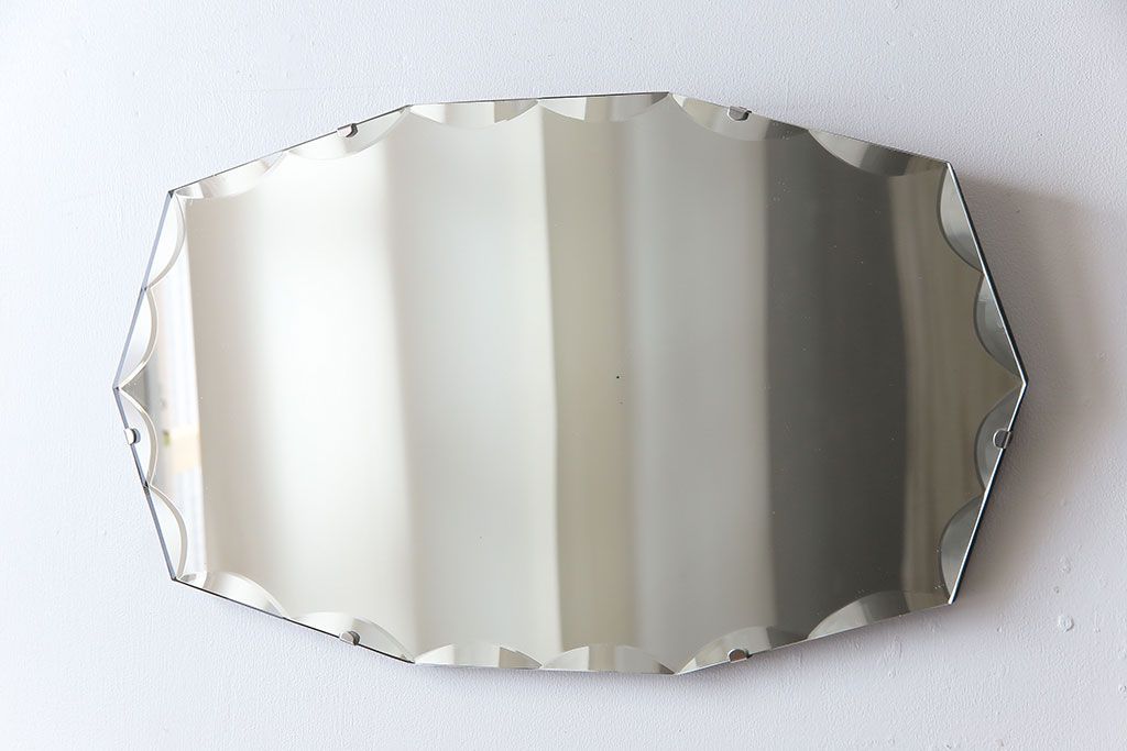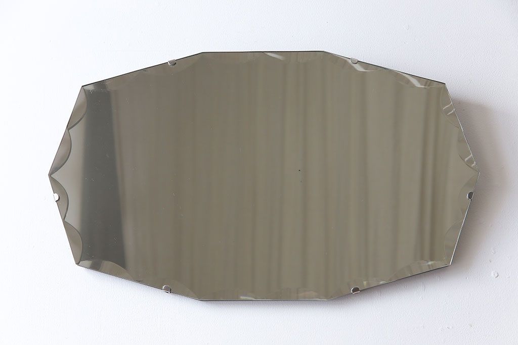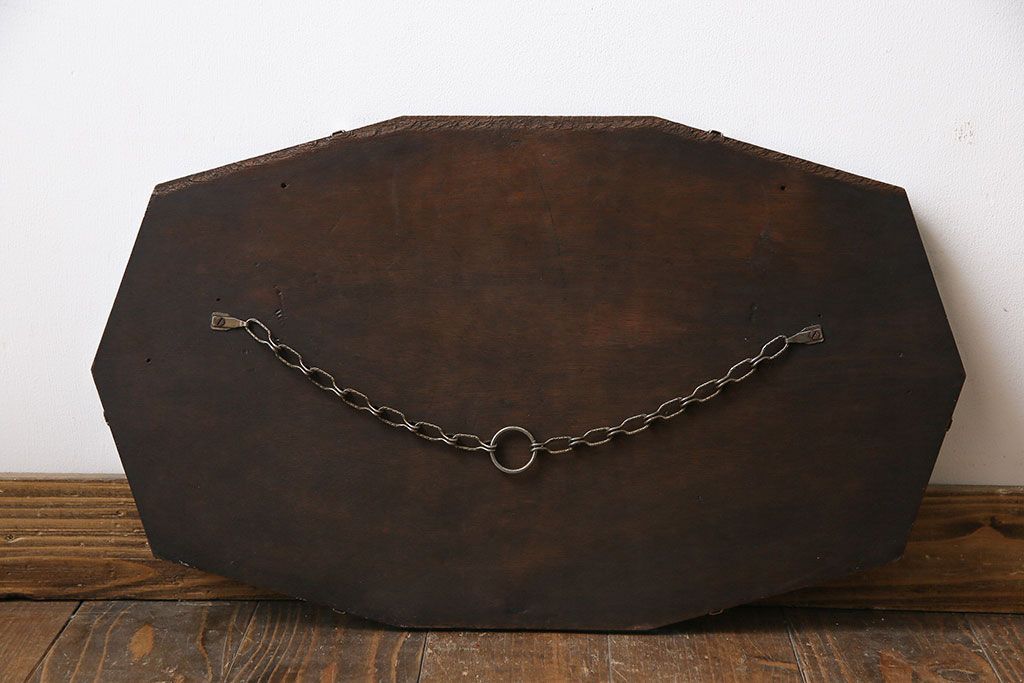 アンティーク雑貨 イギリスビンテージ 十角形のシルエットがシックなウォールミラー(鏡)