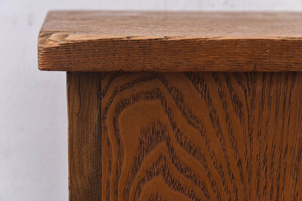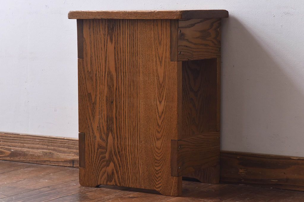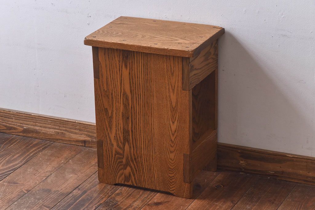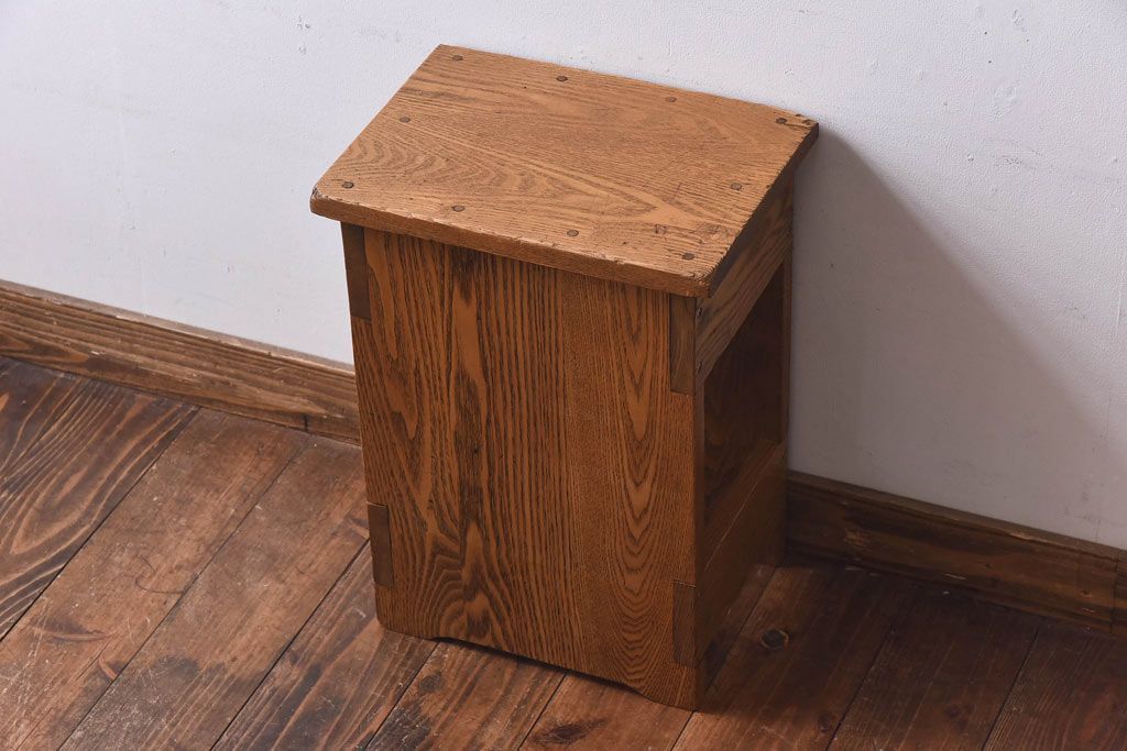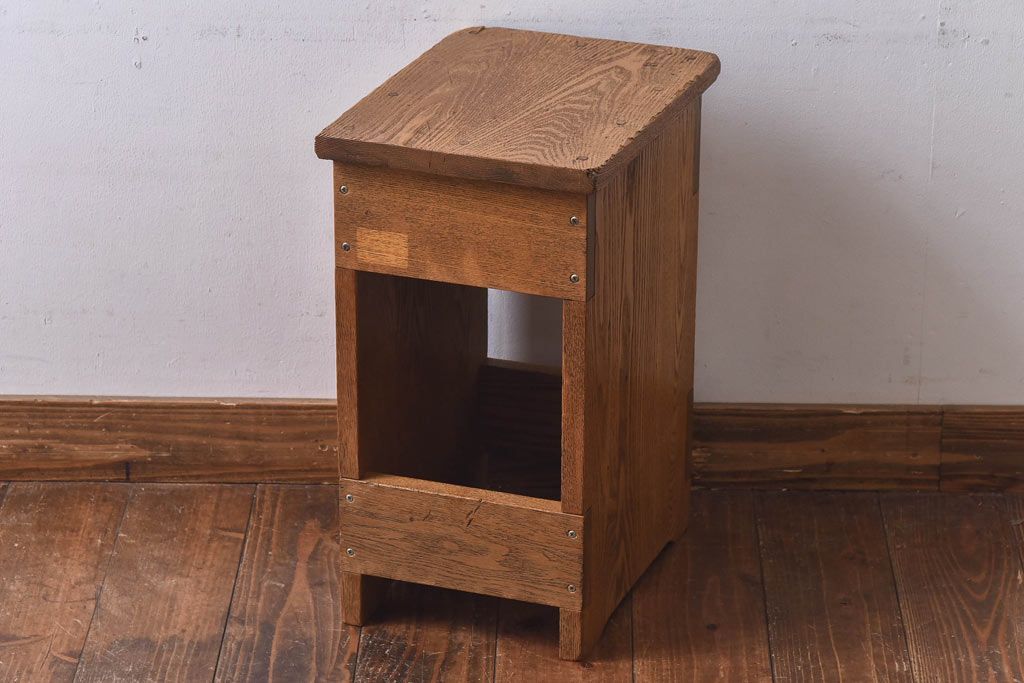 中古 ニレ材 ノスタルジックな佇まいの学校スツール(花台、ディスプレー台)(1)