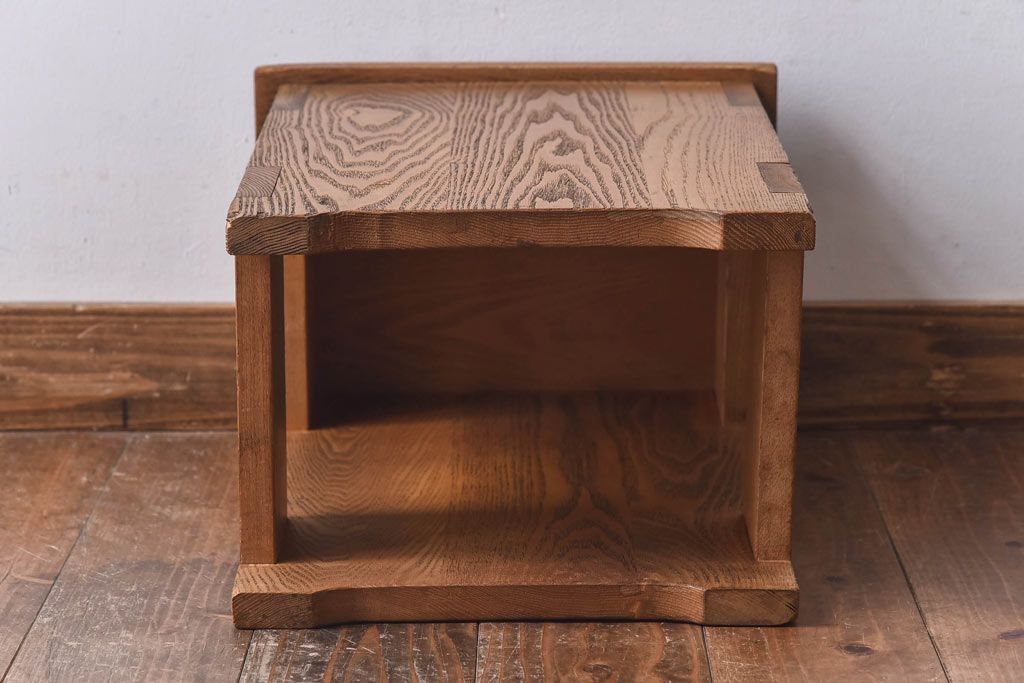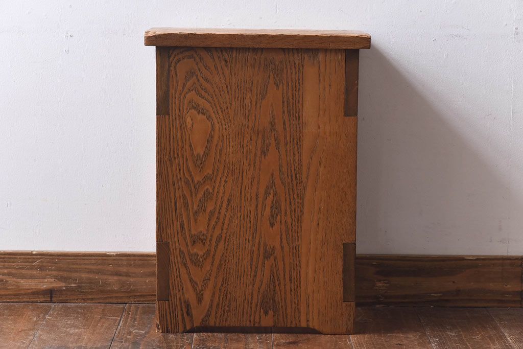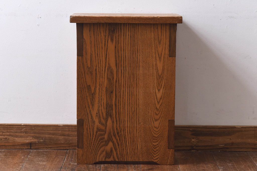 中古 ニレ材 ノスタルジックな佇まいの学校スツール(花台、ディスプレー台)(1)です。