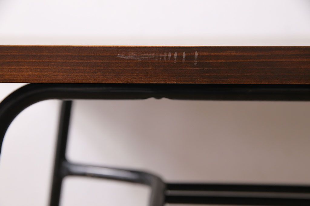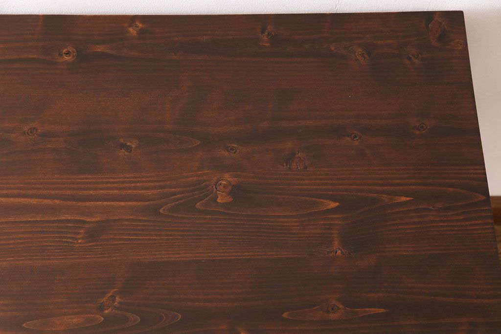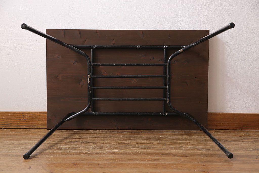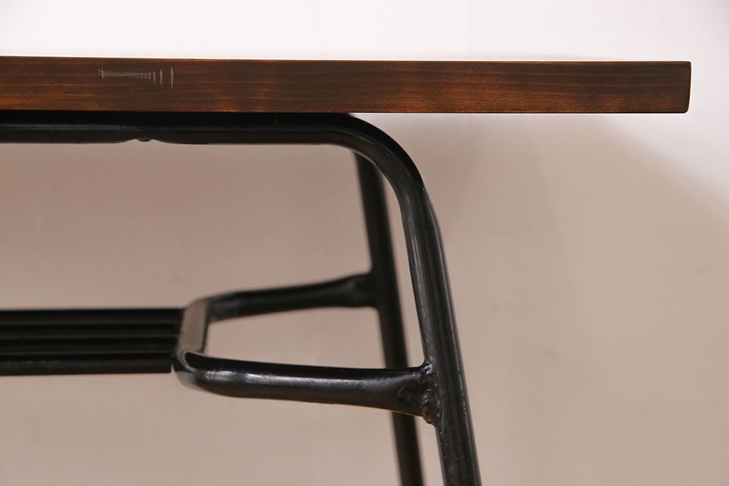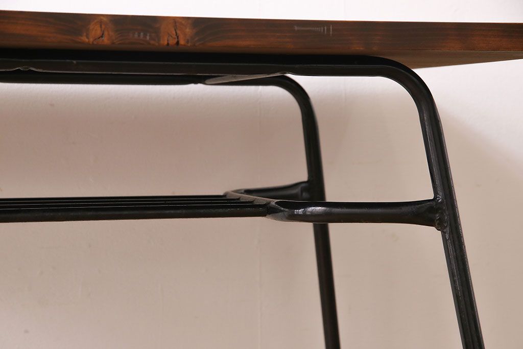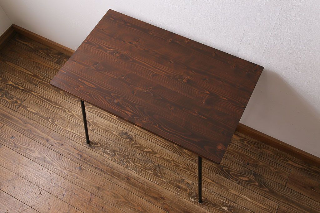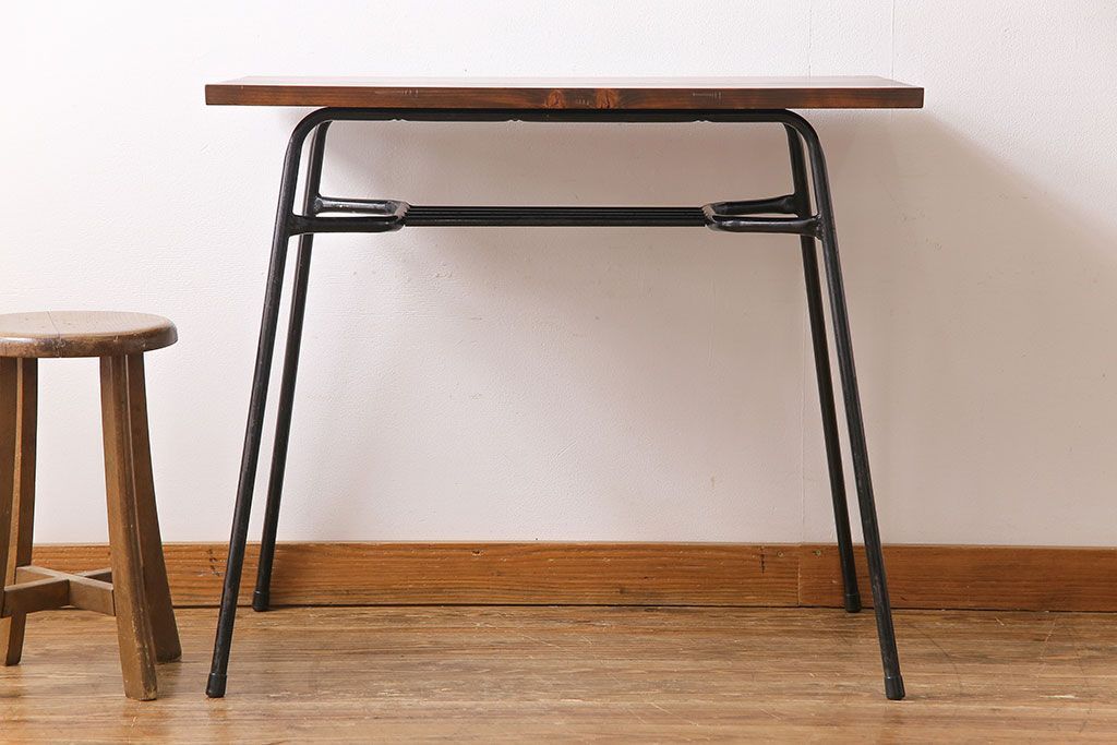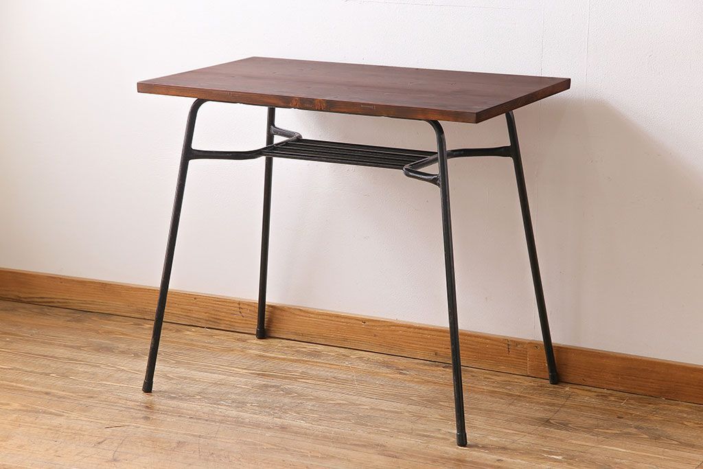 ラフジュ工房> テーブル> 鉄脚テーブル > リメイク ヒノキ無垢材 古い鉄脚を合わせた小振りのテーブル(サイドテーブル、作業台、カフェテーブル)