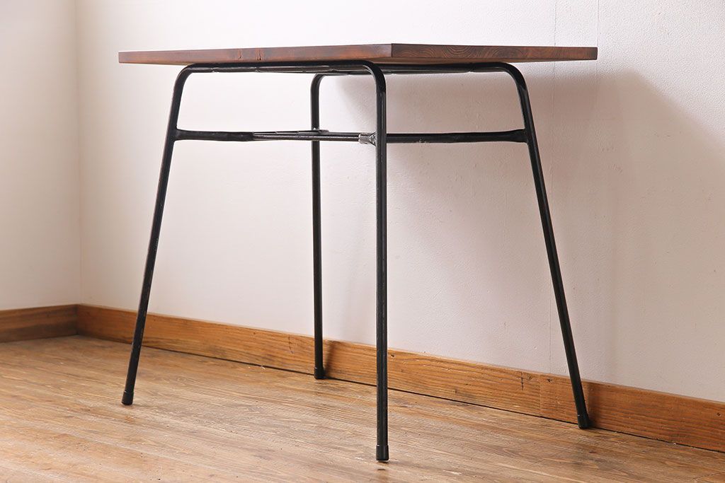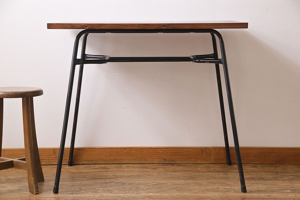 リメイク ヒノキ無垢材 古い鉄脚を合わせた小振りのテーブル(サイドテーブル、作業台、カフェテーブル)