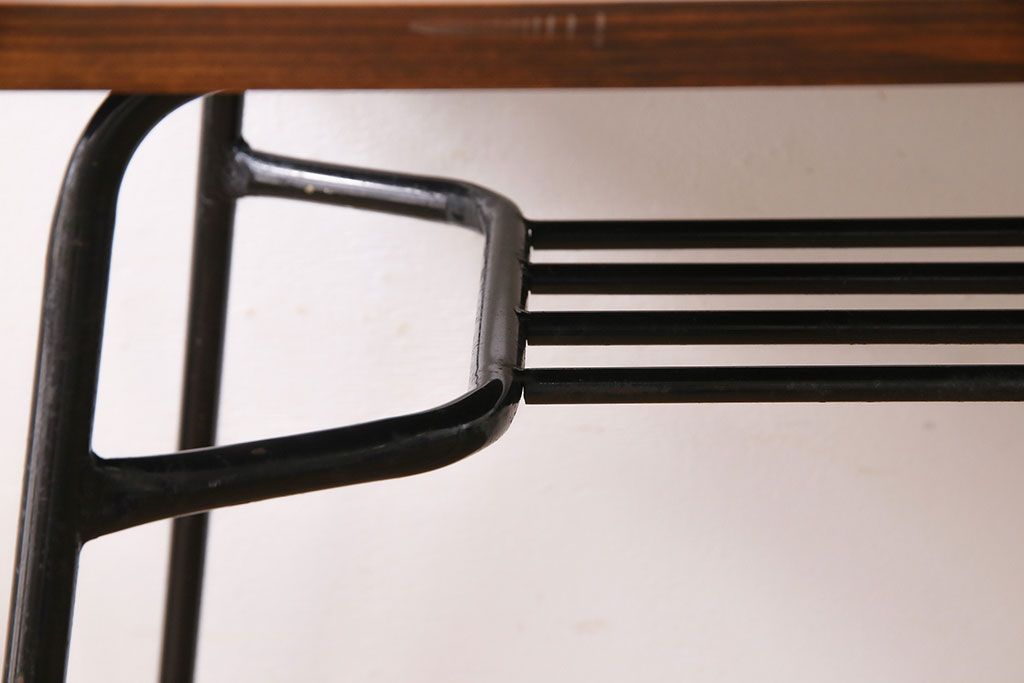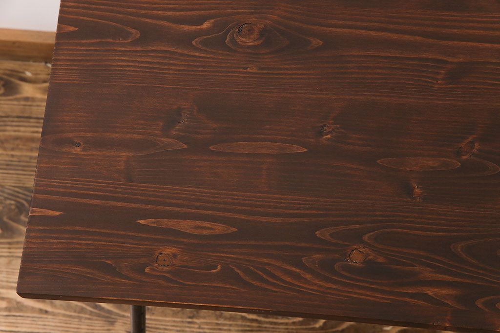 ラフジュ工房> テーブル> サイドテーブル > リメイク ヒノキ無垢材 古い鉄脚を合わせた小振りのテーブル(サイドテーブル、作業台、カフェテーブル)