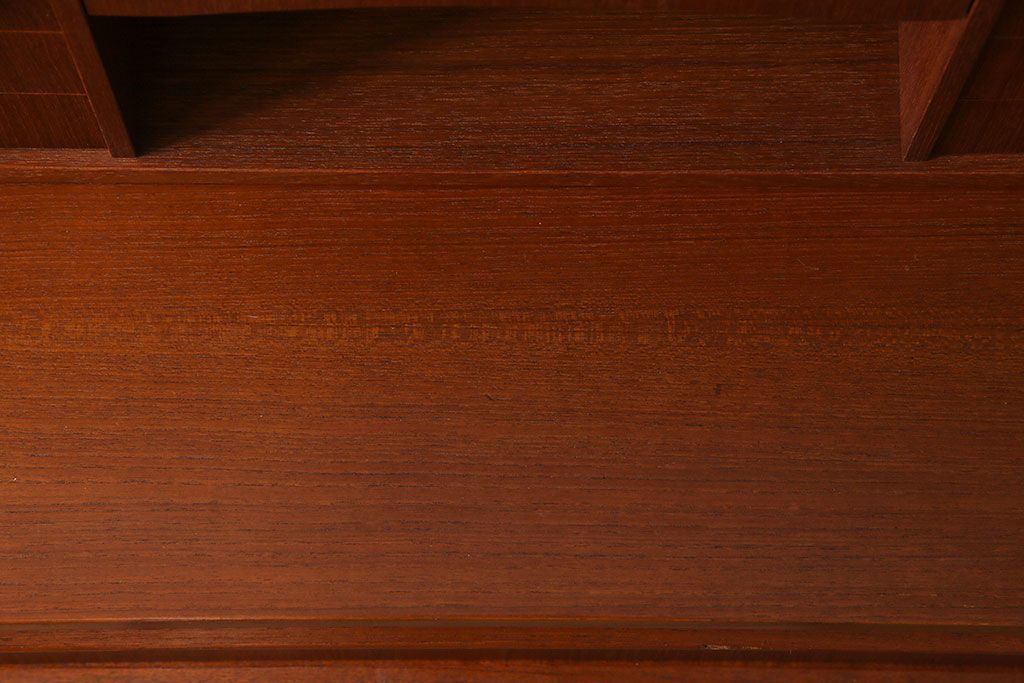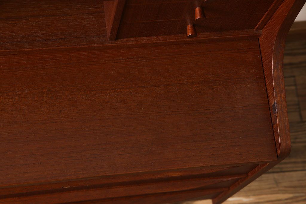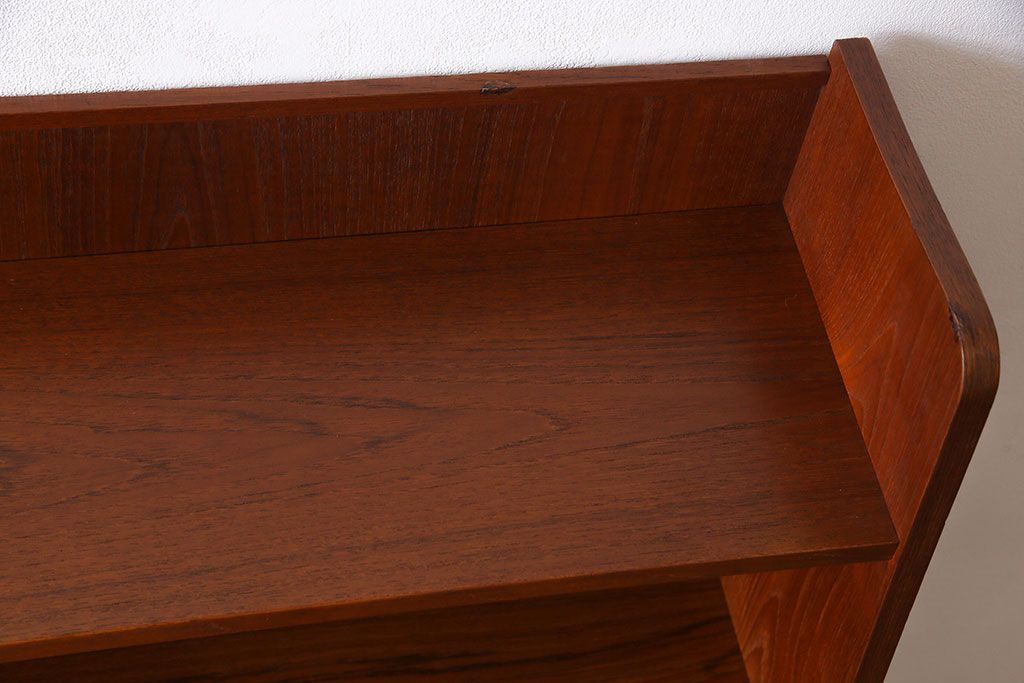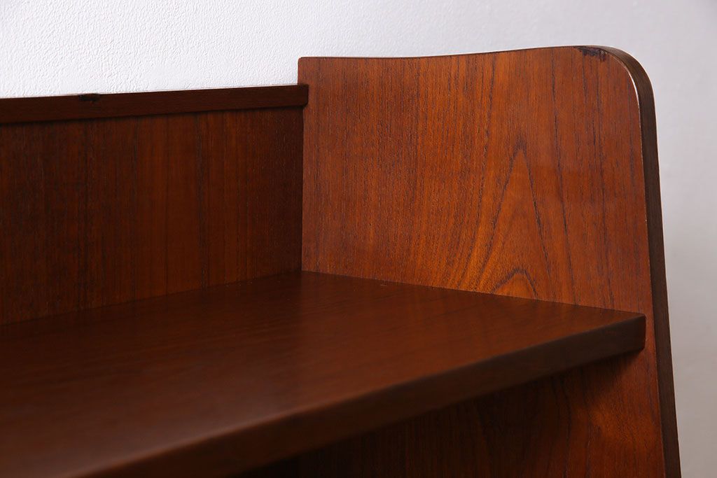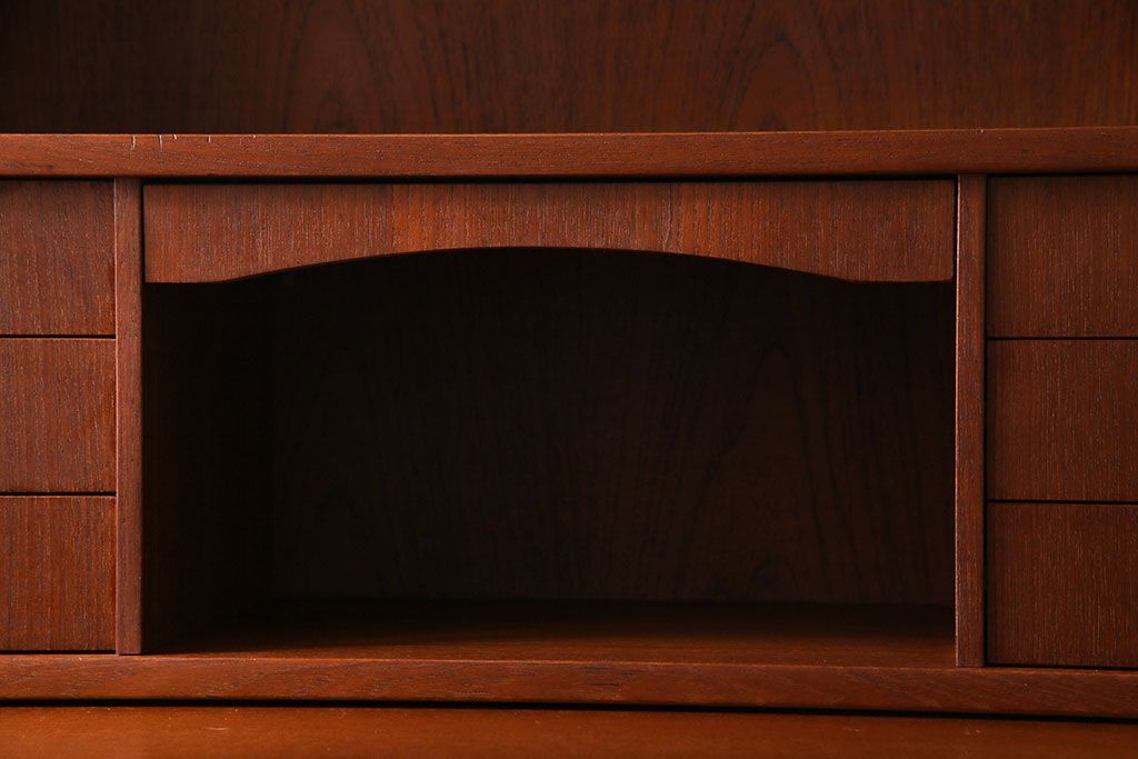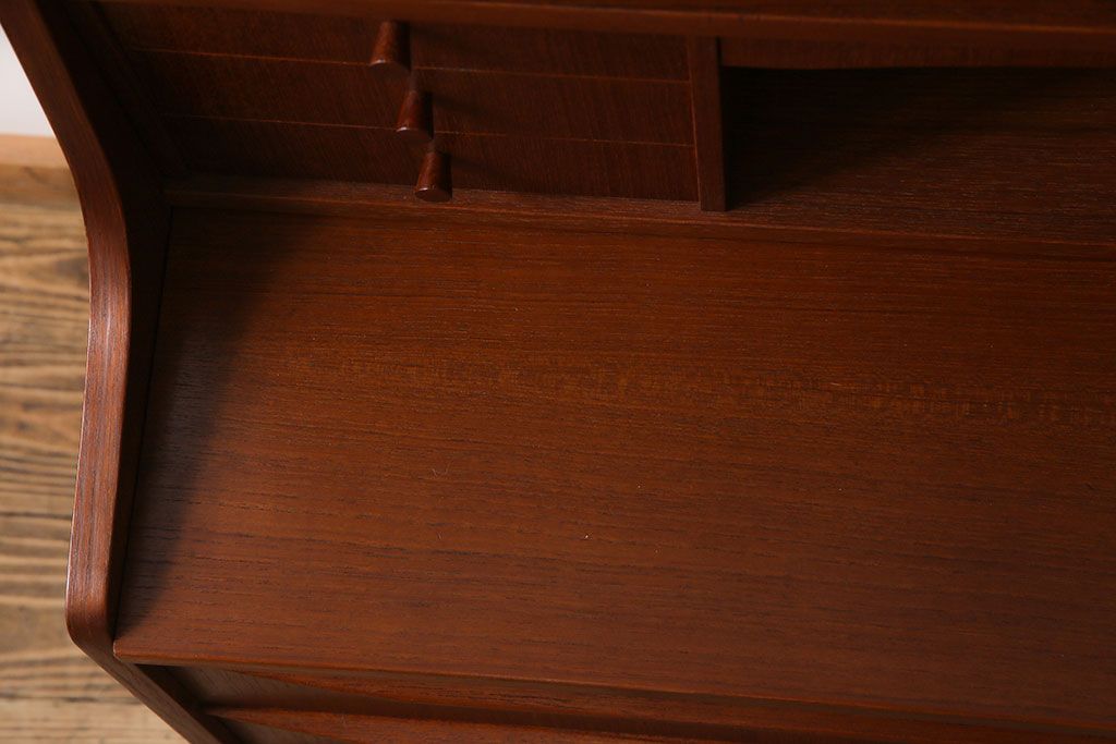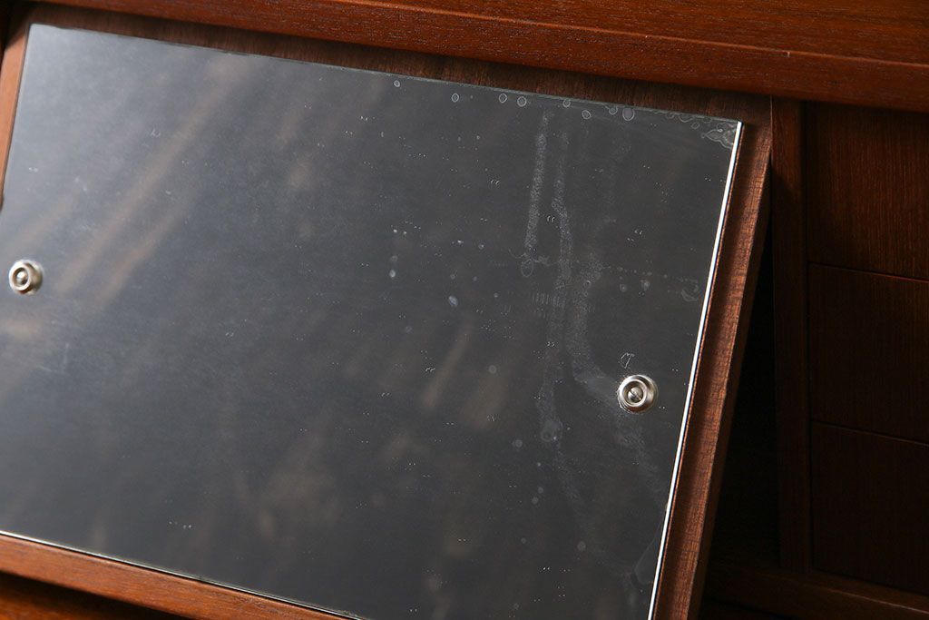 ヴィンテージ家具 北欧ビンテージ デンマーク チーク材 おしゃれで機能的な鏡付きビューロー(デスク、在宅ワーク、在宅用ドレッサー、ドレッシングチェスト、本棚)