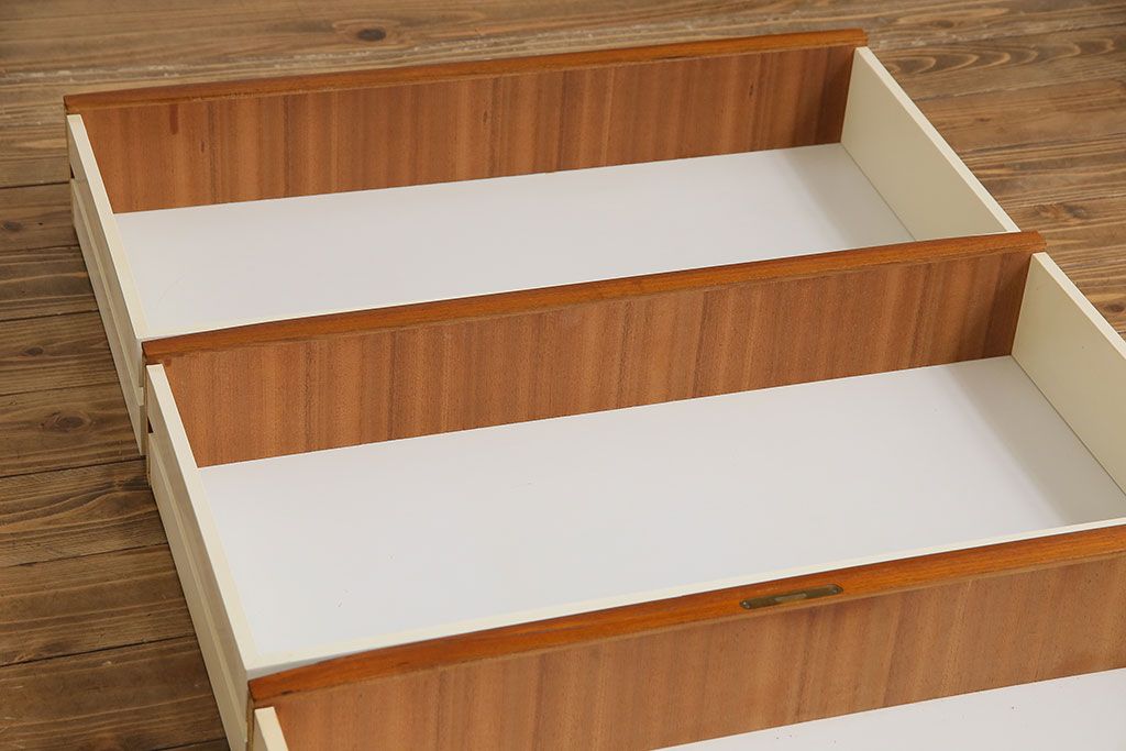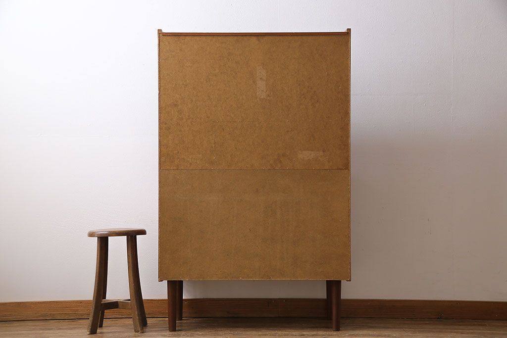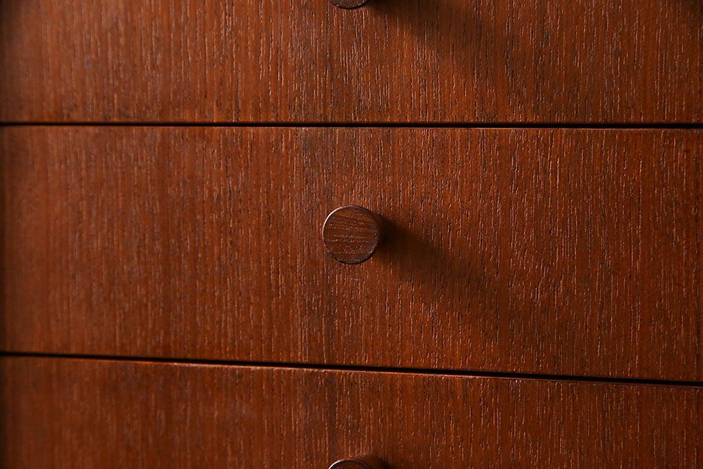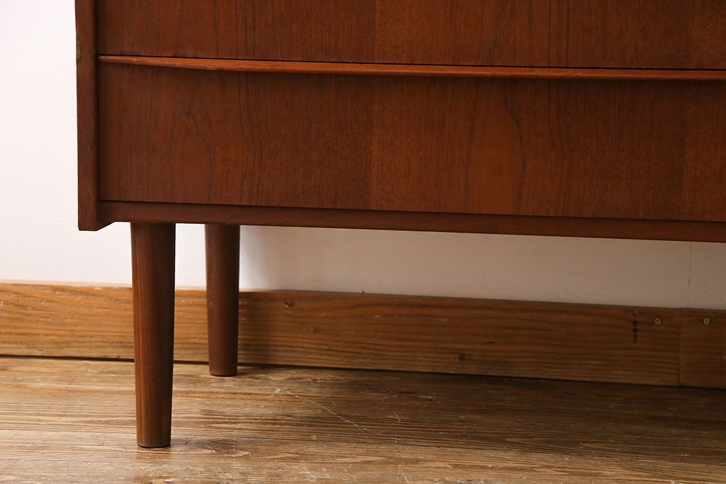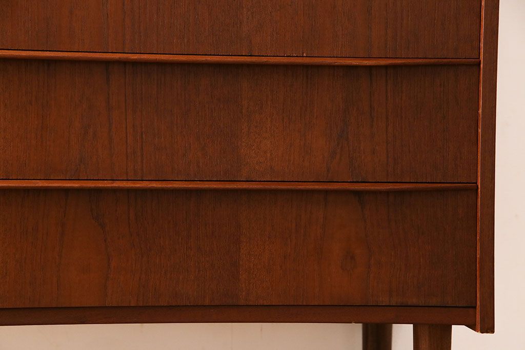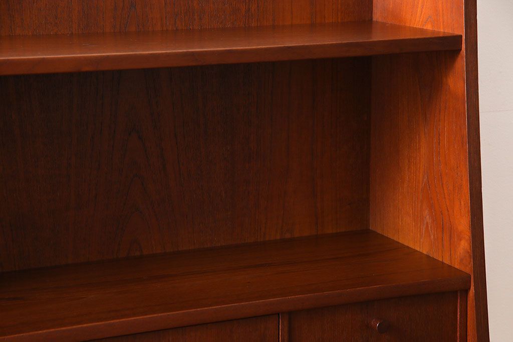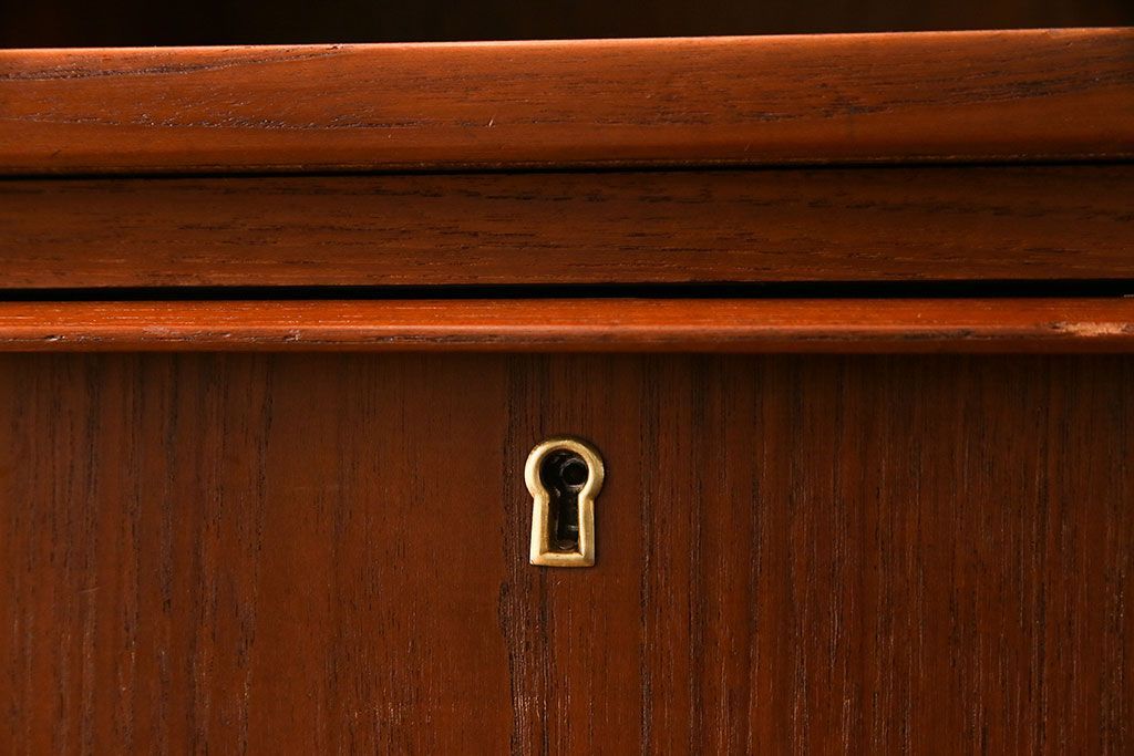 ヴィンテージ家具 北欧ビンテージ デンマーク チーク材 おしゃれで機能的な鏡付きビューロー(デスク、在宅ワーク、在宅用ドレッサー、ドレッシングチェスト、本棚)