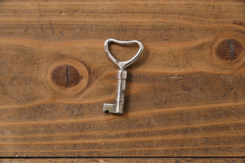 鍵は付属します。画像にありますように、袋に入れお付けします。スムーズに動くように調整していますが、あくまでも古いものや中古品ですので、長期の使用保証は出来かねます。ご購入後不具合が発生した場合は、当店でサポートさせていただきますので、お気軽にご相談くださいませ。