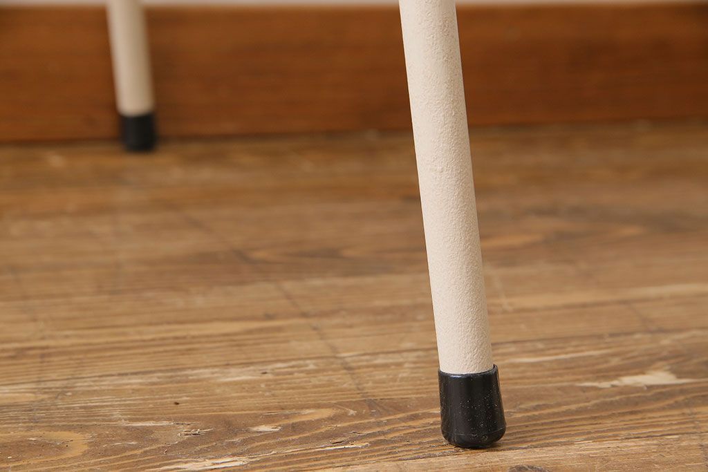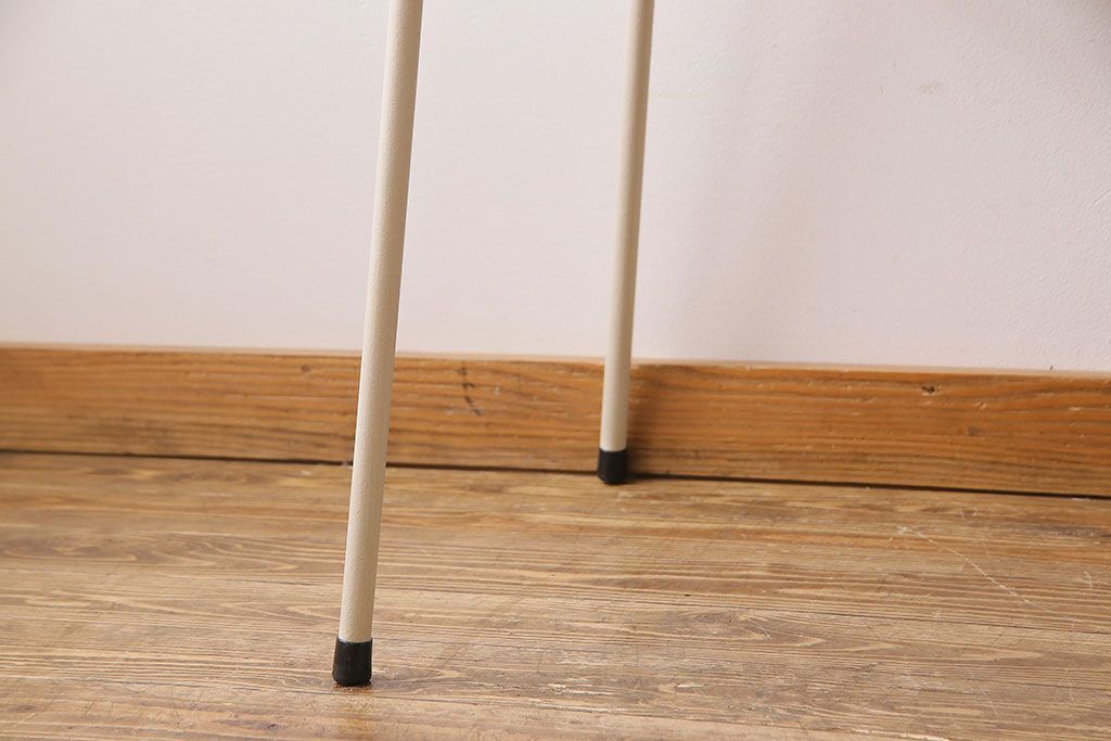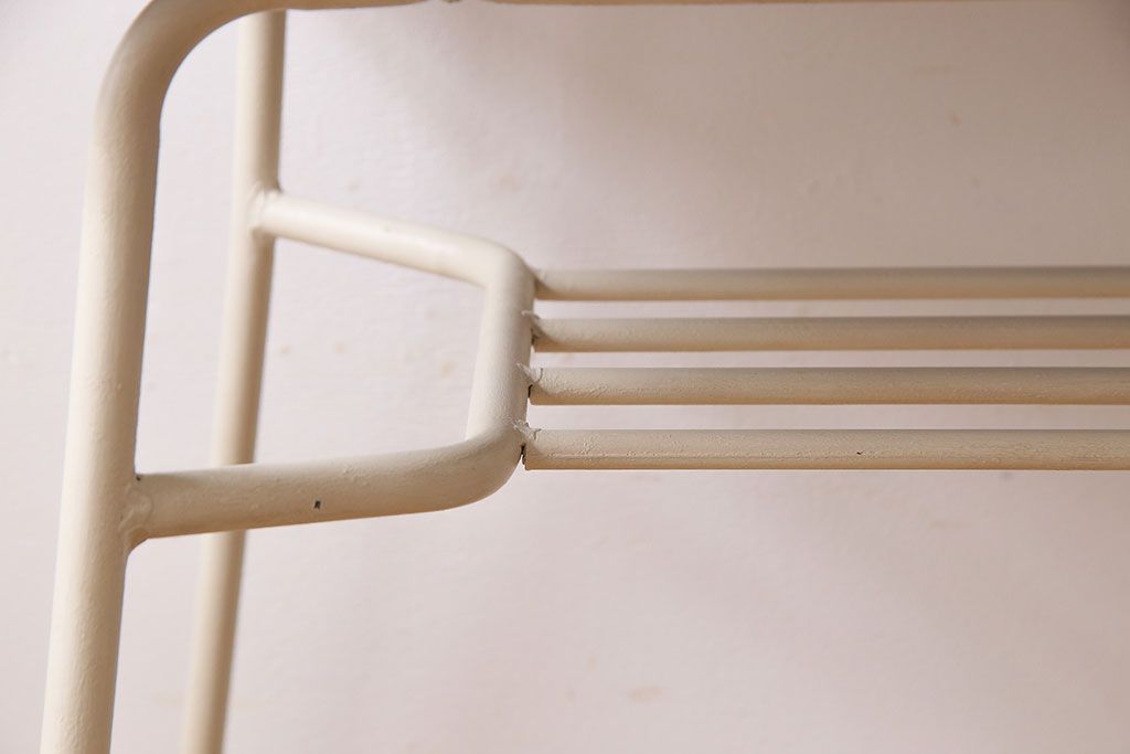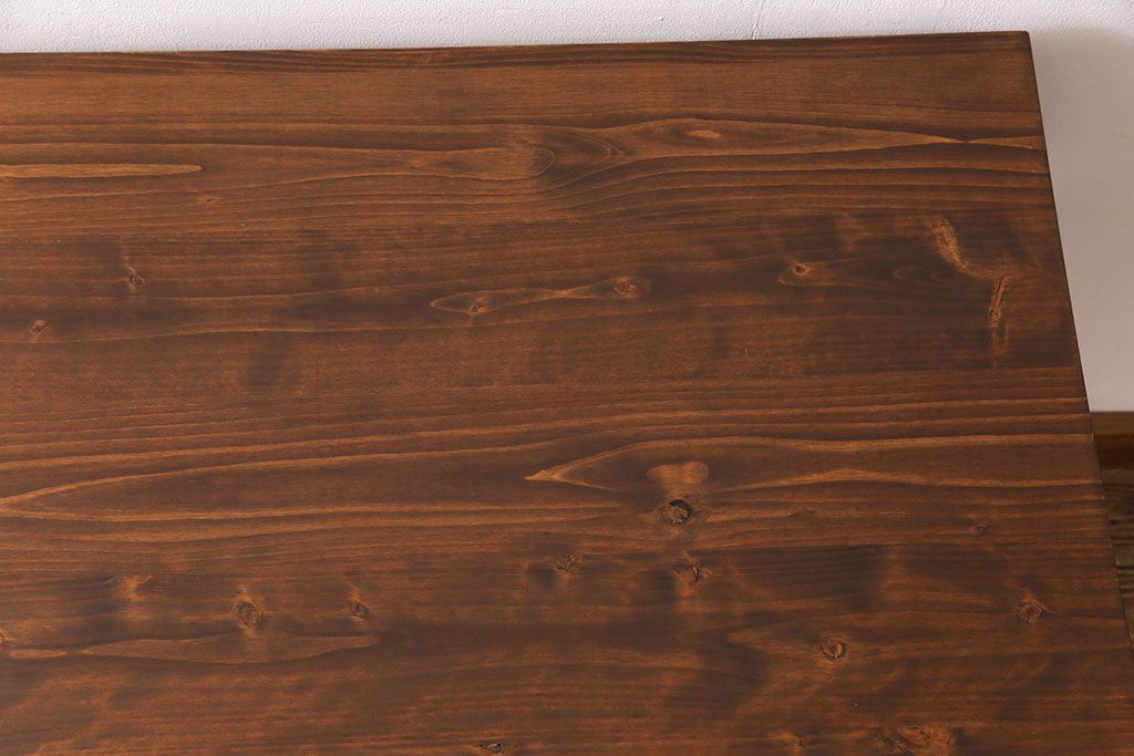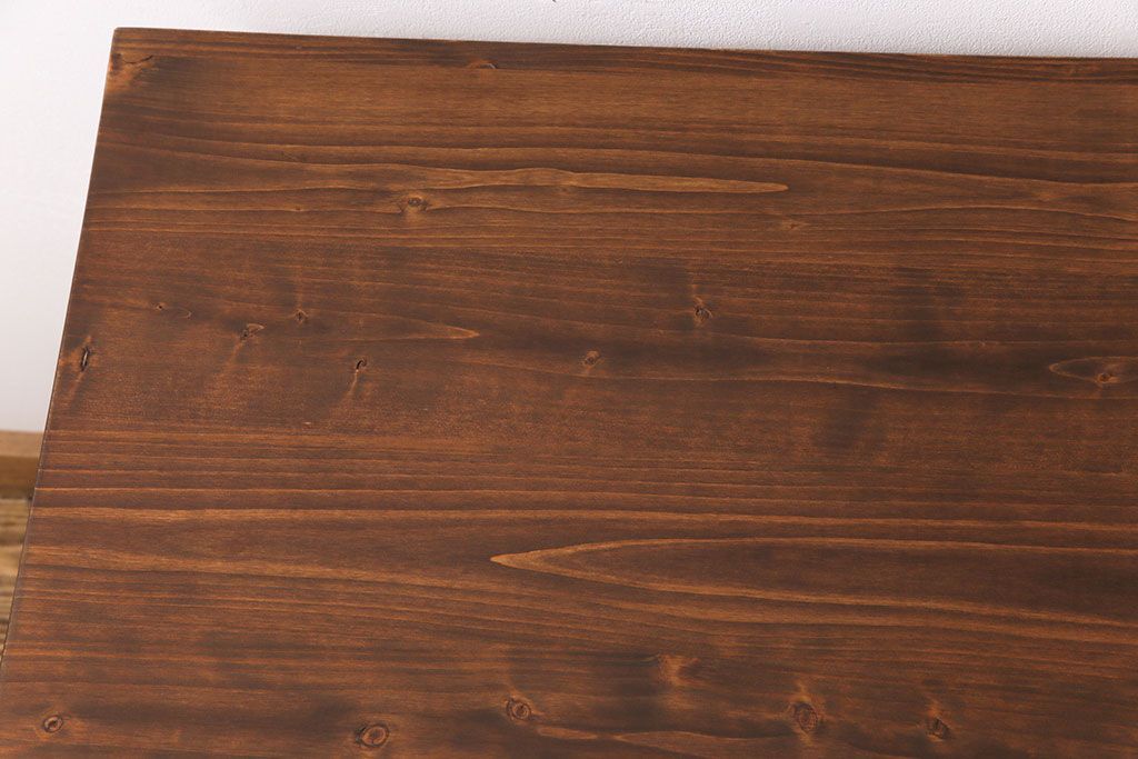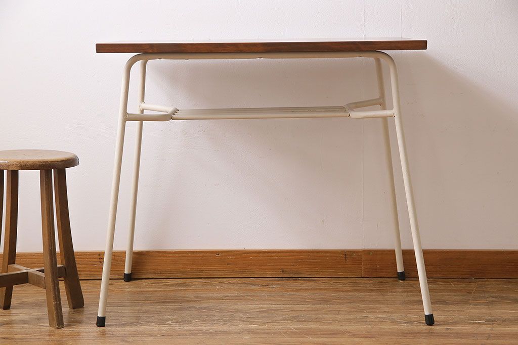 アンティーク家具 ヒノキ材製天板 ペイントがおしゃれなアイアンテーブル(作業台、カフェテーブル)(3)