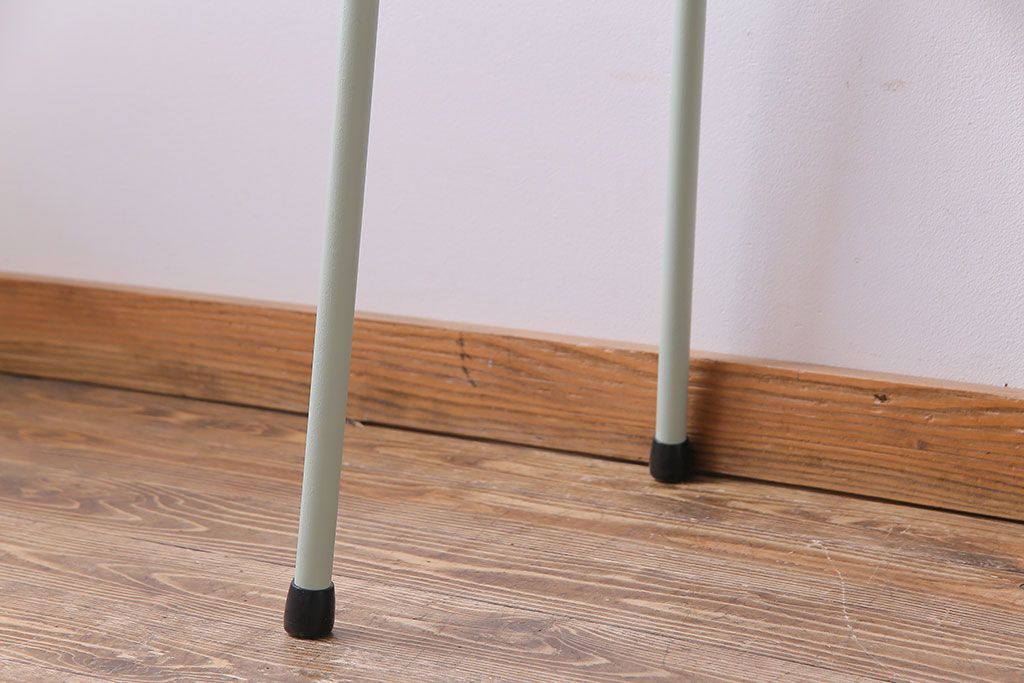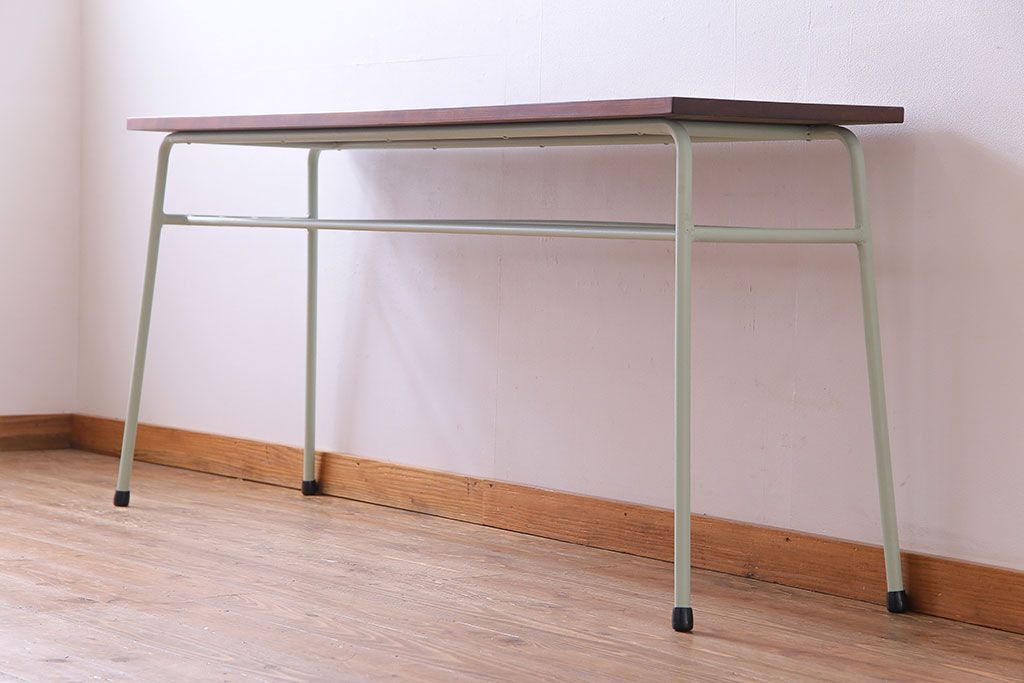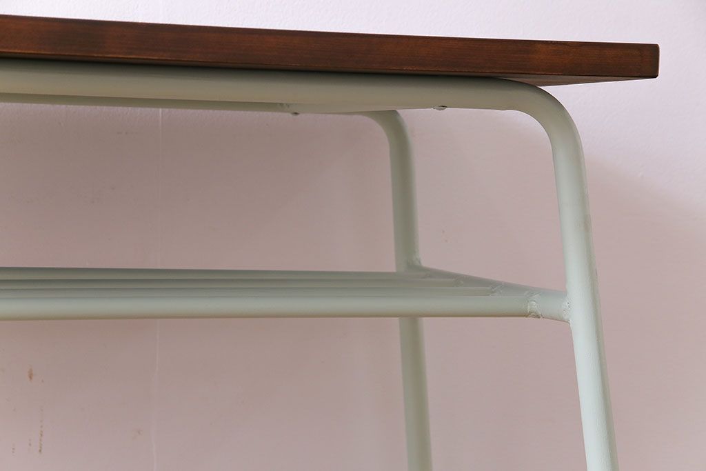 アンティーク家具 ヒノキ無垢材 淡いカラーのペイント鉄脚テーブル(作業台、カウンターテーブル)(2)