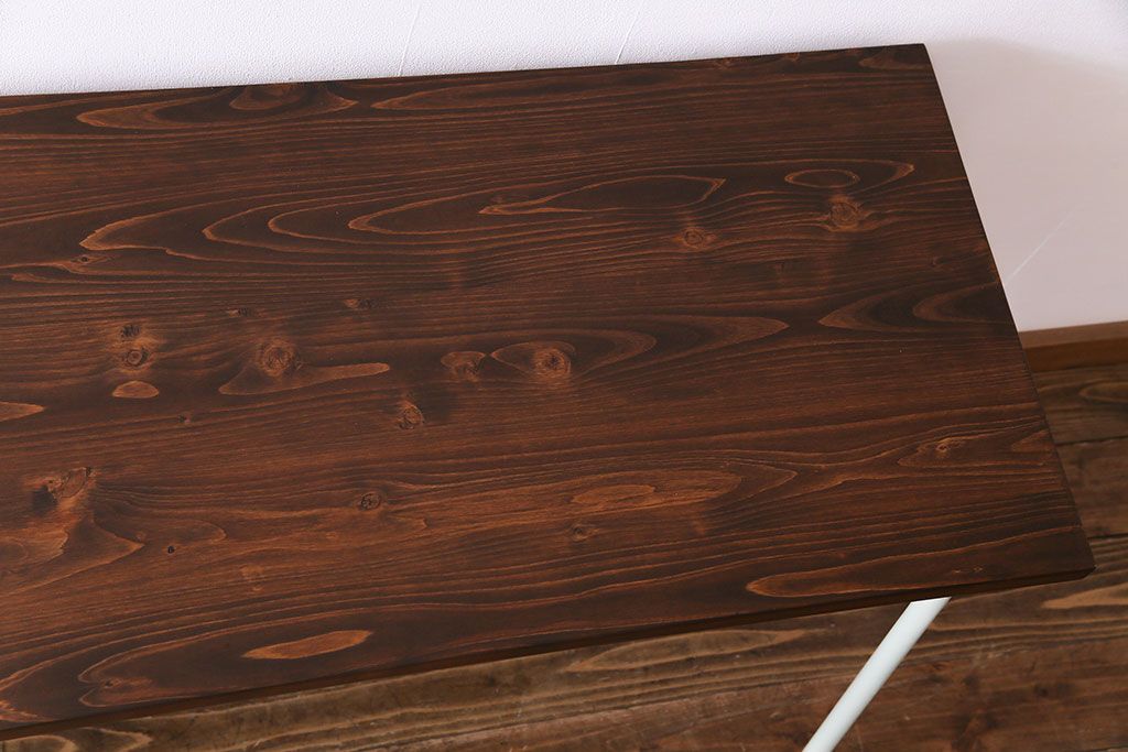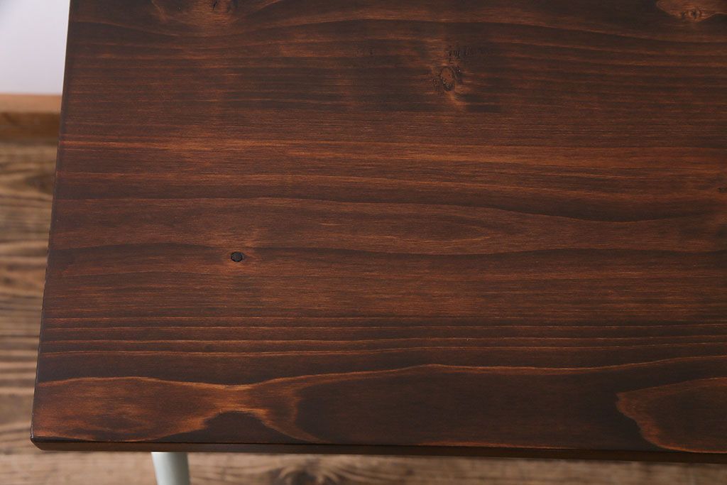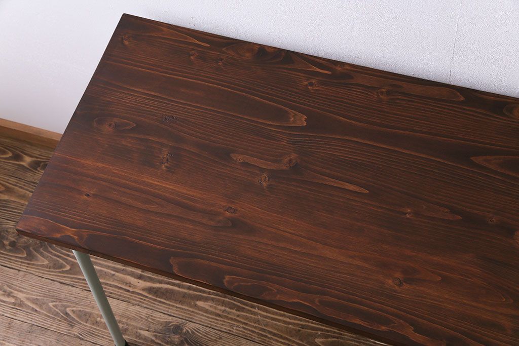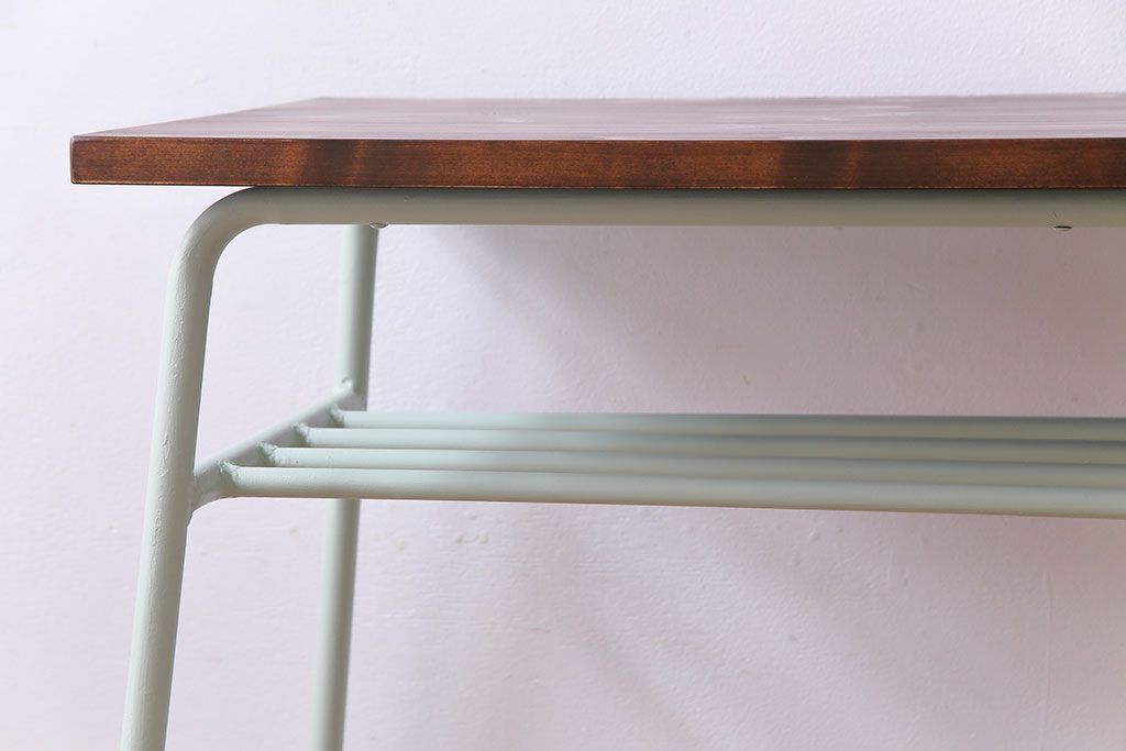 ラフジュ工房> テーブル> カウンターテーブル > アンティーク家具 ヒノキ無垢材 淡いカラーのペイント鉄脚テーブル(作業台、カウンターテーブル)(2)