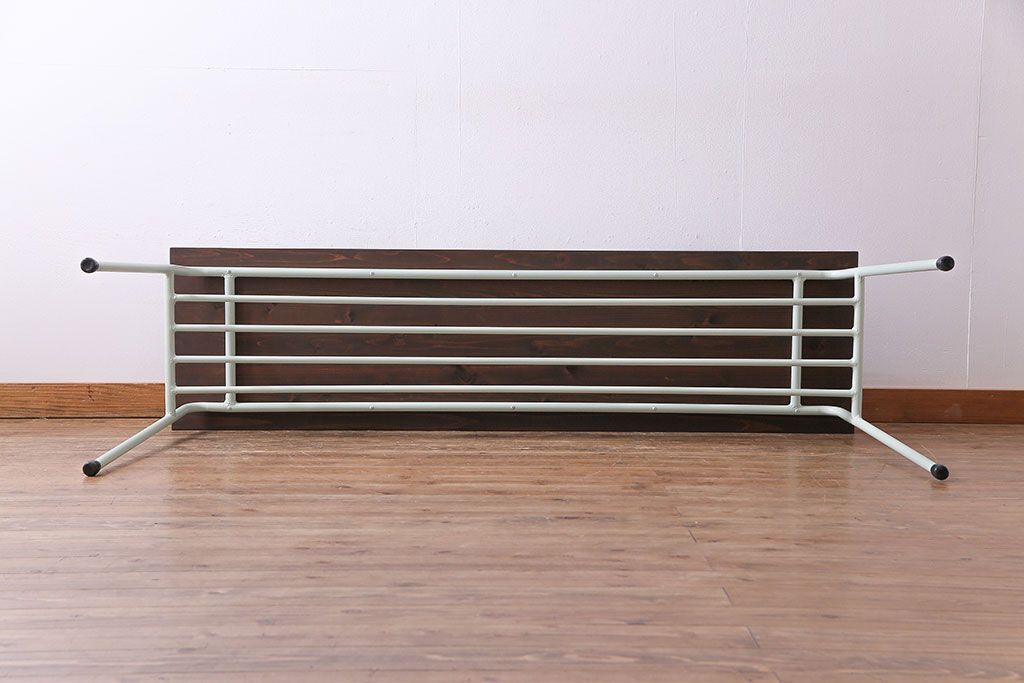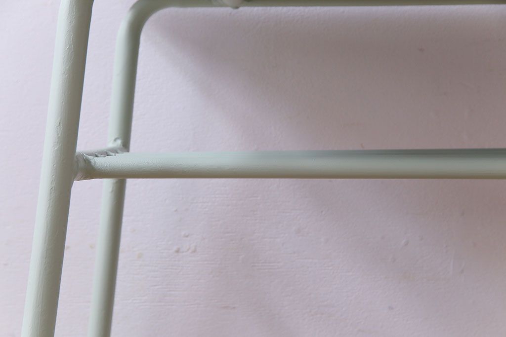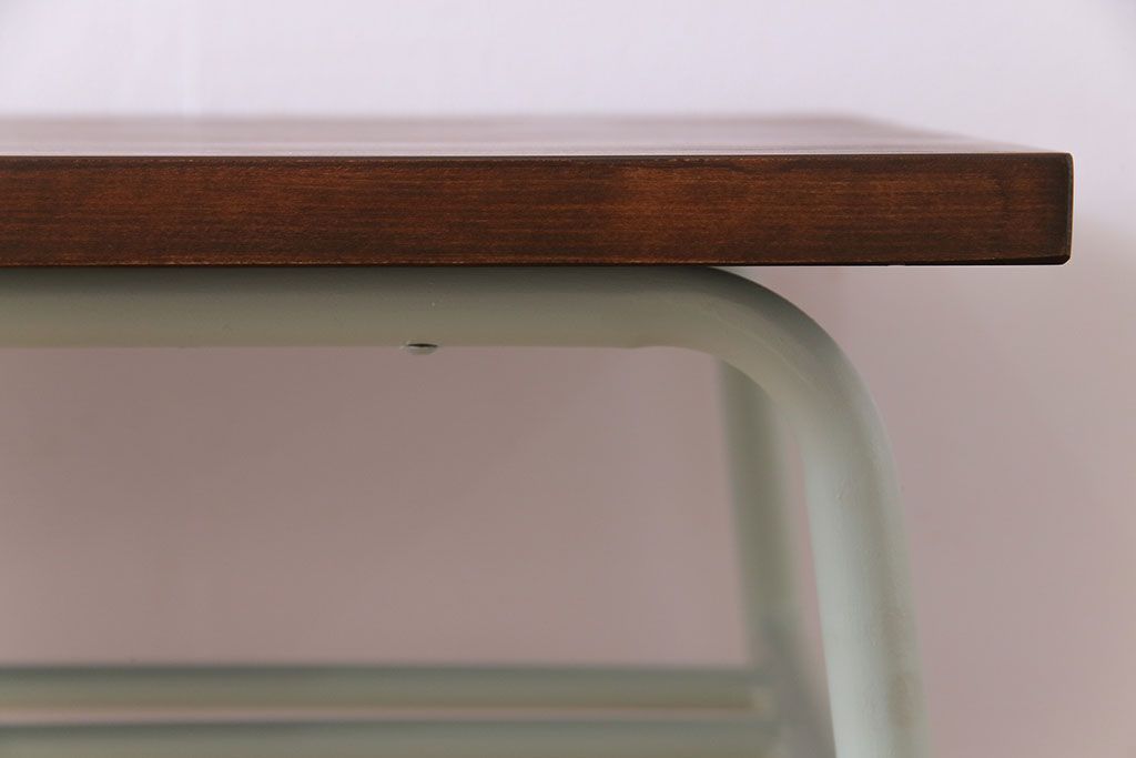 ラフジュ工房> 店舗什器 > アンティーク家具 ヒノキ無垢材 淡いカラーのペイント鉄脚テーブル(作業台、カウンターテーブル)(2)